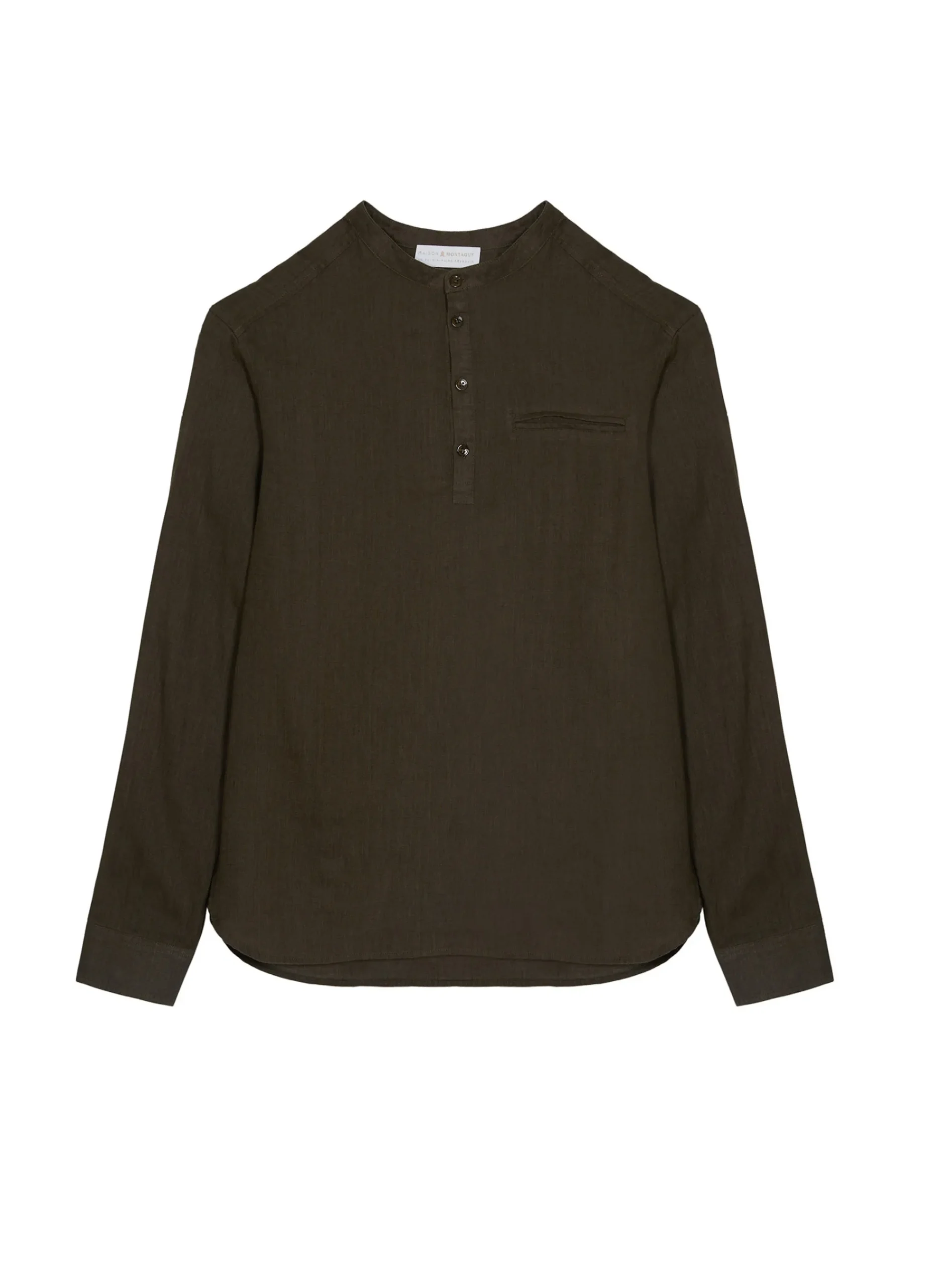 Chemisier A Encolure Tunisienne Tricote En Lin. La Texture Douce De Ce Chemisier Sera Votre Meilleur Compagnon Durant Cette Saison Chaude. L’Encolure De Notre Modele Ainsi Que Ses Bas De Manches Sont Reglables Par Des Boutons. Une Petite Poche Est Presente A L’Avant Du Modele Et Des Petites Fentes De Chaque Cote Le Modernise.