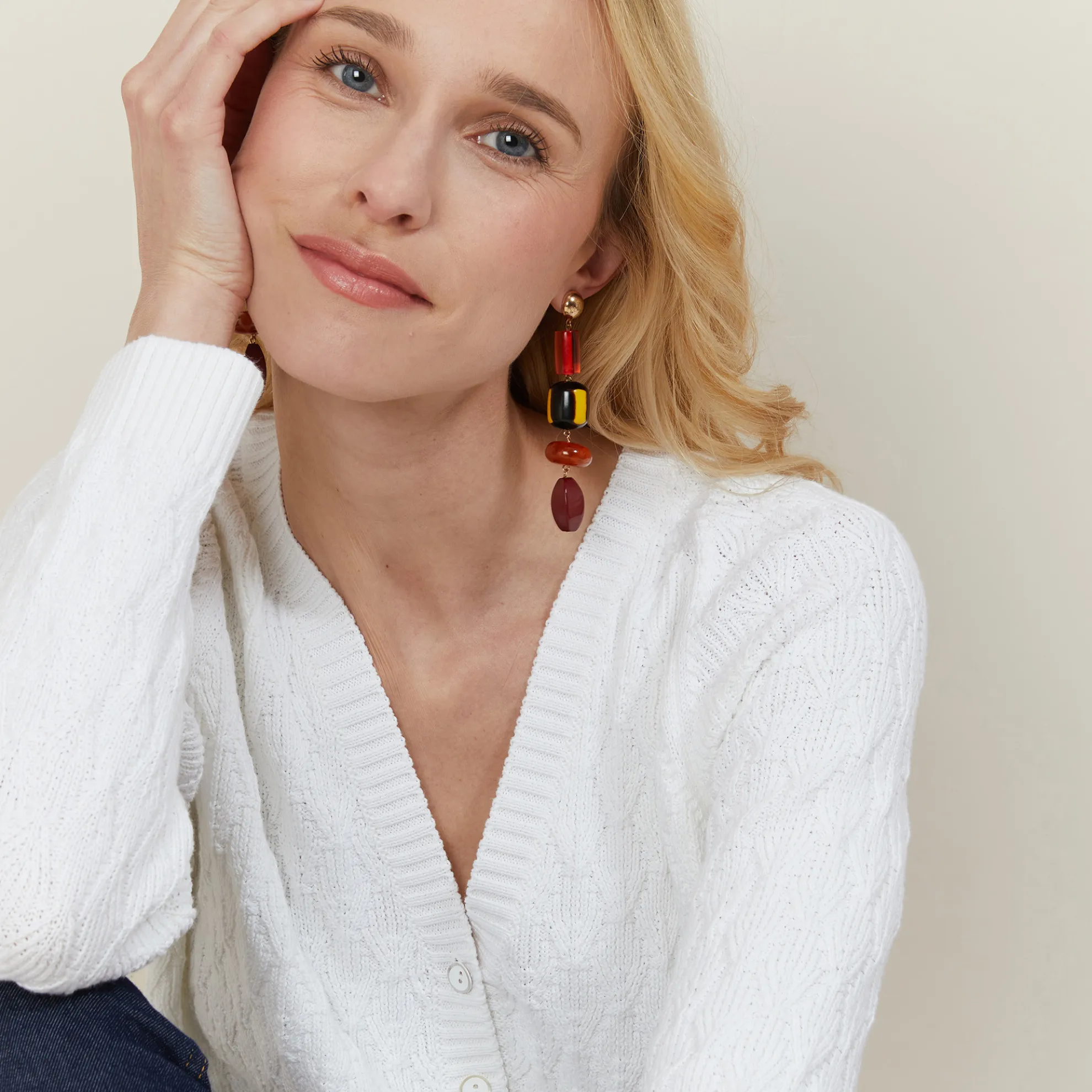 Gilet En Coton Col V. Maille Fantaisie. Point Esprit Tropical. Peut Se Porter A Meme La Peau Ou Sur Un Debardeur. Ideal Pour Les Fraiches Soirees D’Ete.