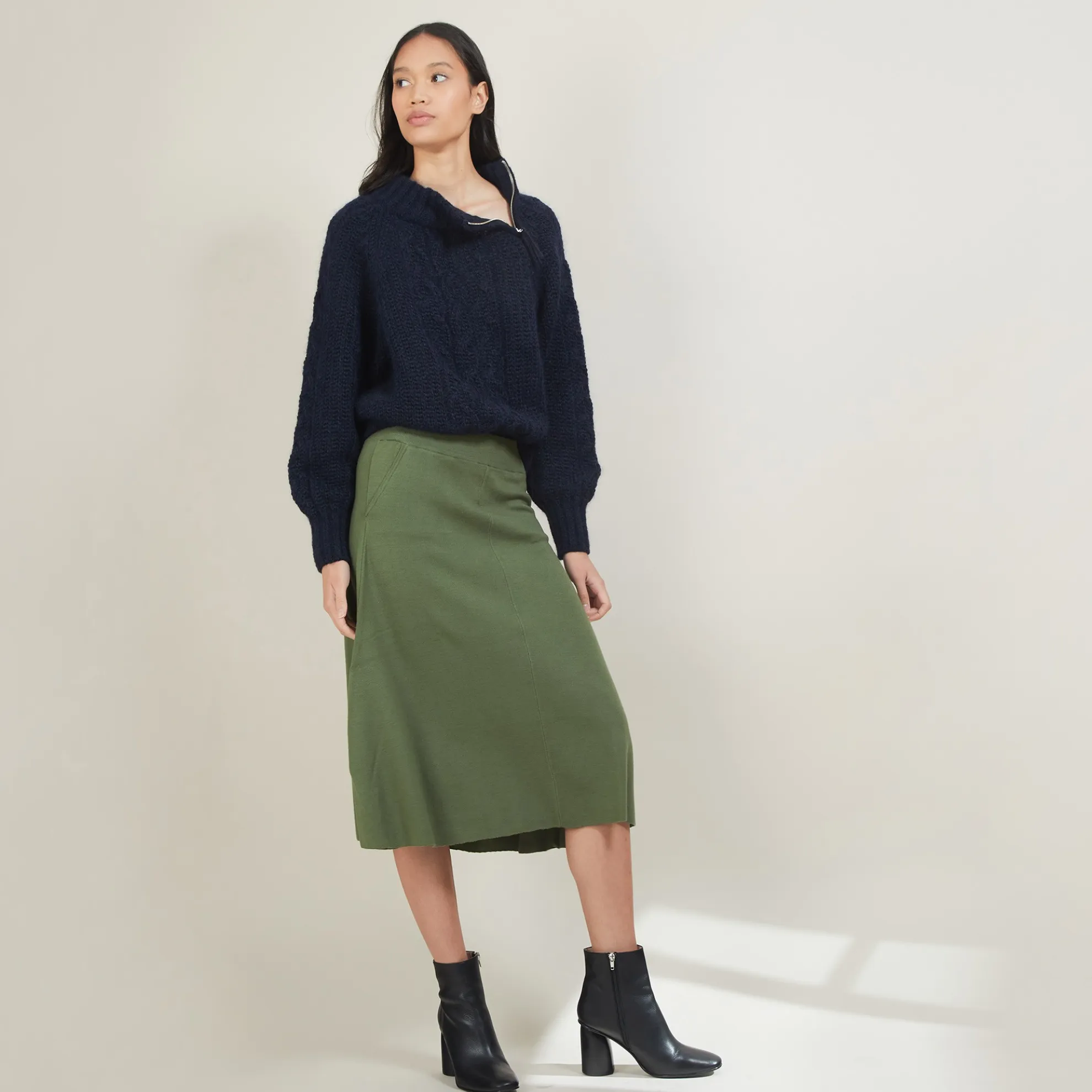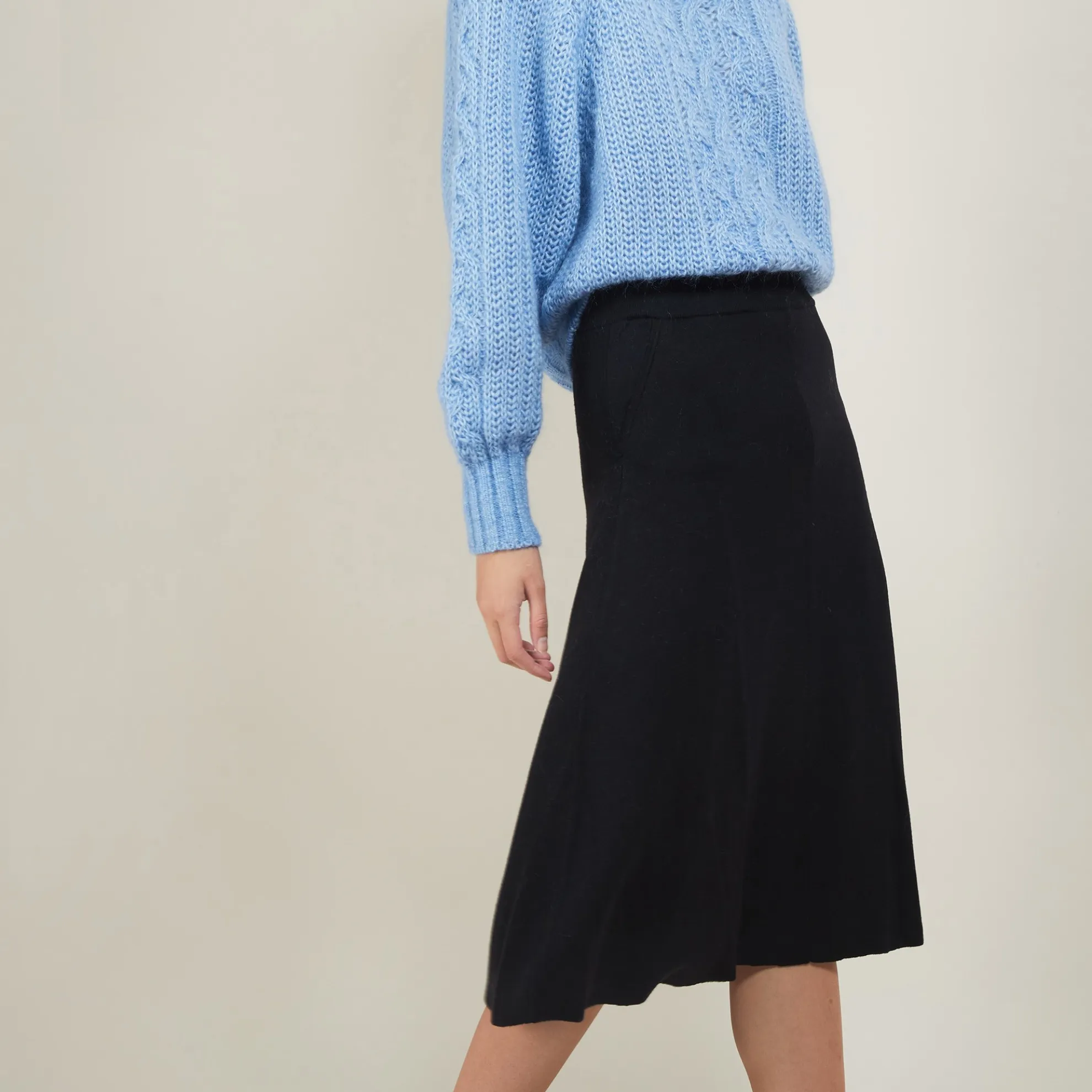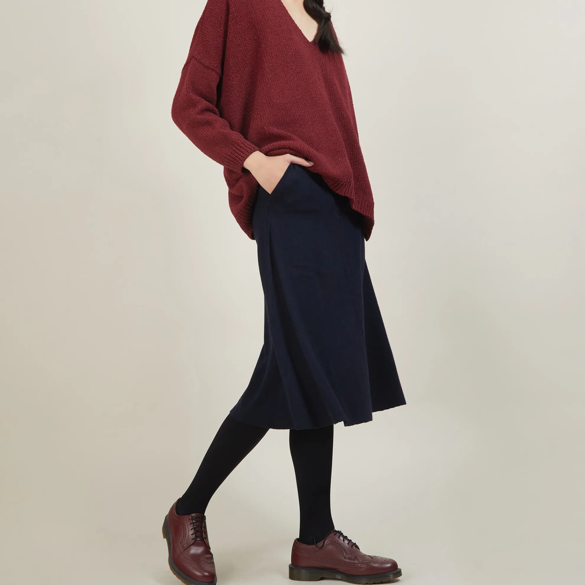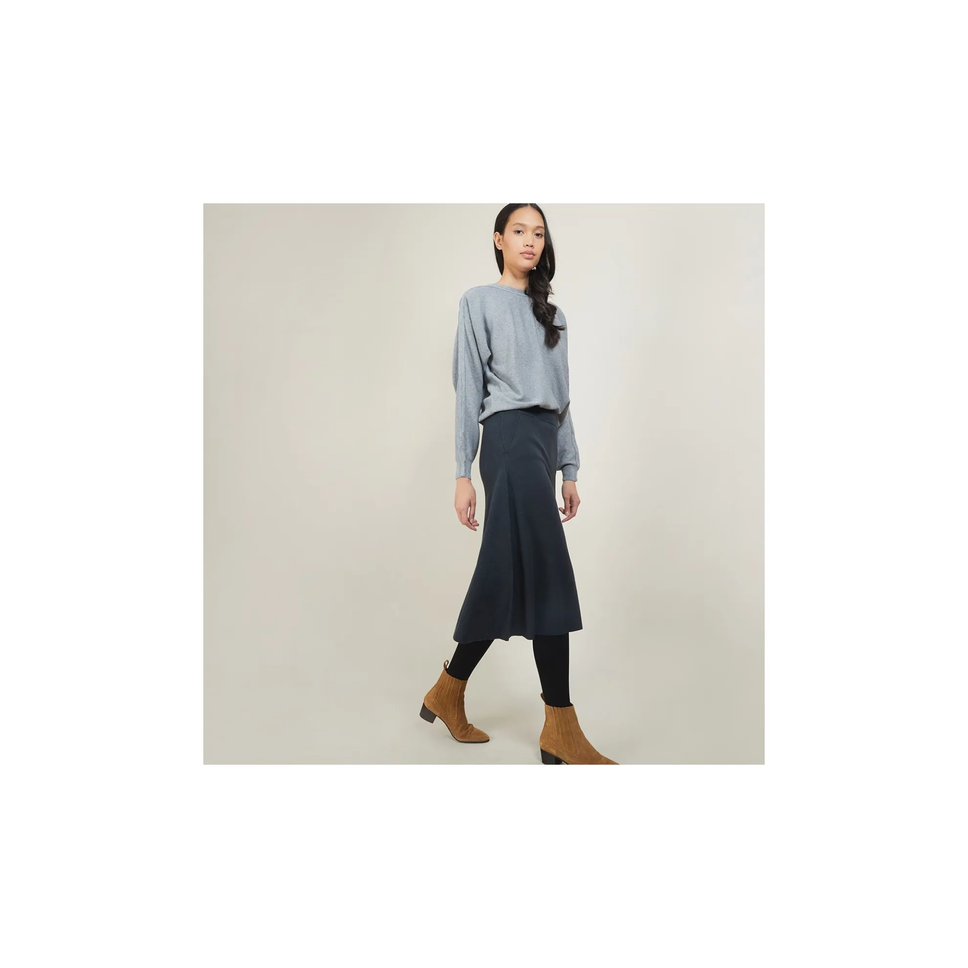 Longue Jupe Trapeze. En 100% Laine, Vous Vous Sentirez A L’Aise Et Au Chaud Dans Cette Jolie Jupe Trapeze Avec Une Longueur A Mi-Mollet. 2 Poches Et Une Ceinture Elastique A La Taille Pour Un Look Tendance Et Pratique.