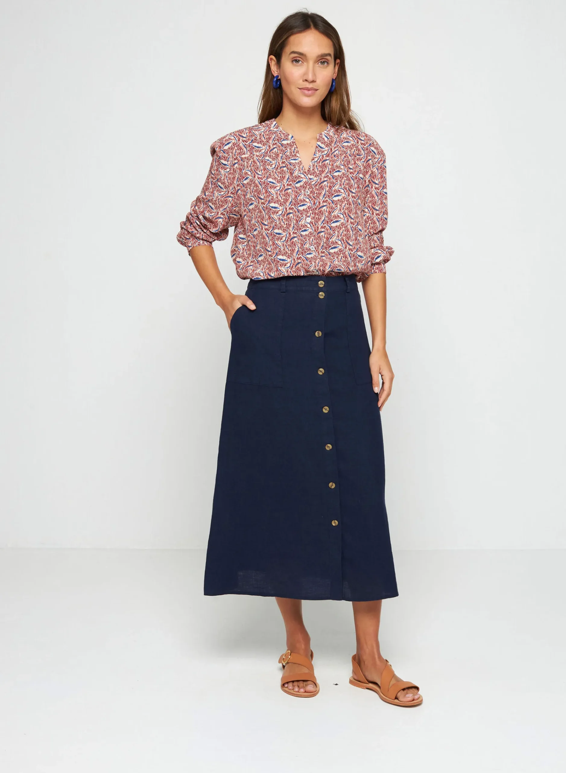 Maison Montagut Jupe Longue A Boutons En Lin – Tourya>Femme Jupes