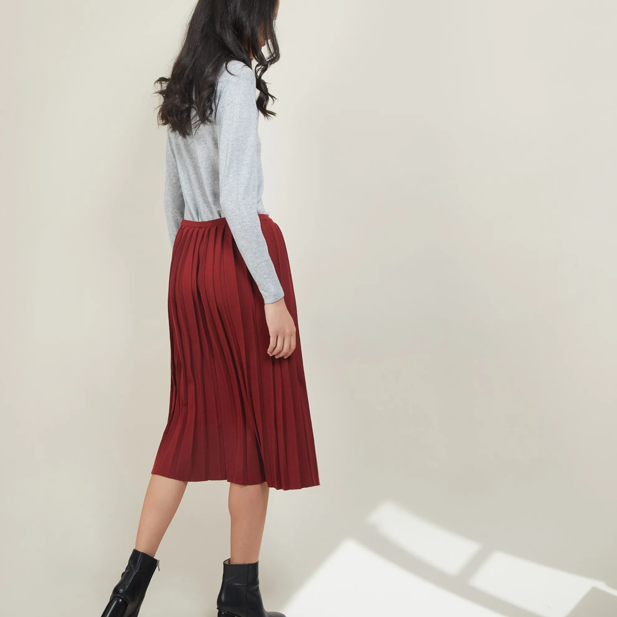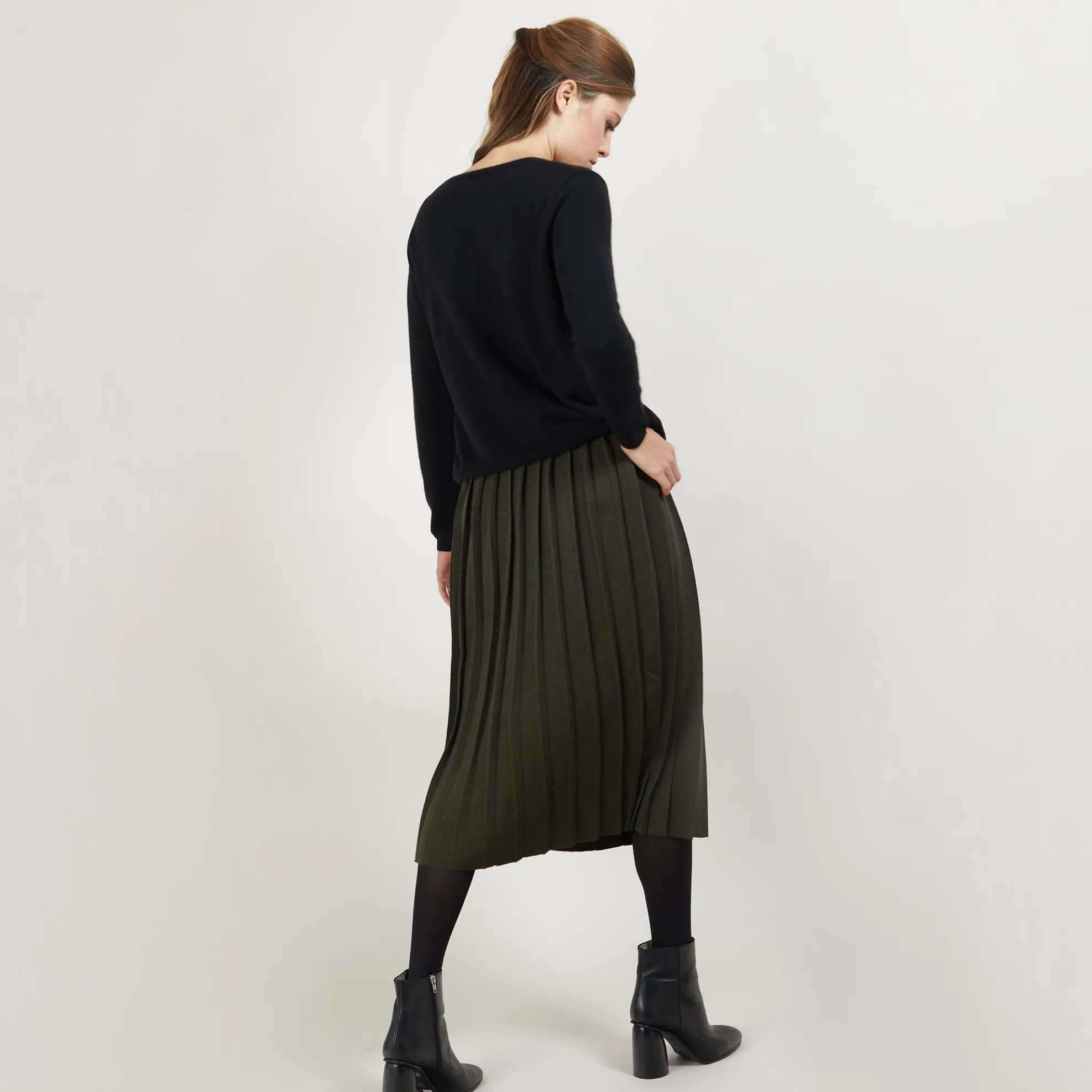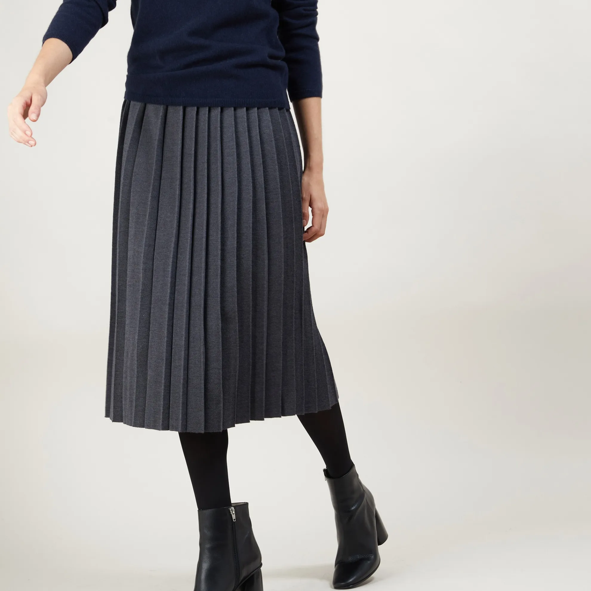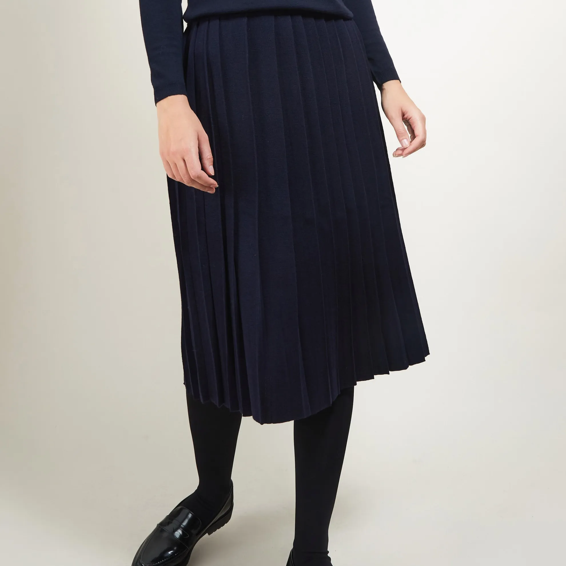 Jupe Plissee Soleil En Laine Merinos. Une Jolie Jupe Mi-Longue A Associer Avec Notre Cardigan En Cachemireballetto. Un Indispensable Pour Un Style Moderne Et Confortable.