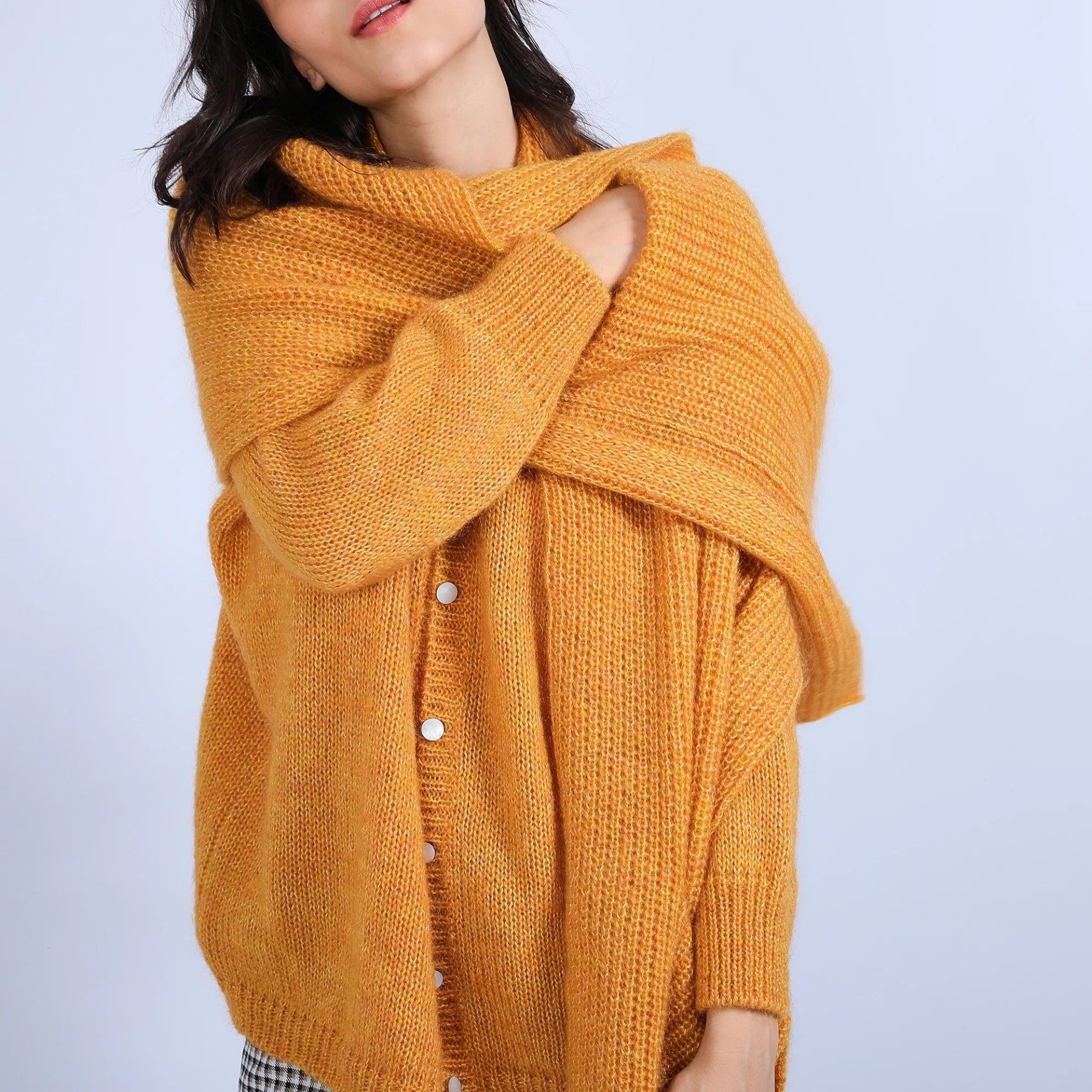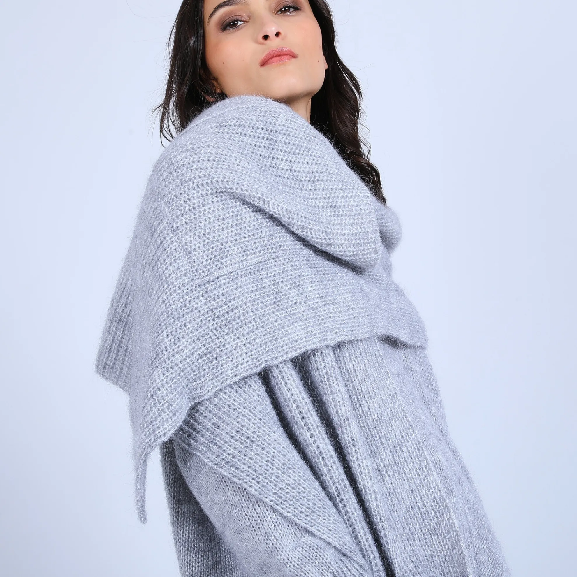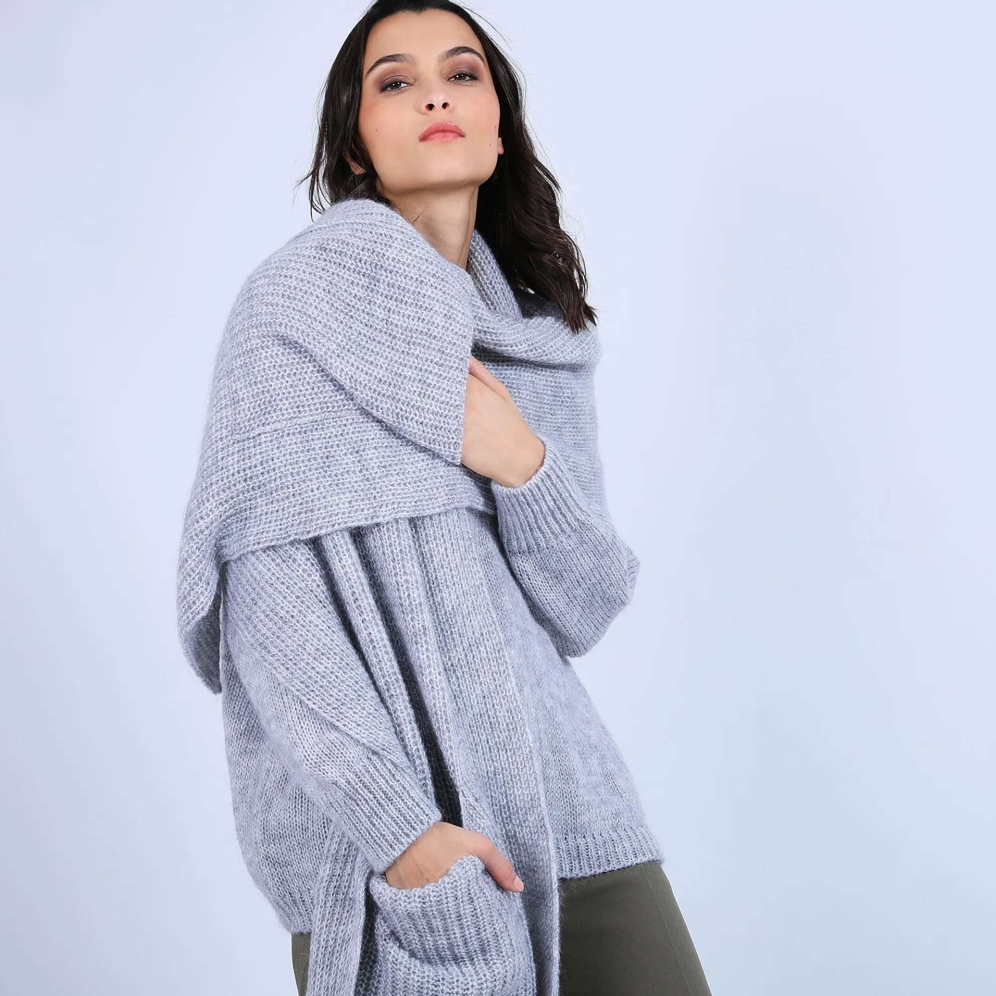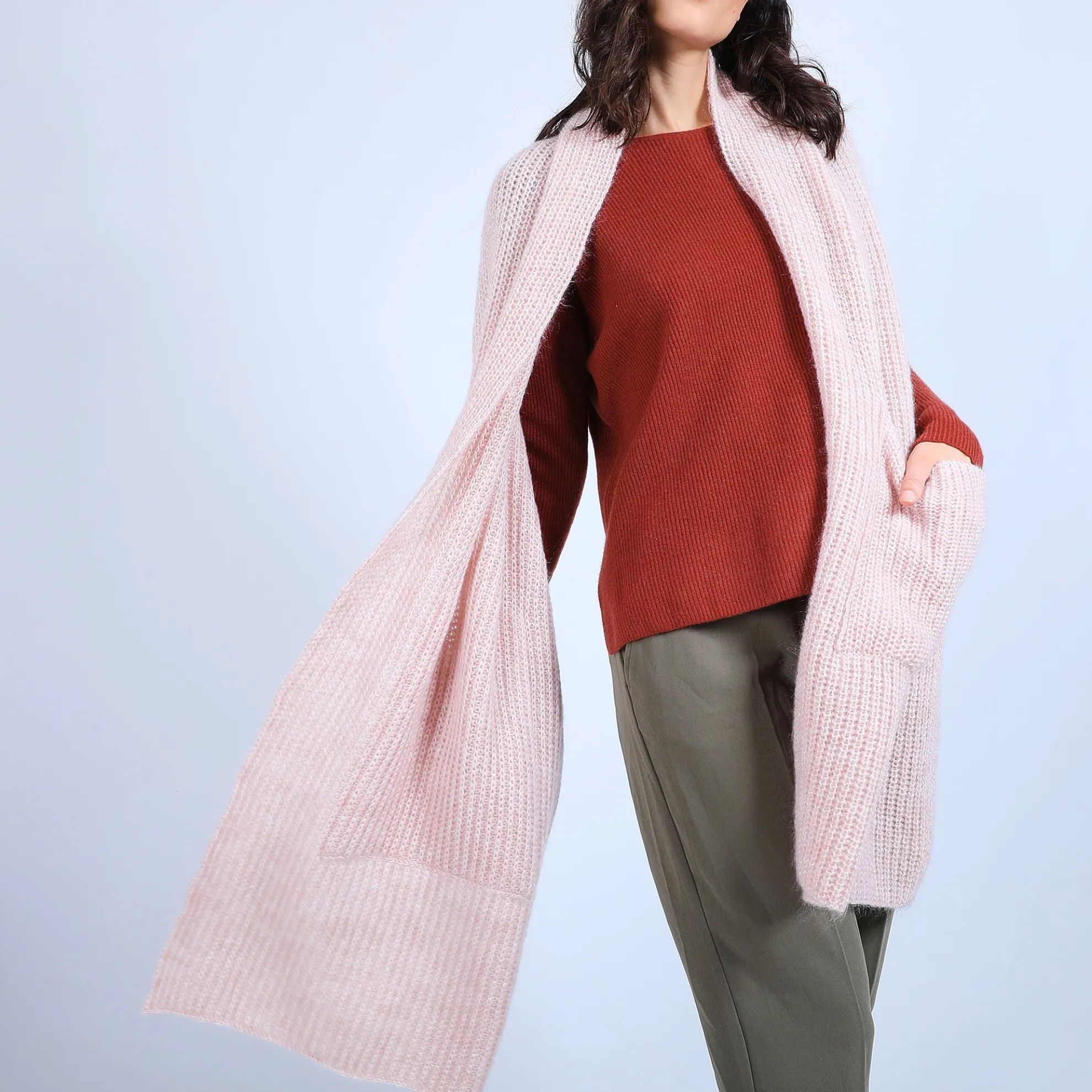 Grande Echarpe En Mohair Avec Grandes Poches En Bas. Tricote Dans Nos Ateliers. Maille Cotelee. Dimension 200 Cm De Longueur Et 45 Cm De Largeur.