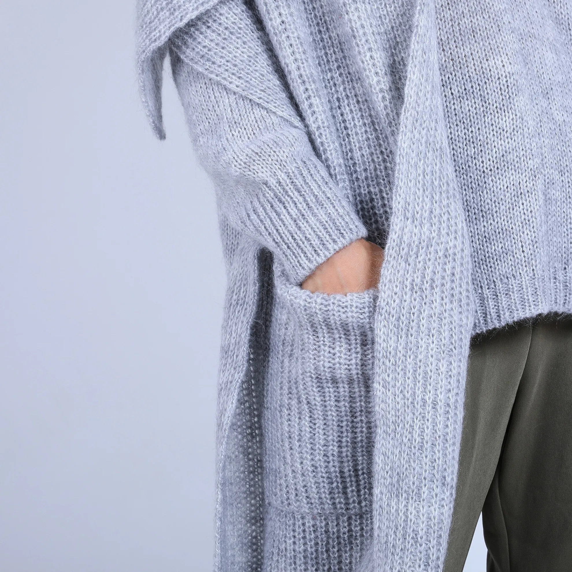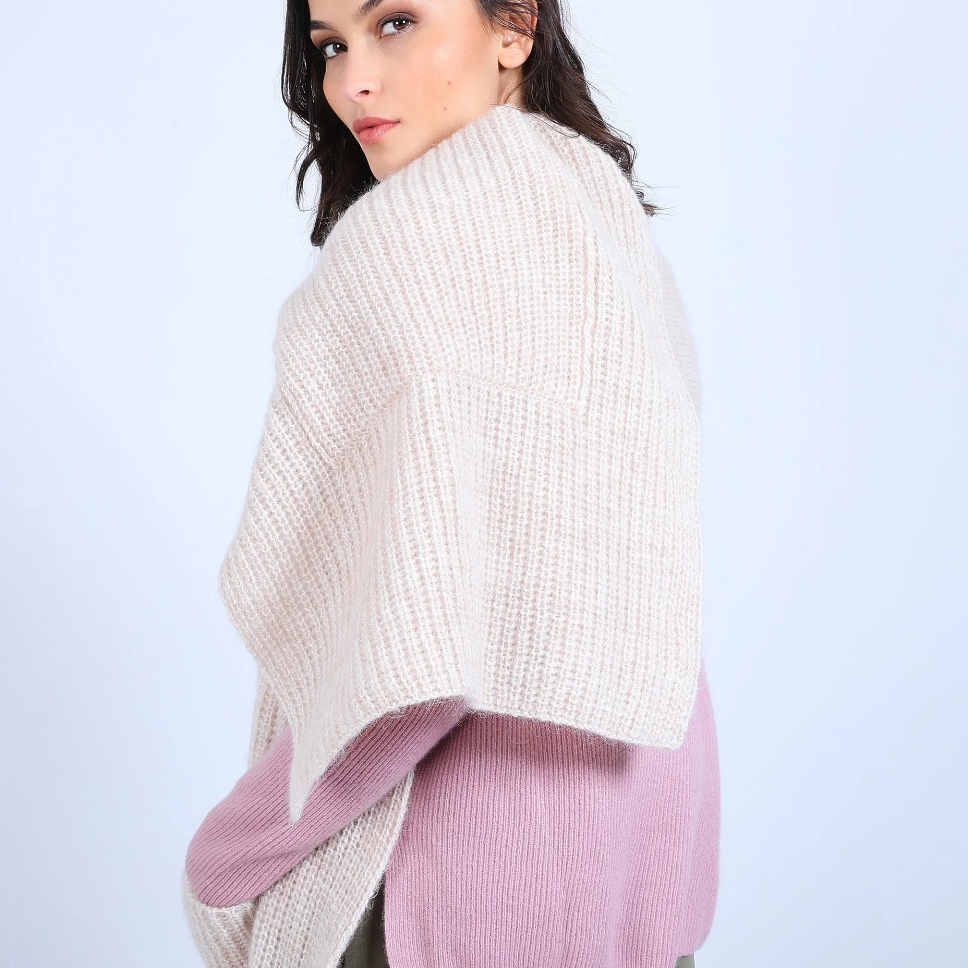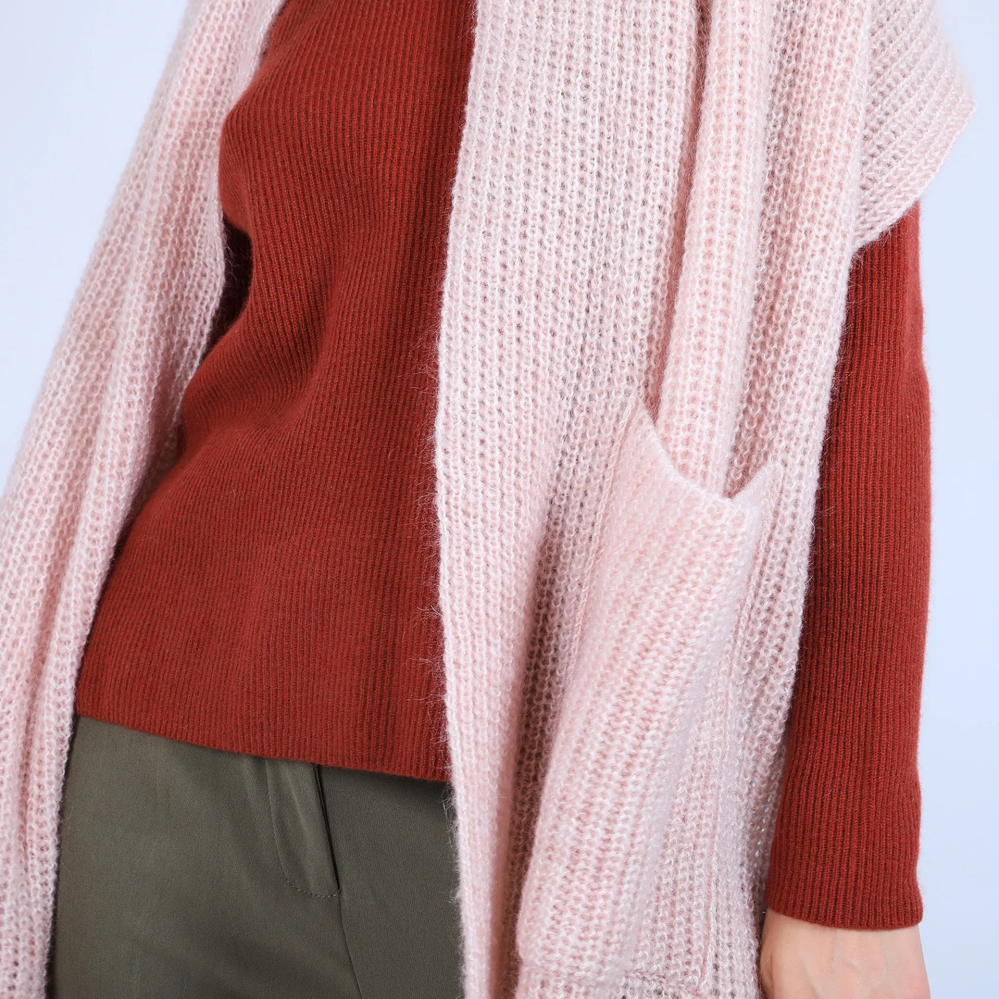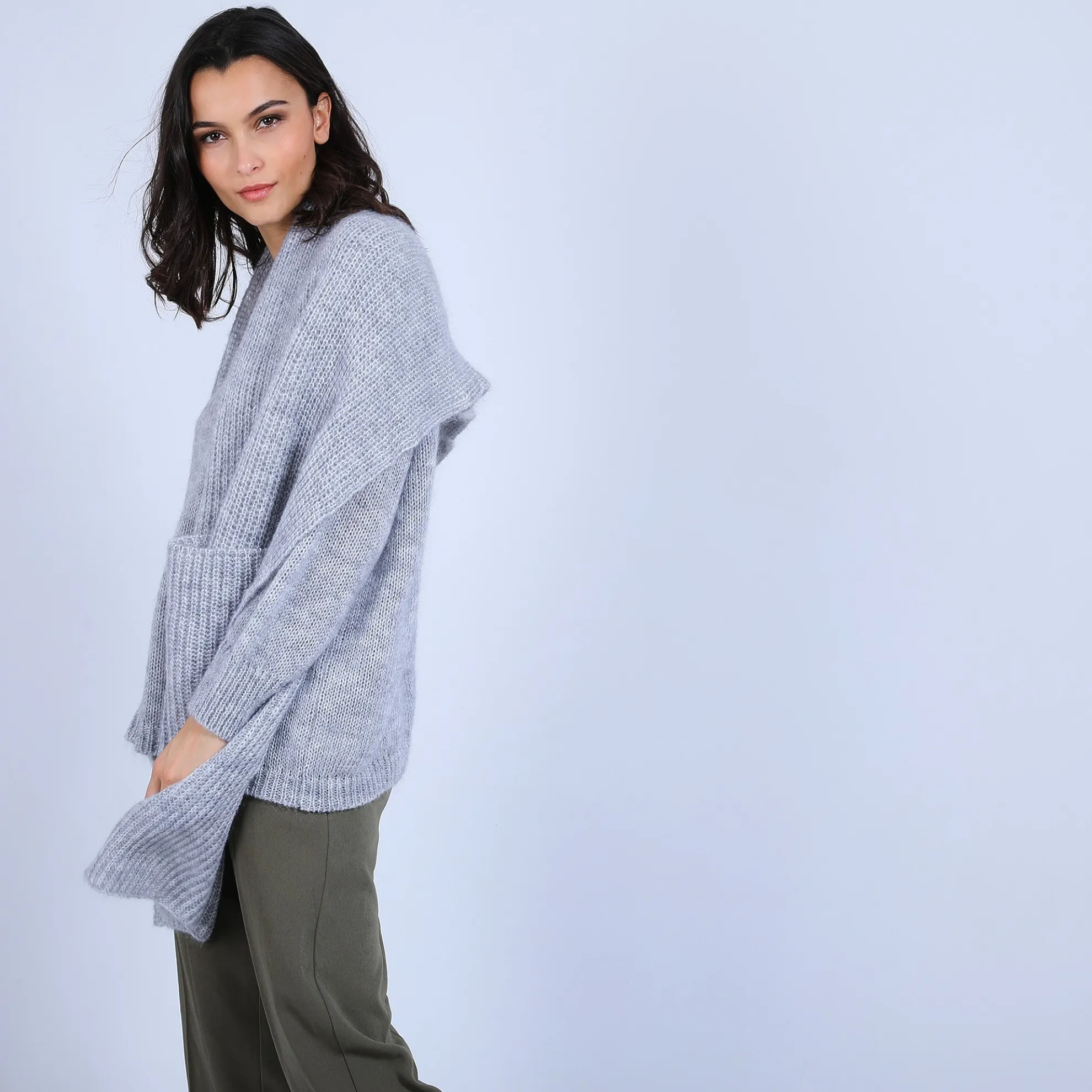 Grande Echarpe En Mohair Avec Grandes Poches En Bas. Tricote Dans Nos Ateliers. Maille Cotelee. Dimension 200 Cm De Longueur Et 45 Cm De Largeur.