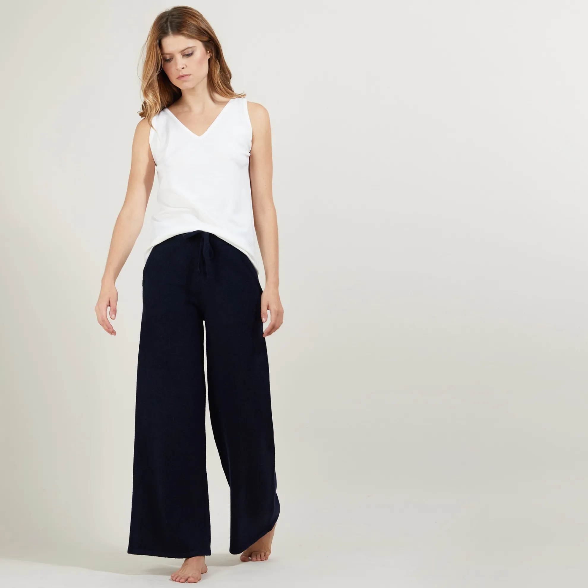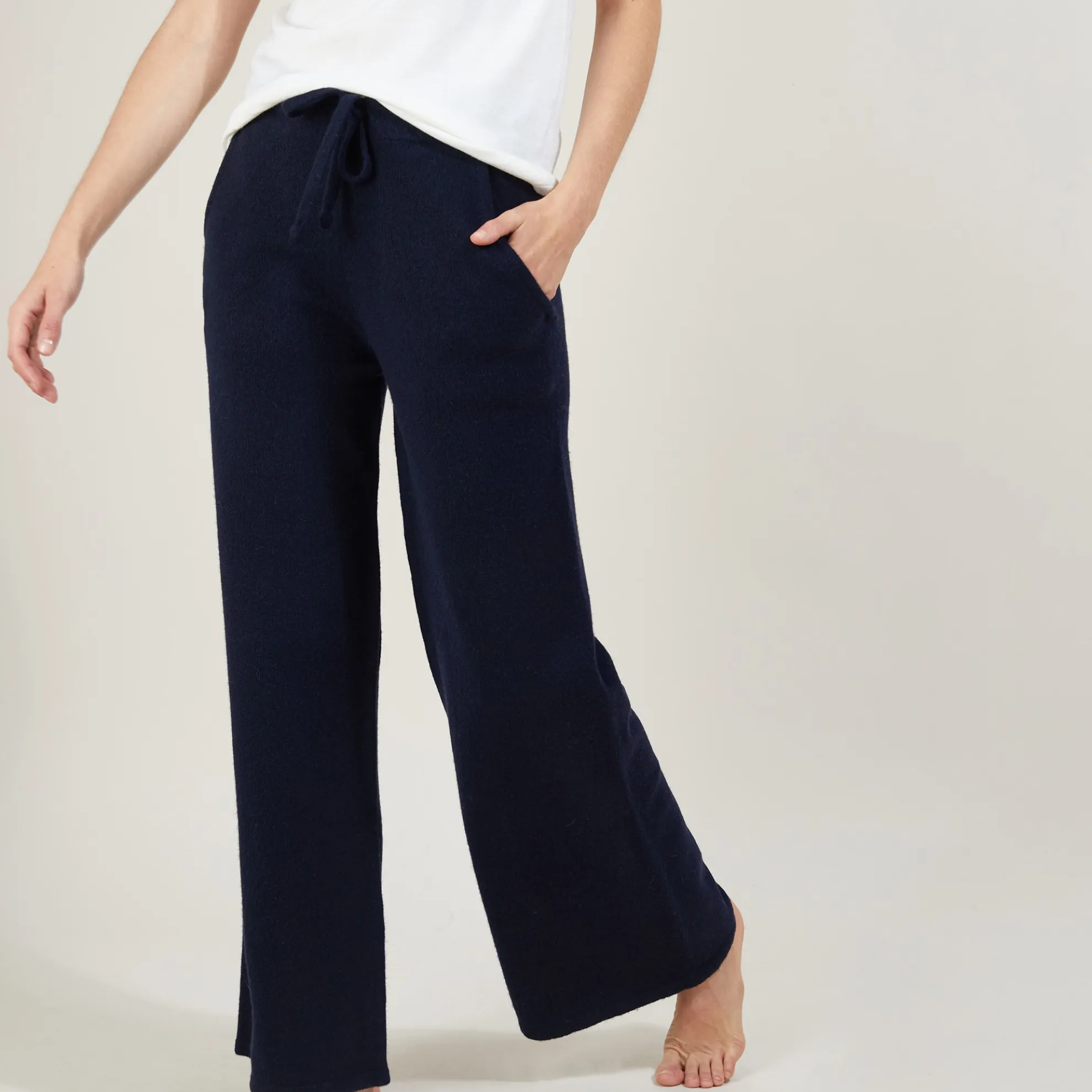 Pantalon Droit Tricote En Cachemire Et Laine Melange. Un Must-Have De Cet Hiver Pour Vous Accompagner Lors De Vos Journees Detentes. Pour Un Total Look Cocooning, Associez Ce Pantalon Avec Notre Sweat Gala.