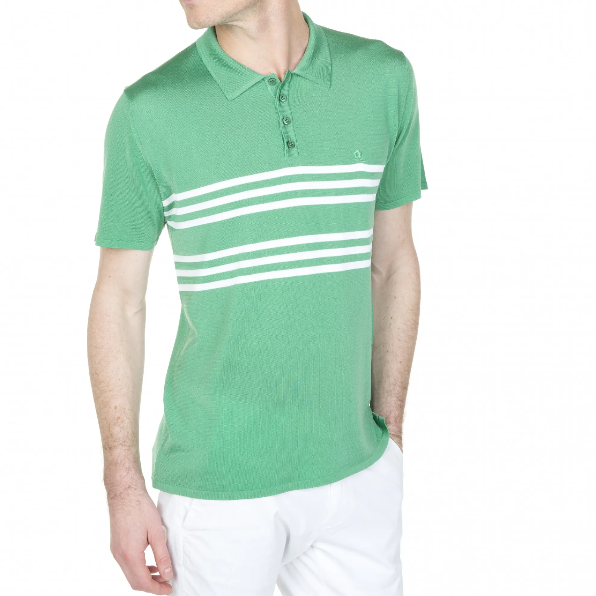 Polo Homme En Fil Lumiere Avec 2 Bandes De Rayures Horizontales. Simple Et Moderne Pour Un Style Casual.