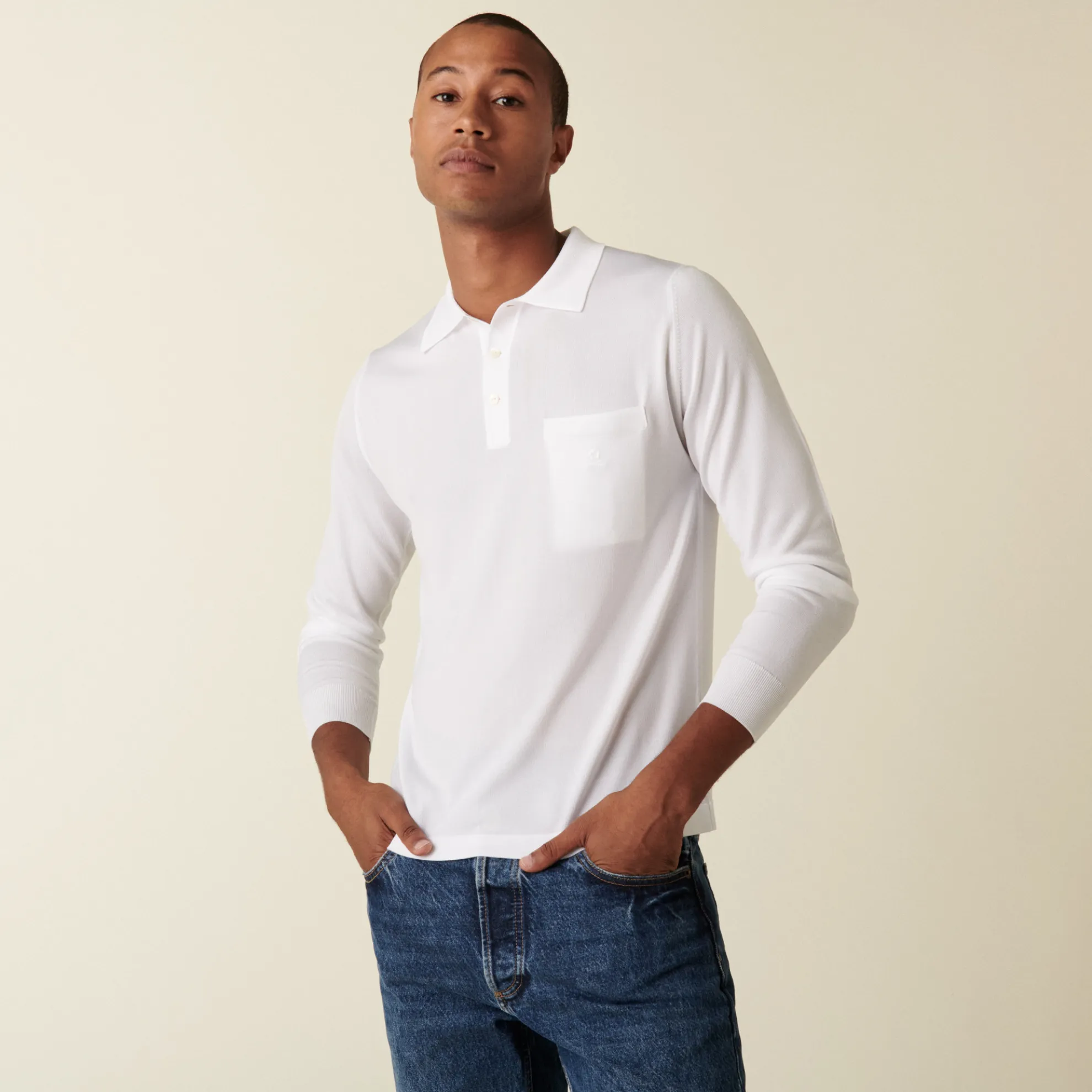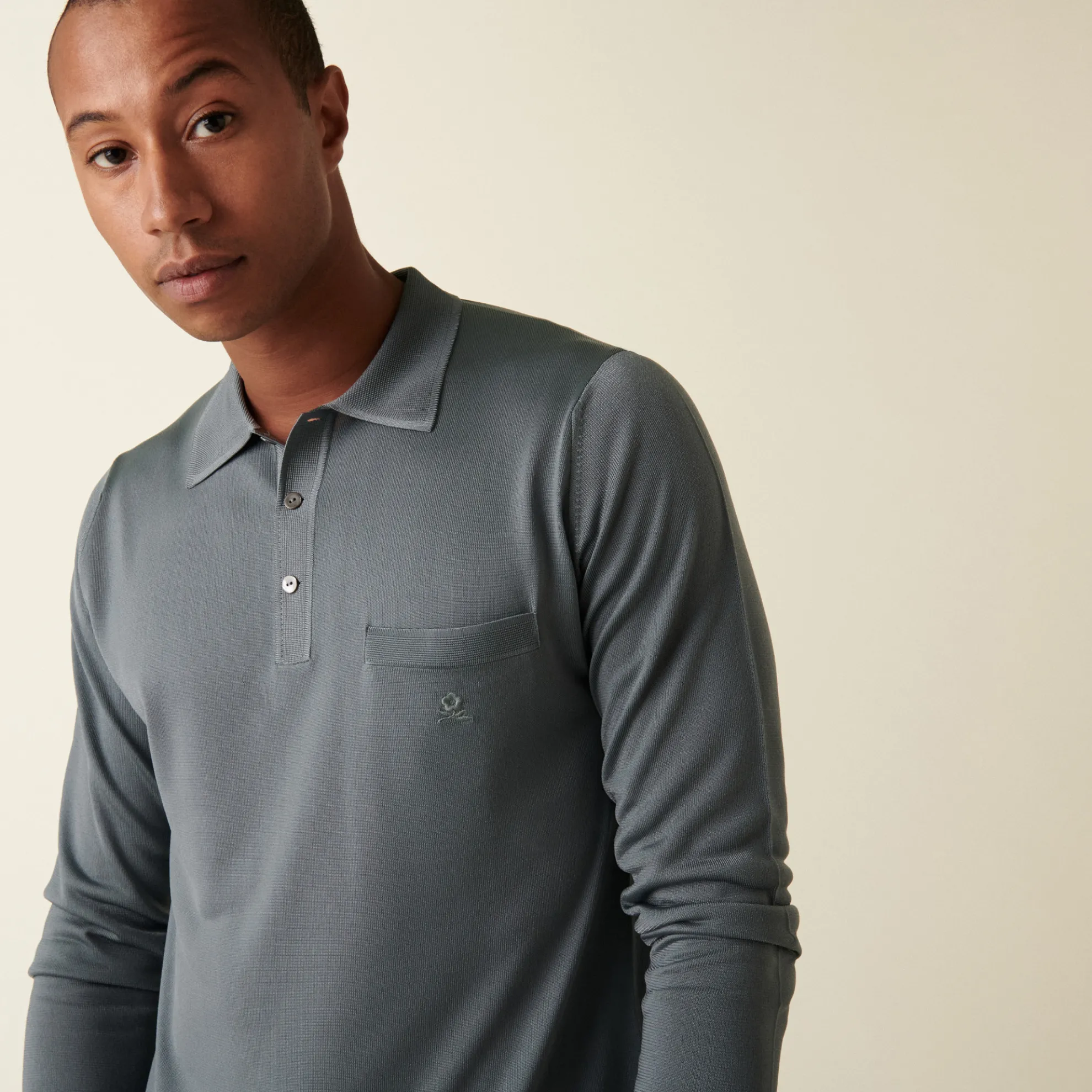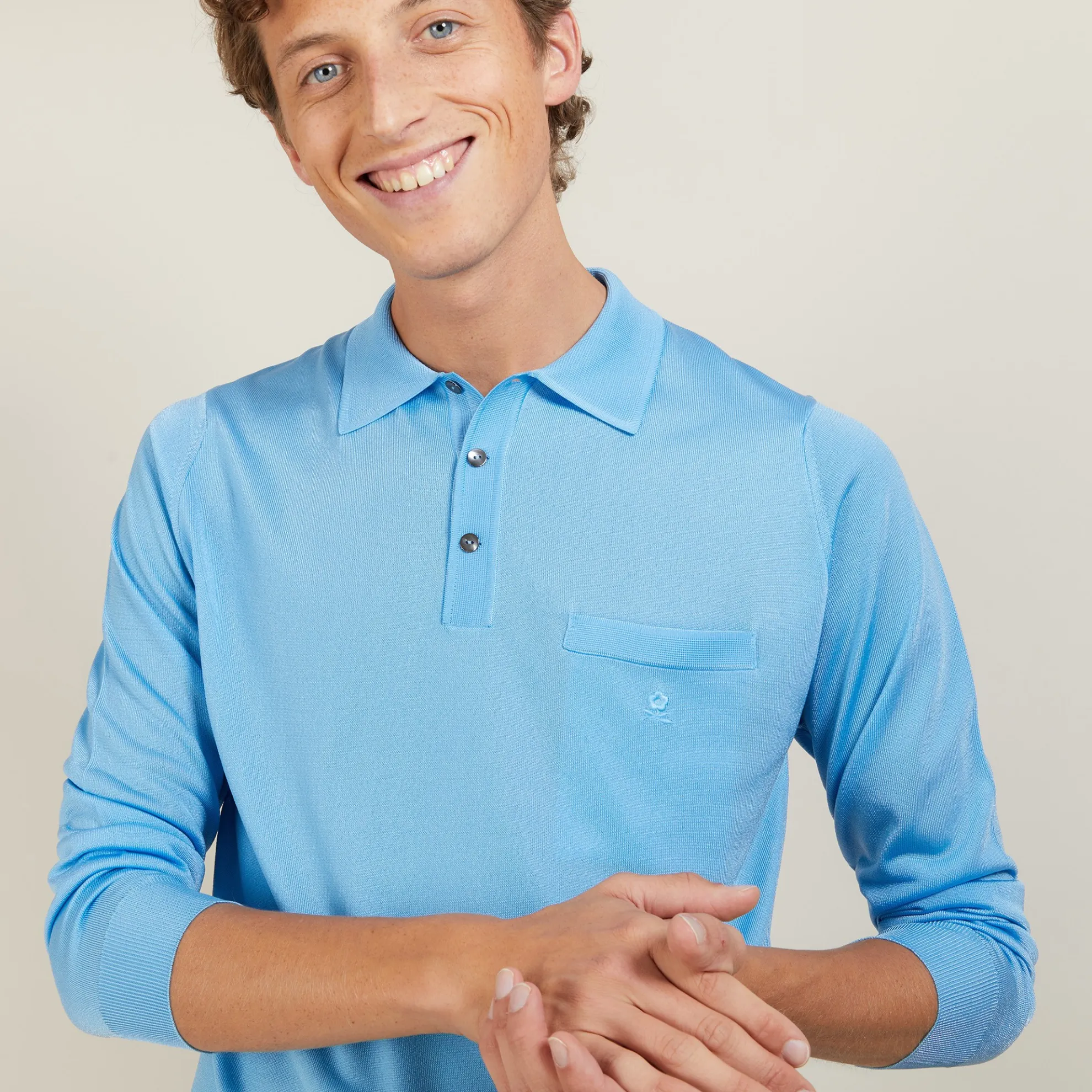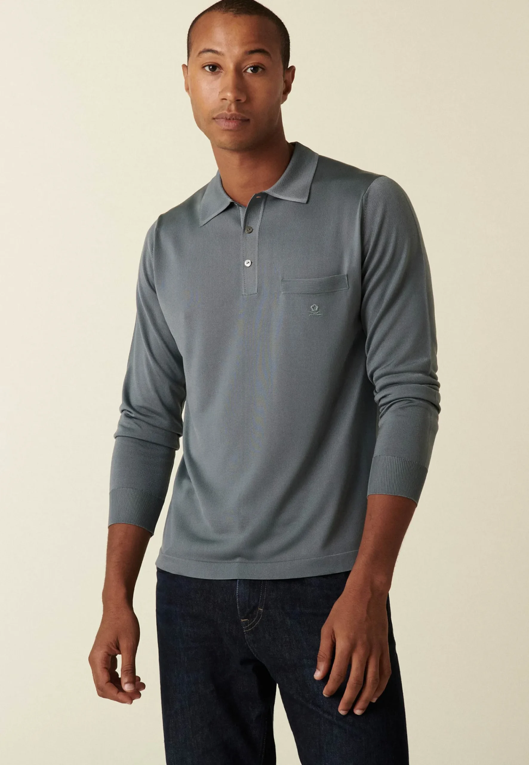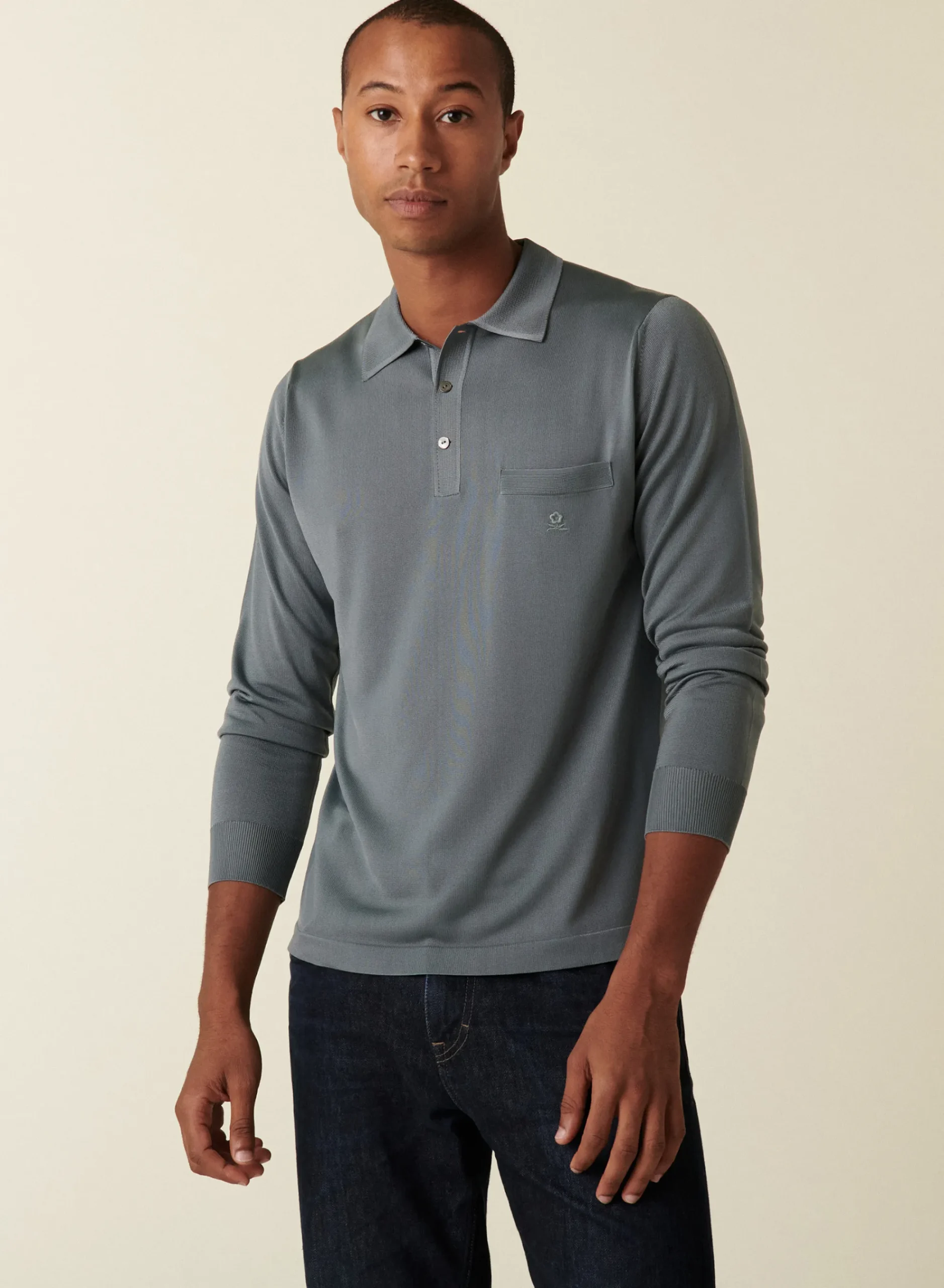 Polo Manches Longues Homme En Fil Lumiere Avec La Fleur Montagut Brodee. Ce Joli Polo Allie Chic Et Sobriete. Decline Dans Des Coloris Elegants, Ce Polo Saura S’Accorder A Toutes Vos Envies.