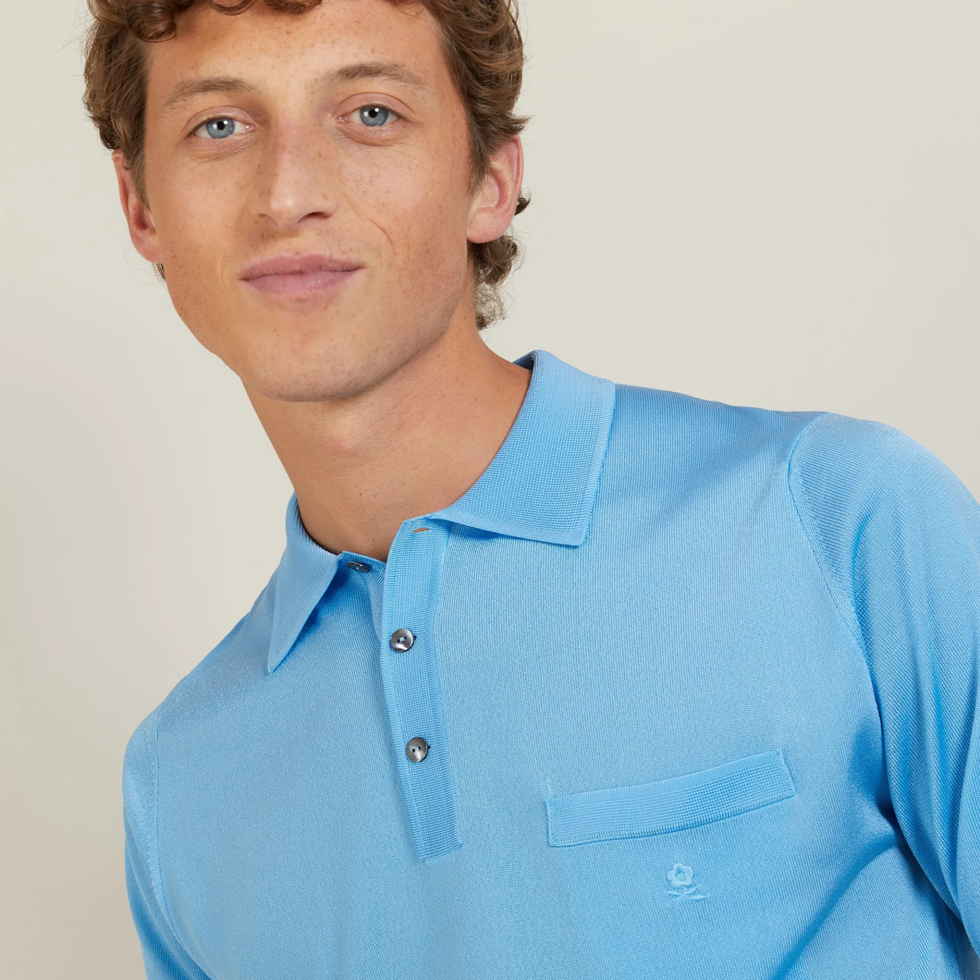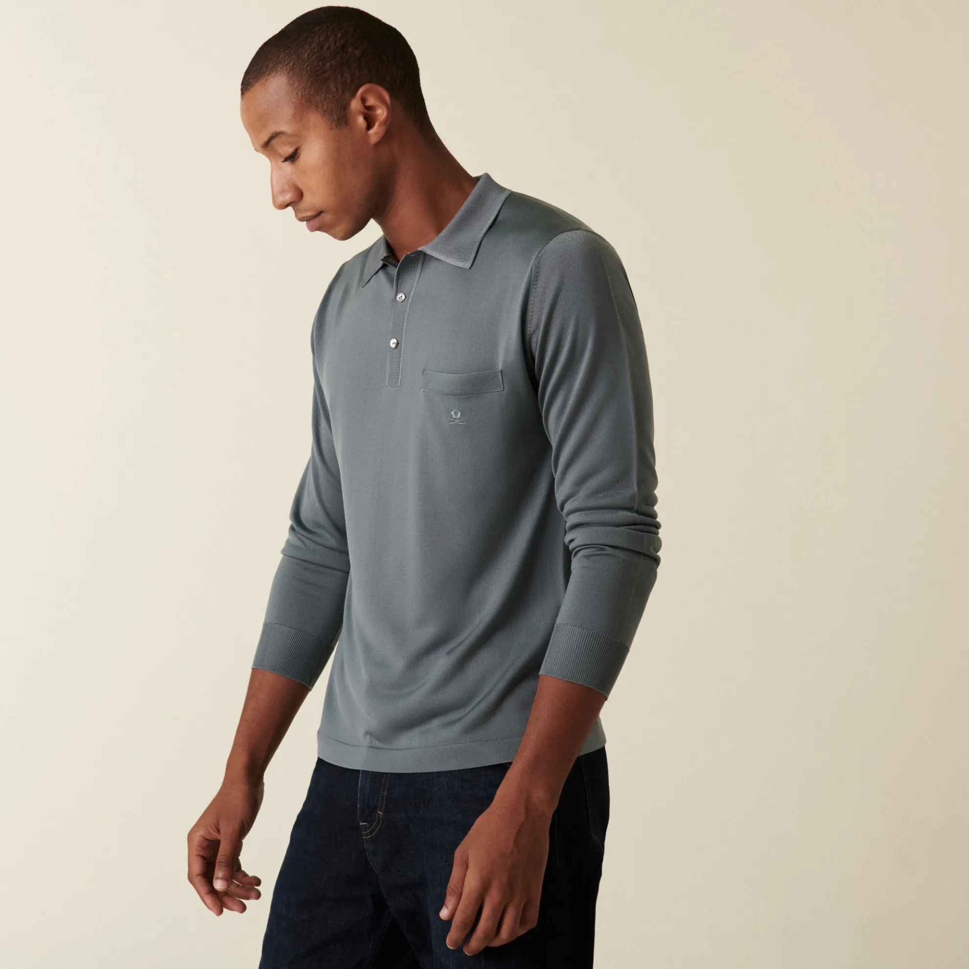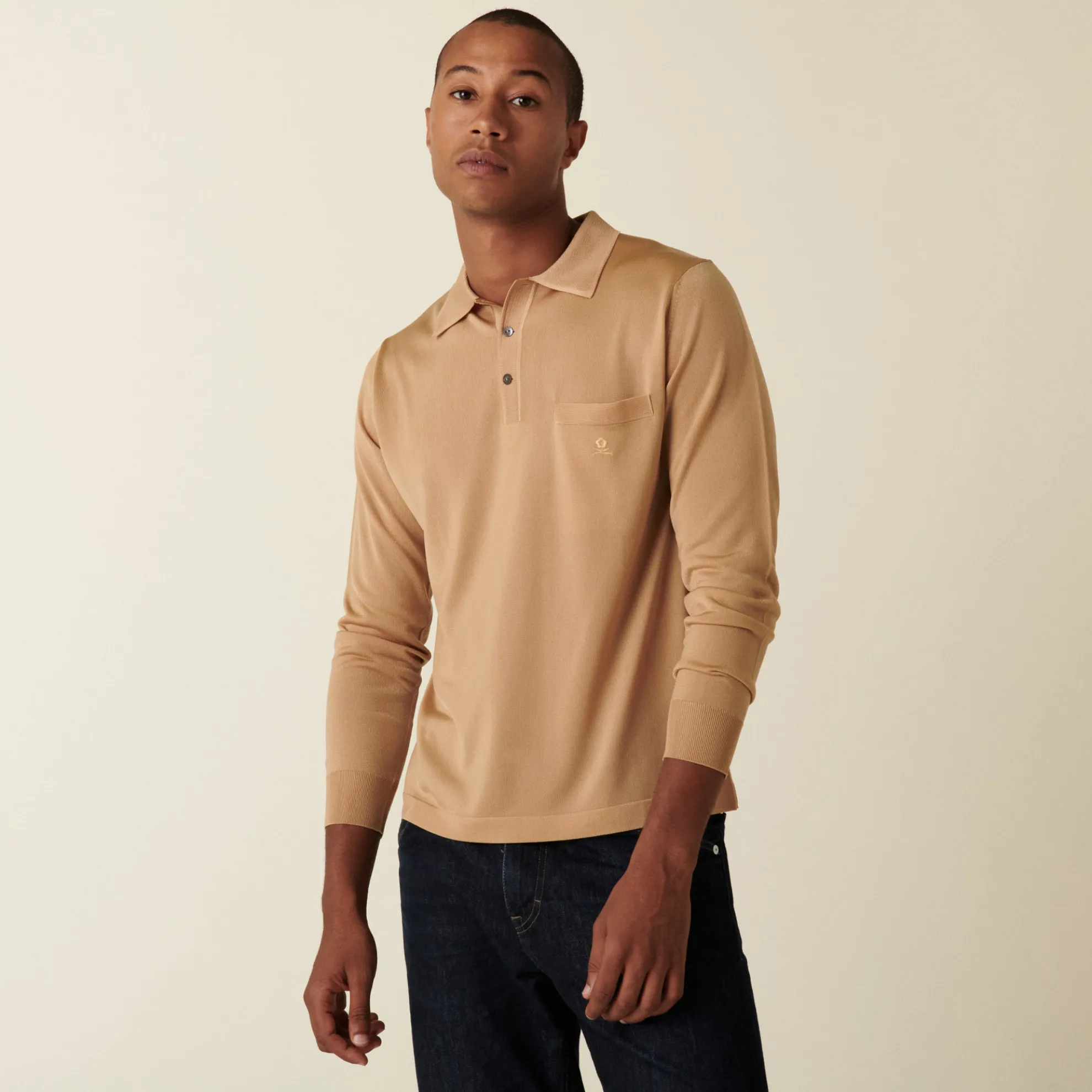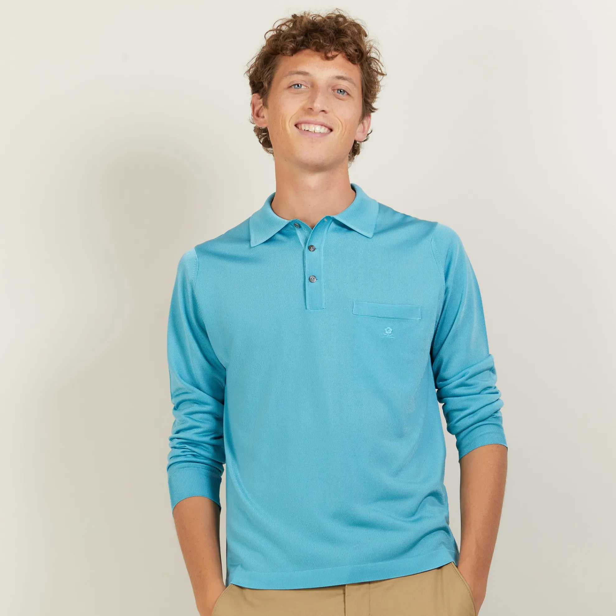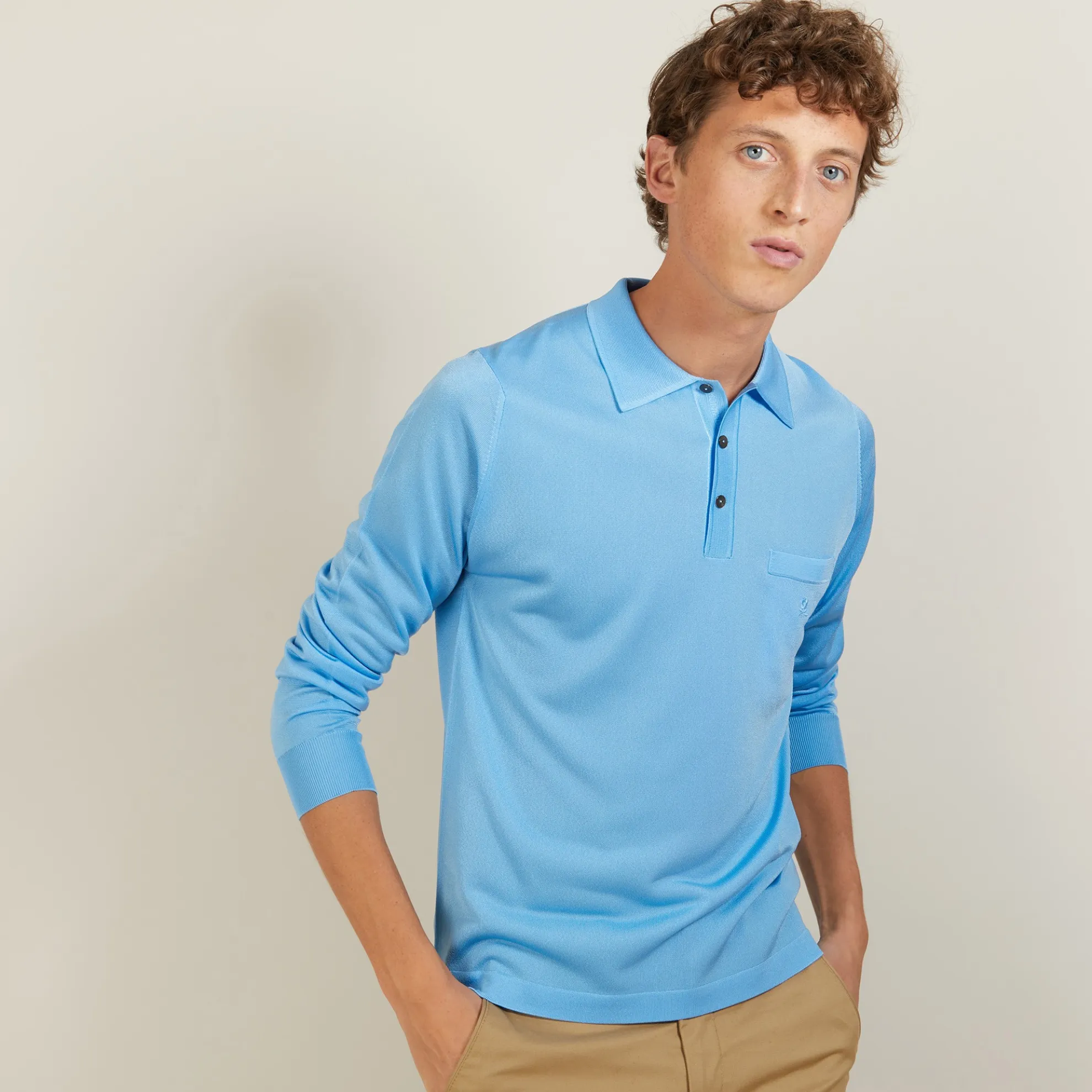 Polo Manches Longues Homme En Fil Lumiere Avec La Fleur Montagut Brodee. Ce Joli Polo Allie Chic Et Sobriete. Decline Dans Des Coloris Elegants, Ce Polo Saura S’Accorder A Toutes Vos Envies.
