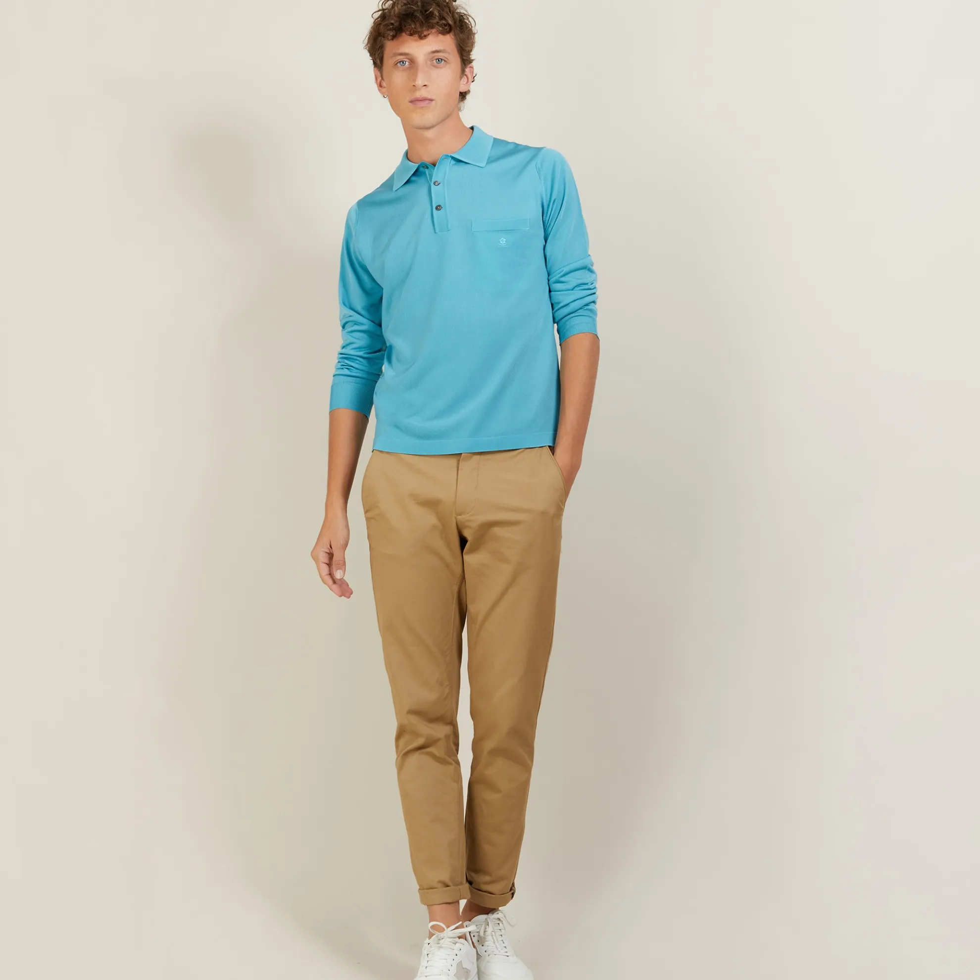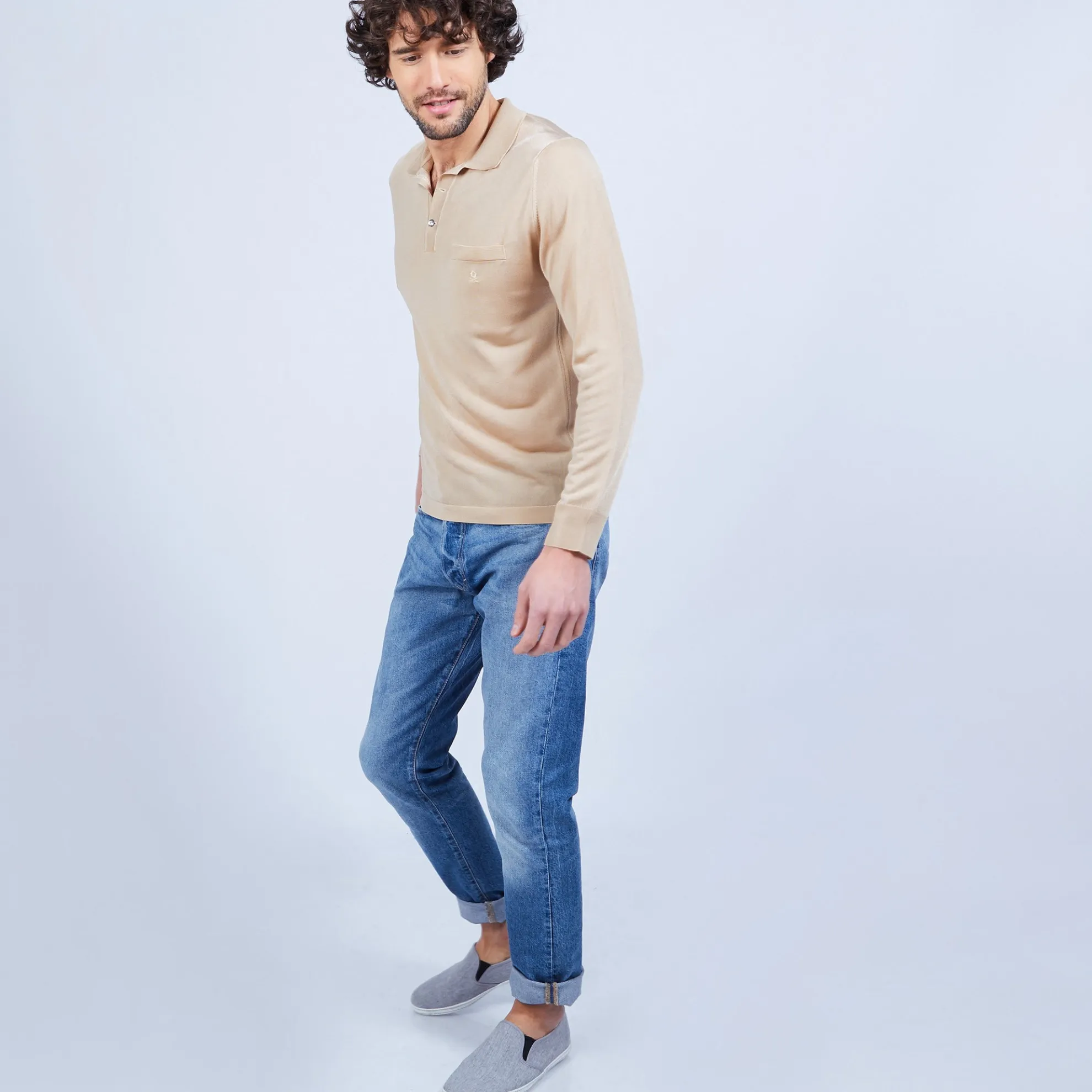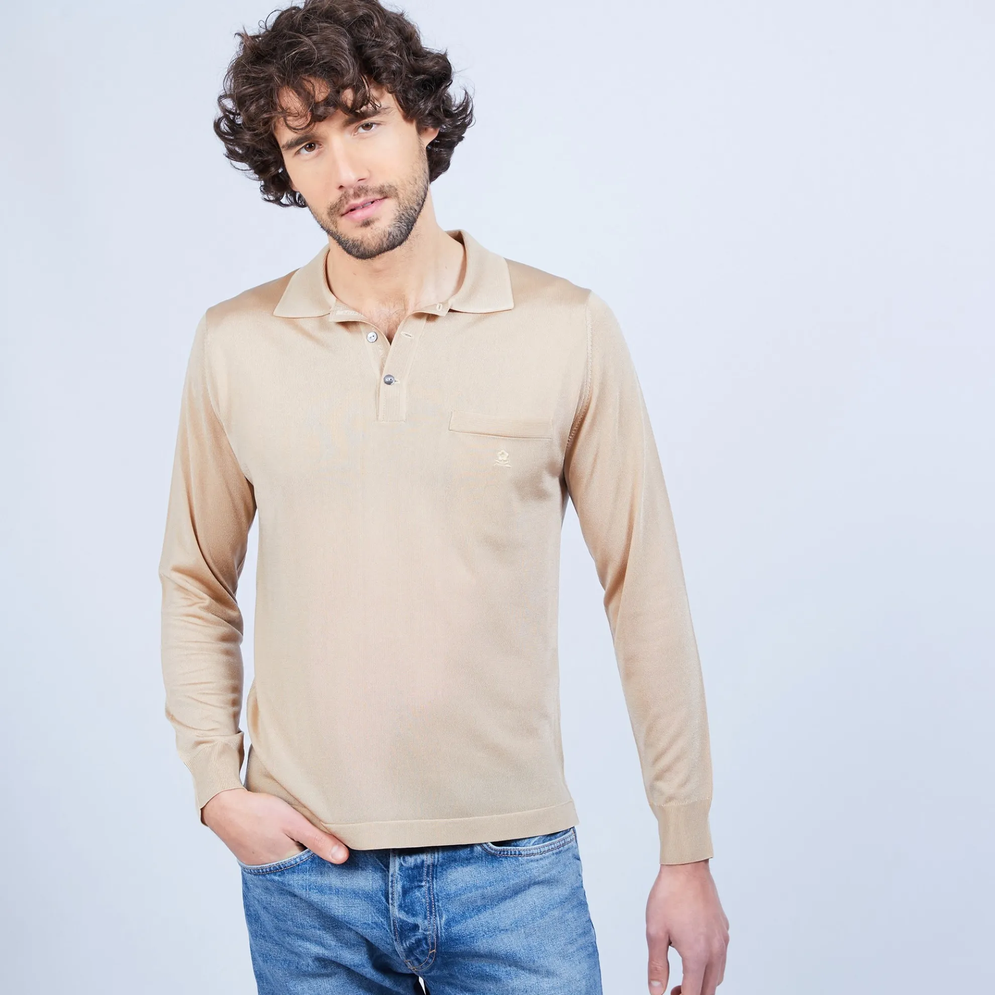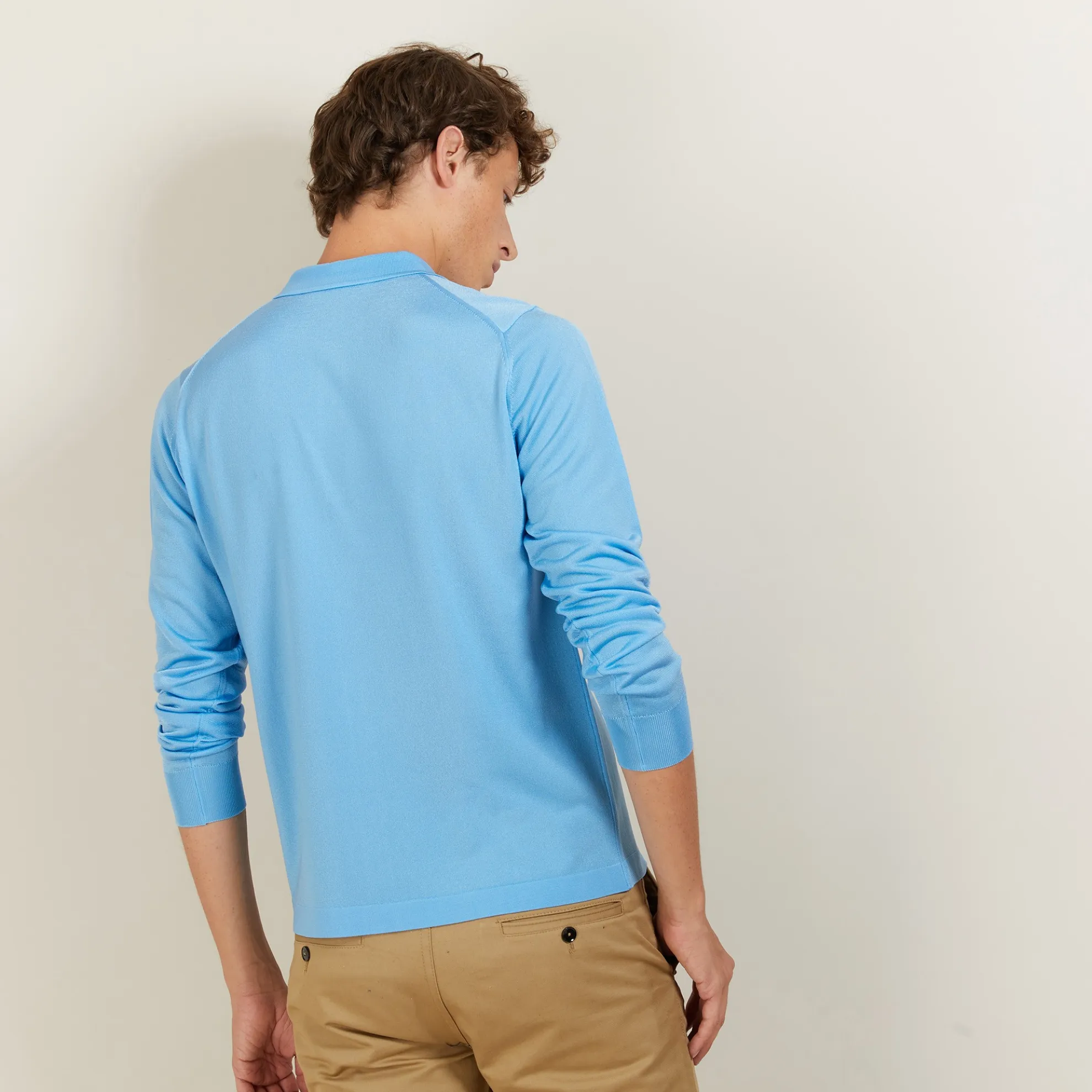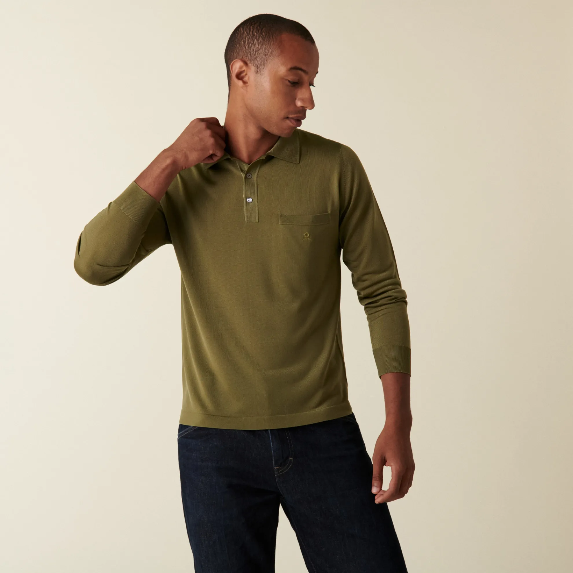 Polo Manches Longues Homme En Fil Lumiere Avec La Fleur Montagut Brodee. Ce Joli Polo Allie Chic Et Sobriete. Decline Dans Des Coloris Elegants, Ce Polo Saura S’Accorder A Toutes Vos Envies.