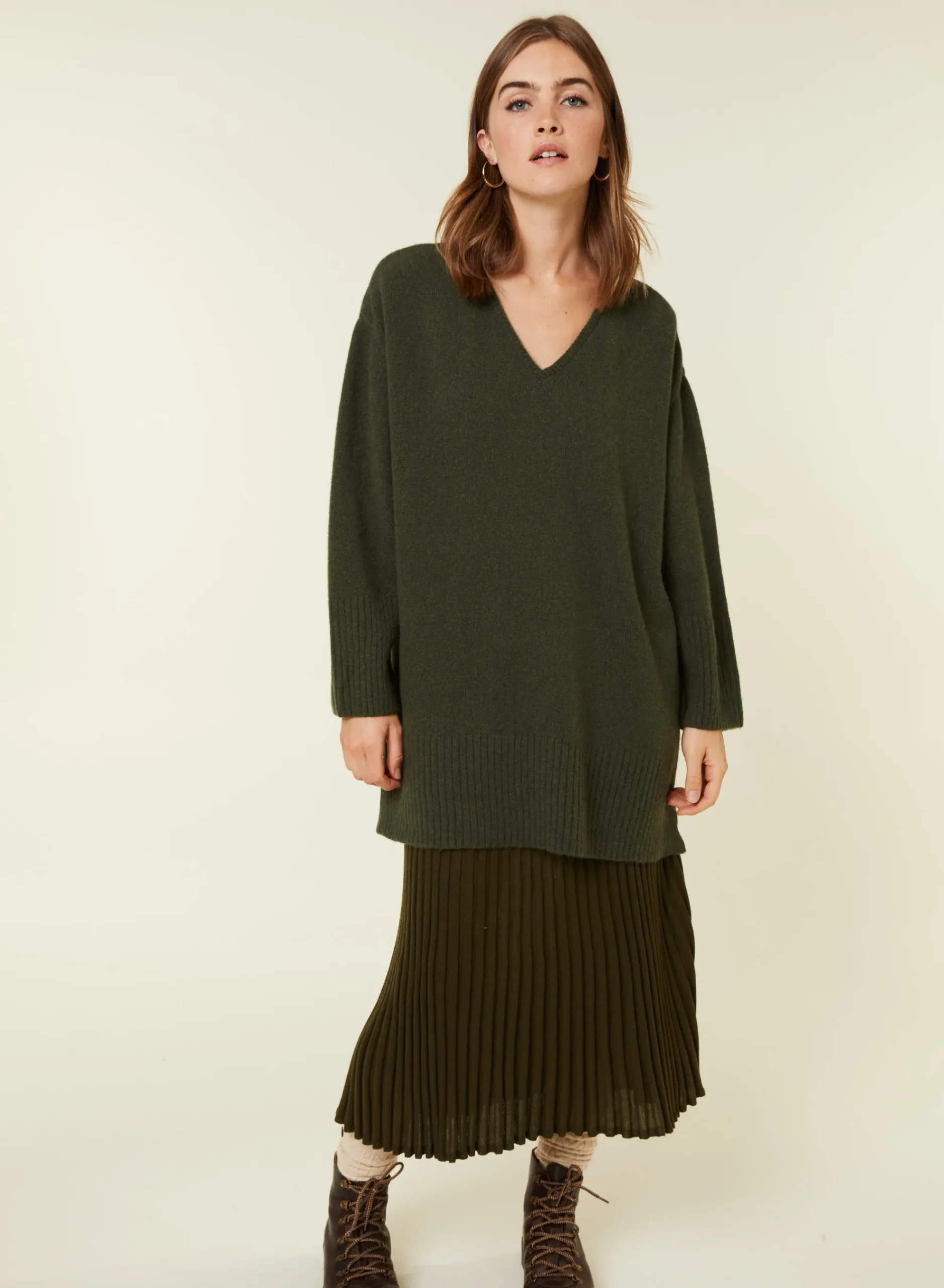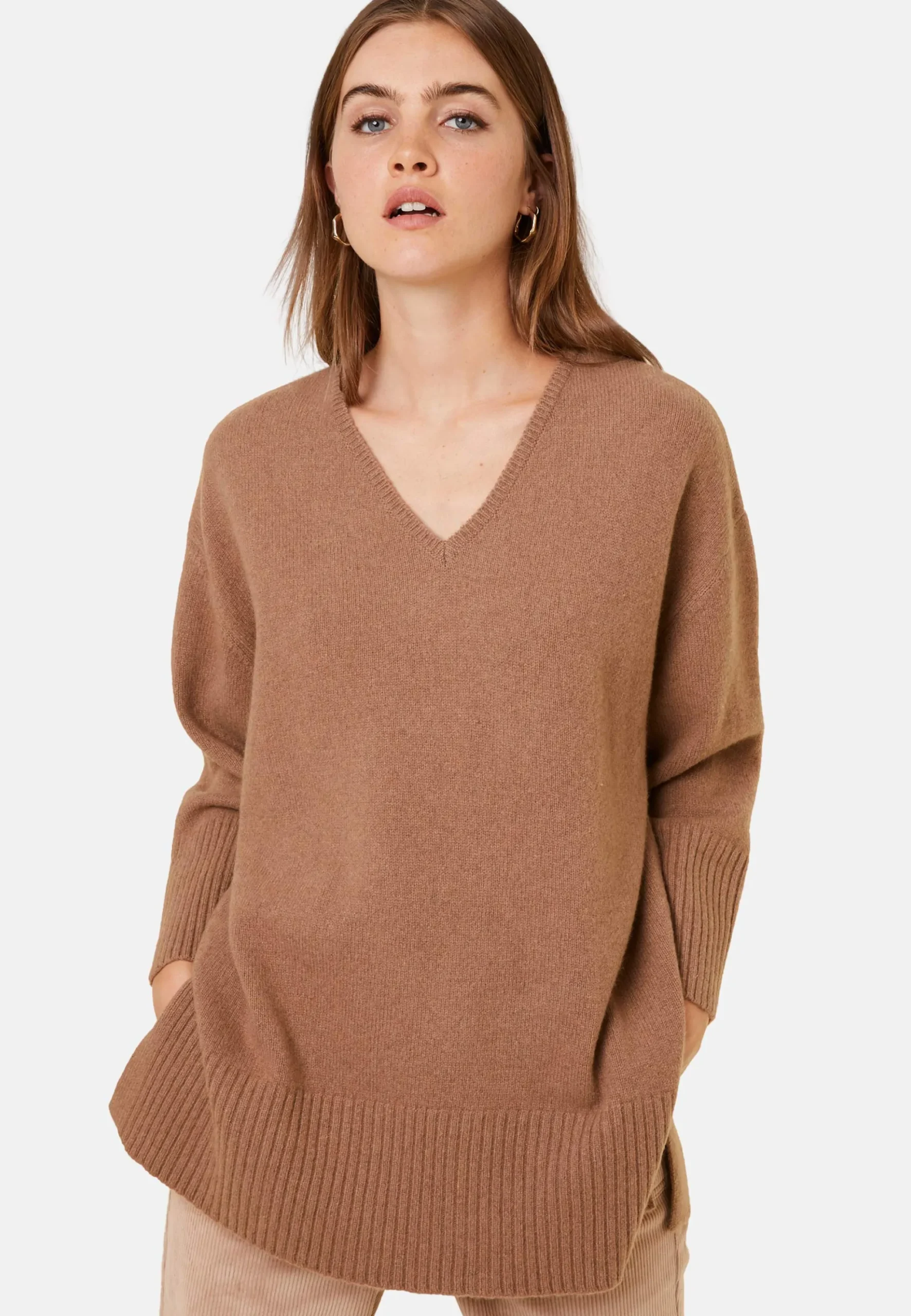 Completez Votre Vestiaire Avec Notre Pull Manches Longues Col V En Cachemire Et Laine Recycles Tricote Dans Nos Ateliers. Ce Modele Oversized Presente Une Emmanchure Basse Et 2 Grande Fentes De Chaque Cote. De Belles Finitions Larges Bords Cotes En Bas De Manches Et De Vetement Pour Parfaire Votre Silhouette. Si Vous Hesitez Entre Deux Tailles, Nous Vous Conseillons D’Opter Pour La Taille Inferieure.