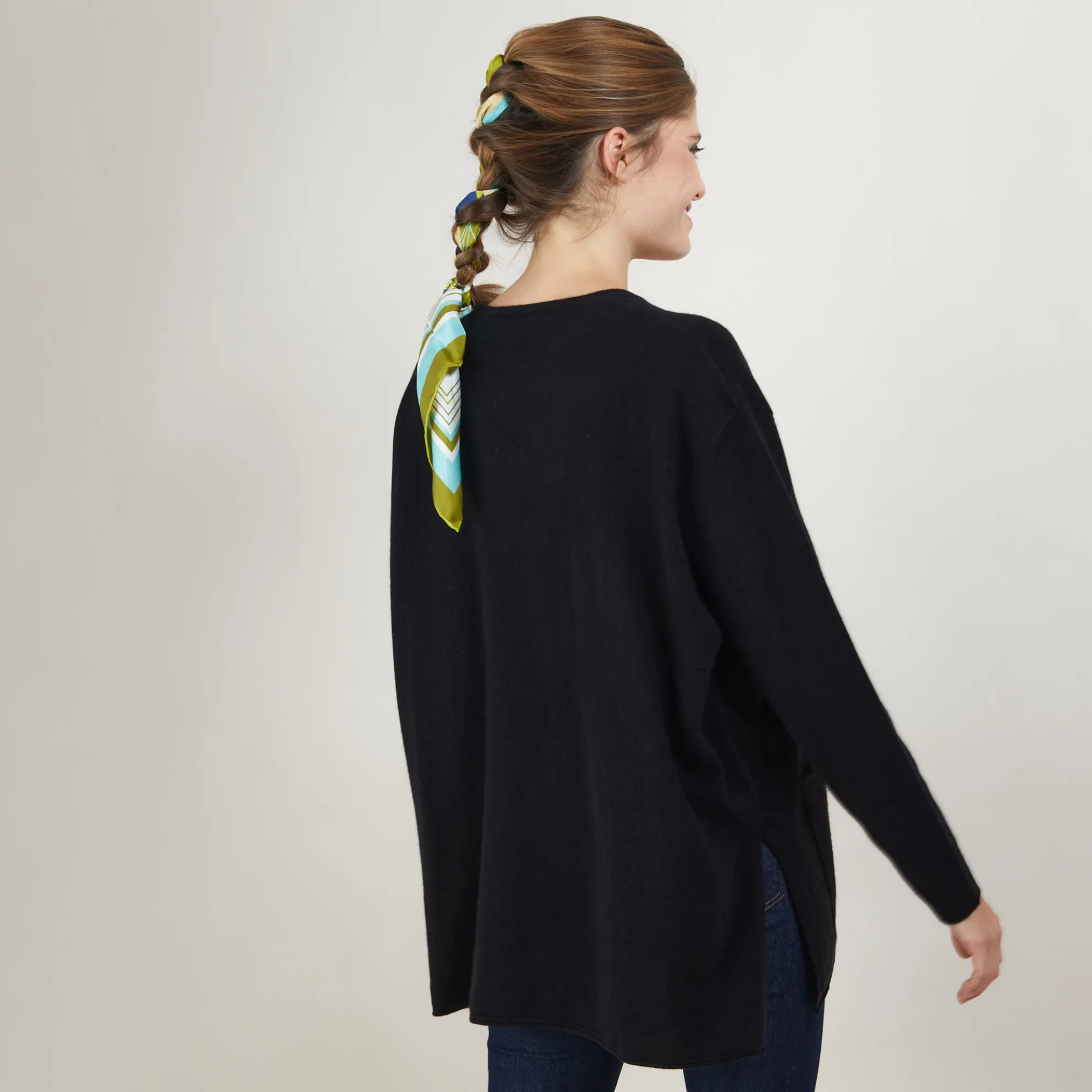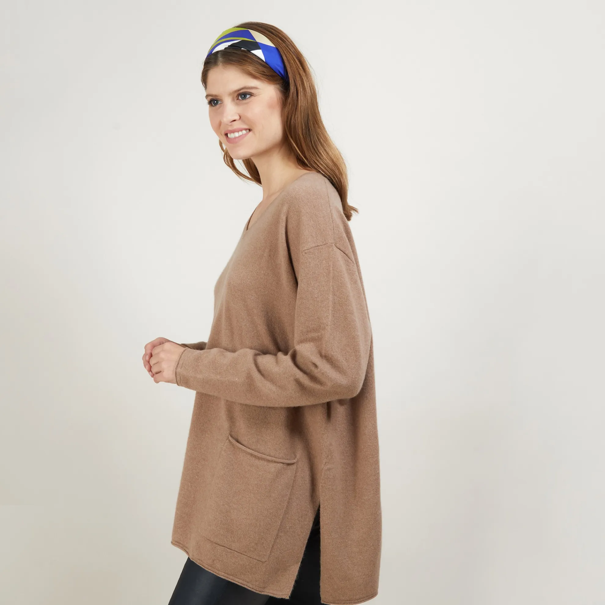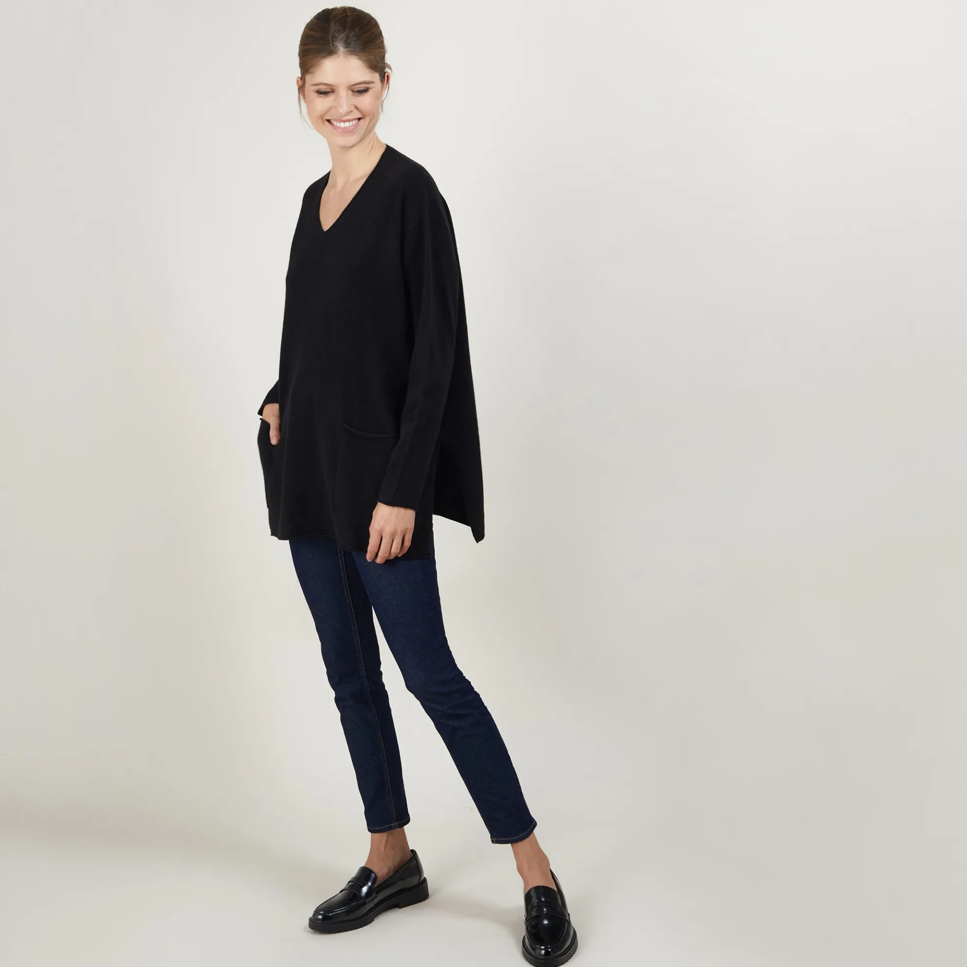Pull Col V En Cachemire. Sa Matiere Et Sa Coupe Oversize Apport Du Confort Et De La Douceur Pour Vous Garder Bien Au Chaud Tout L’Hiver. Pour La Touche D’Originalite, Les Deux Grandes Fentes Sur Le Cote Et Les Poches A L’Avant Avec Des Finitions Roulees Aux Manches, Aux Poches Et Au Bas Du Vetement.