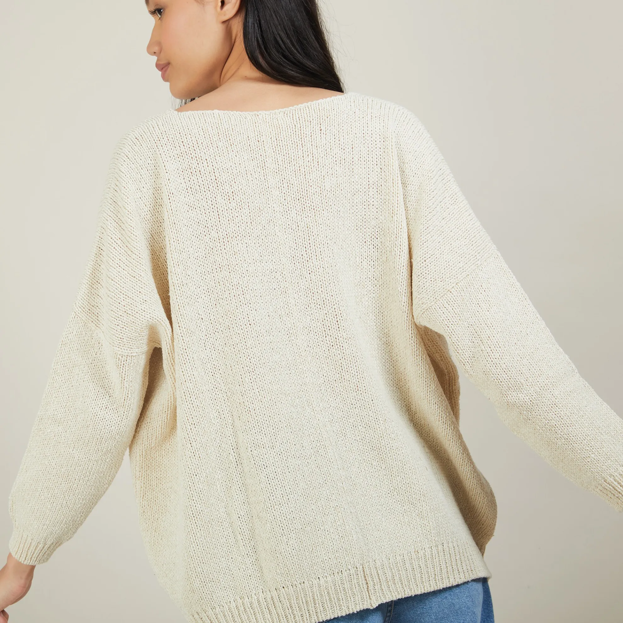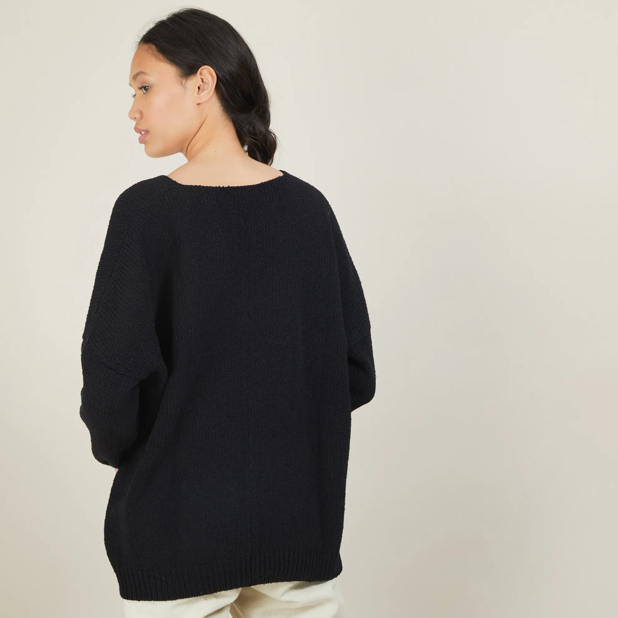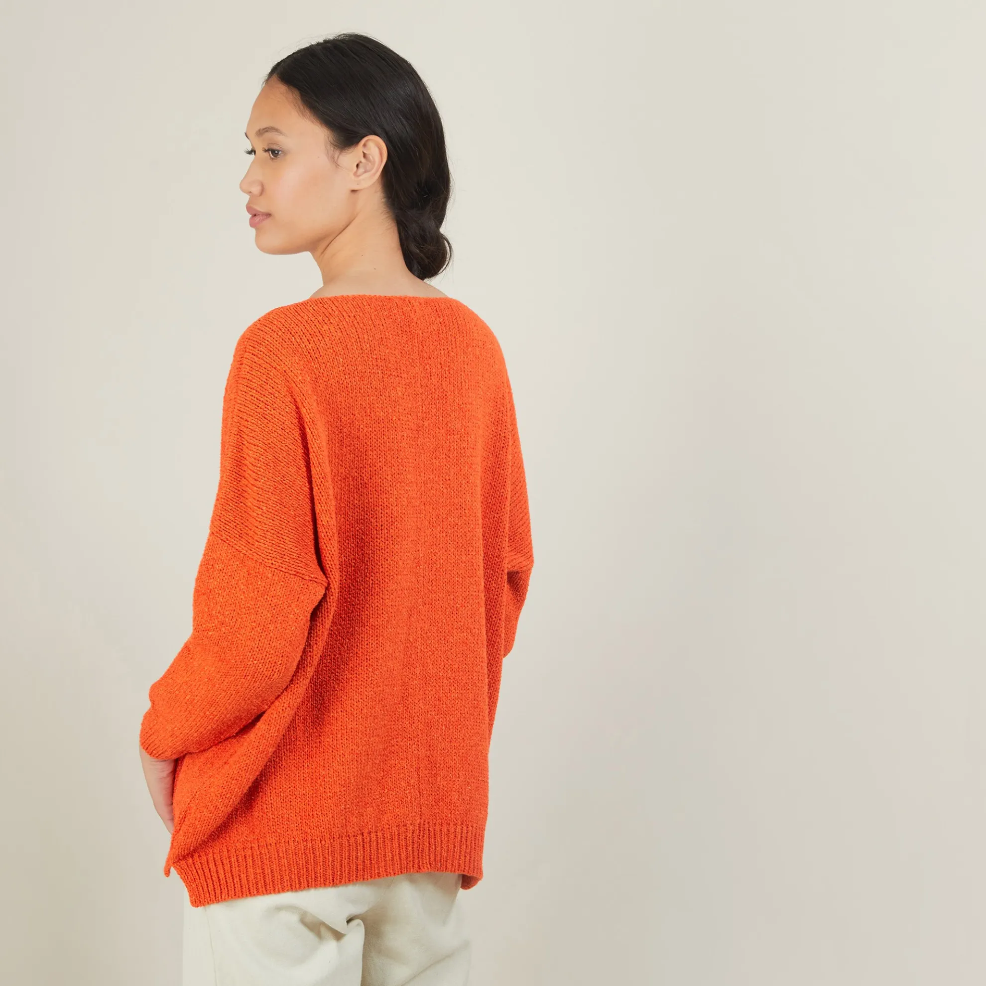 Pull Ample Col V Tricote En Melange De Laine Et Soie, La Matiere Phare De La Marque Poles. Coupe Oversize, Emmanchures Basses.