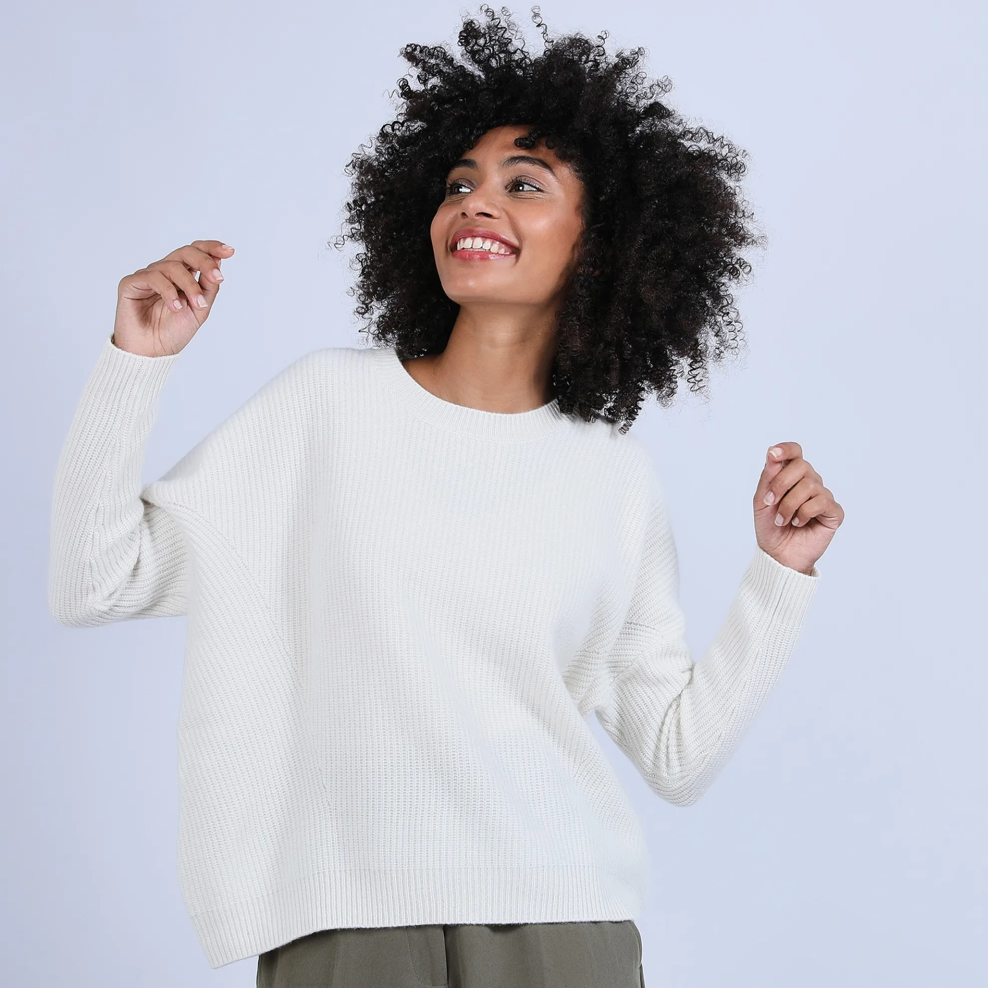 Pull Col Rond En Cachemire. Forme Boule Tres Sympa. Jeux De Cotes Dans Des Directions Opposees. Style Casual Et Actuel. Une Jolie Piece Pour Completer Votre Dressing. Couleurs Intenses Et Profondes, On Adore !