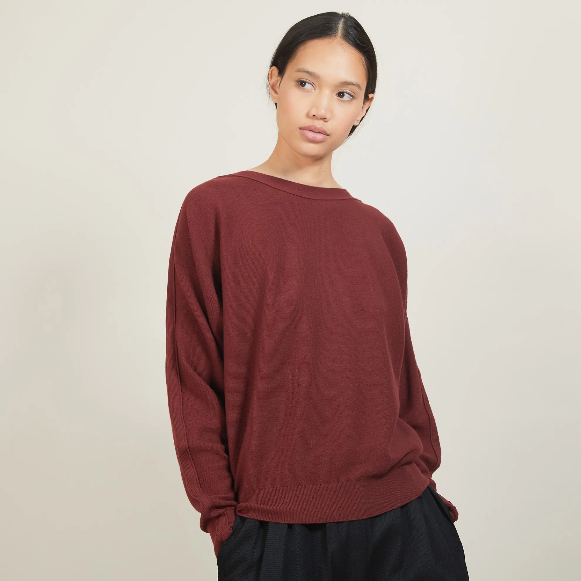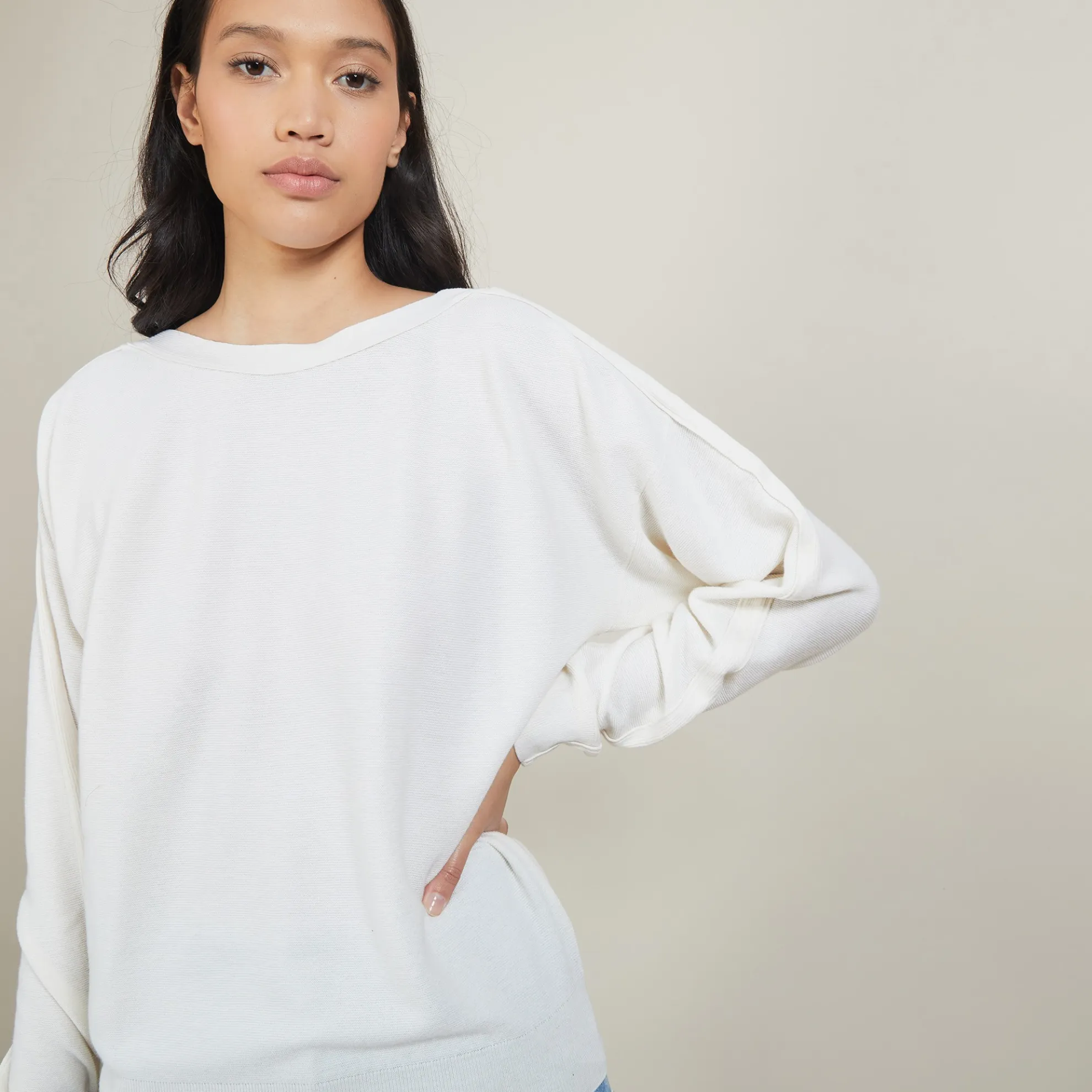 Pull Col Bateau En Coton Cachemire. Un Joli Pull Oversize Aux Jeux De Points Pour Un Style Casual. Decline En Une Large Gamme De Coloris, Il S’Associera Parfaitement A Toutes Vos Tenues.