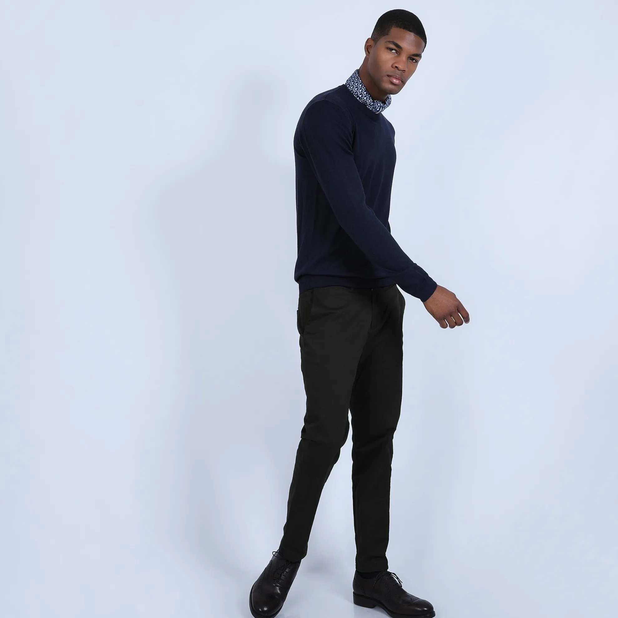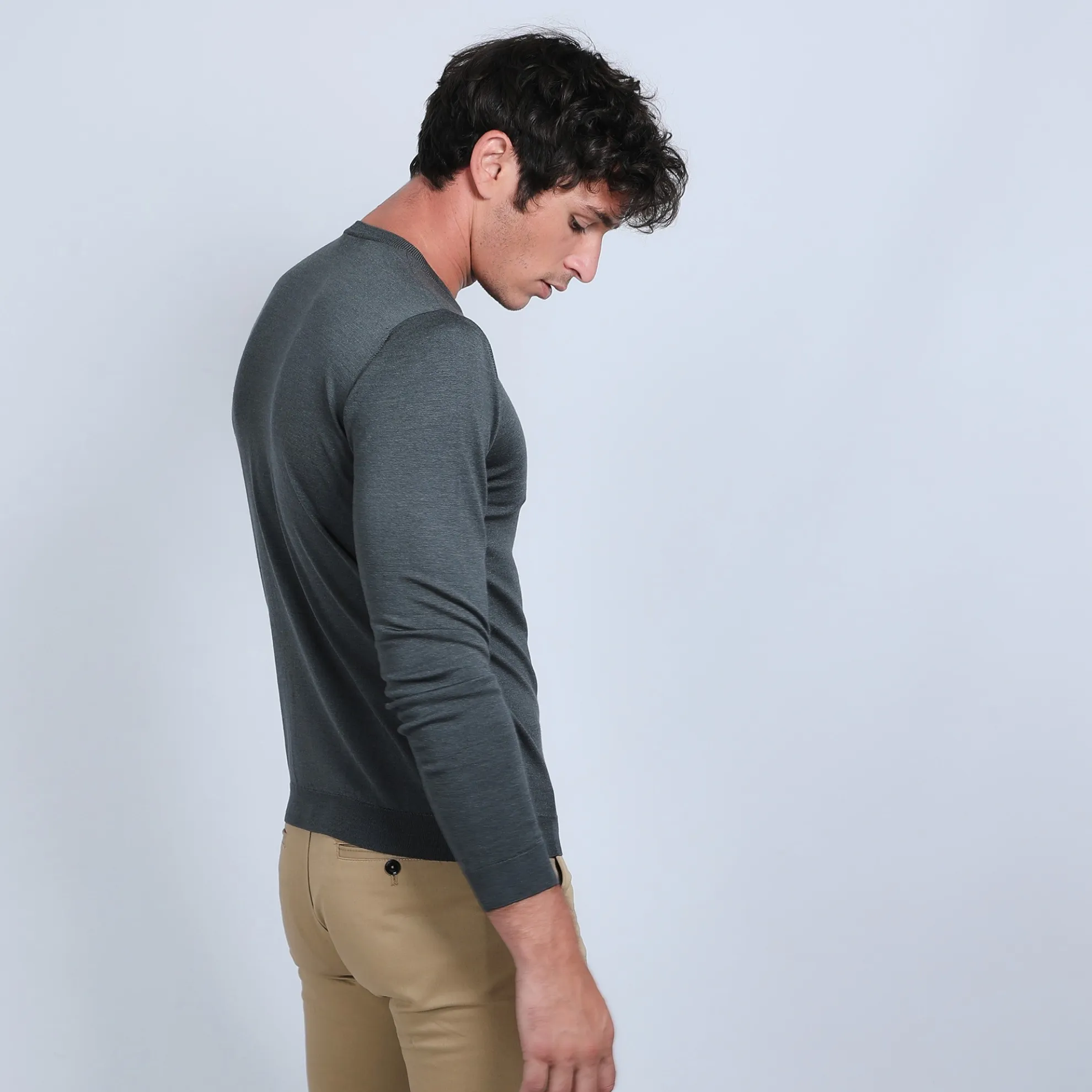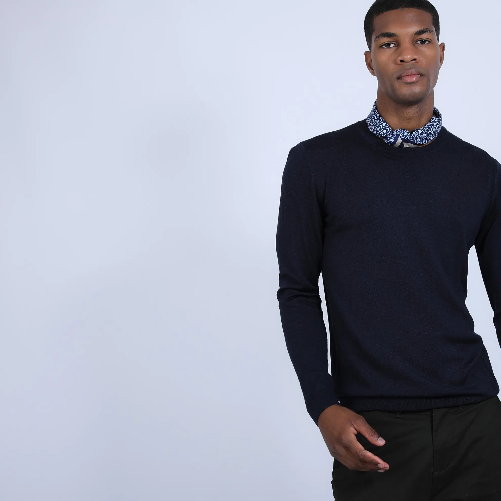 Pull Col Rond En Laine Et Soie Pour Homme. Style Intemporel Qui Conviendra A Tous Vos Pantalons. Un Indispensable Dans Votre Armoire Pour Cet Hiver. Le Melange Laine Et Soie Assure Douceur Au Toucher (Meme Sur La Peau) Et Procure Un Aspect Satine Au Pull. Tres Chic. Existe Aussi En Version Col Polo (Voir Modele Bartev) Et Col V (Voir Modele Basil).Tricote Dans Nos Ateliers.