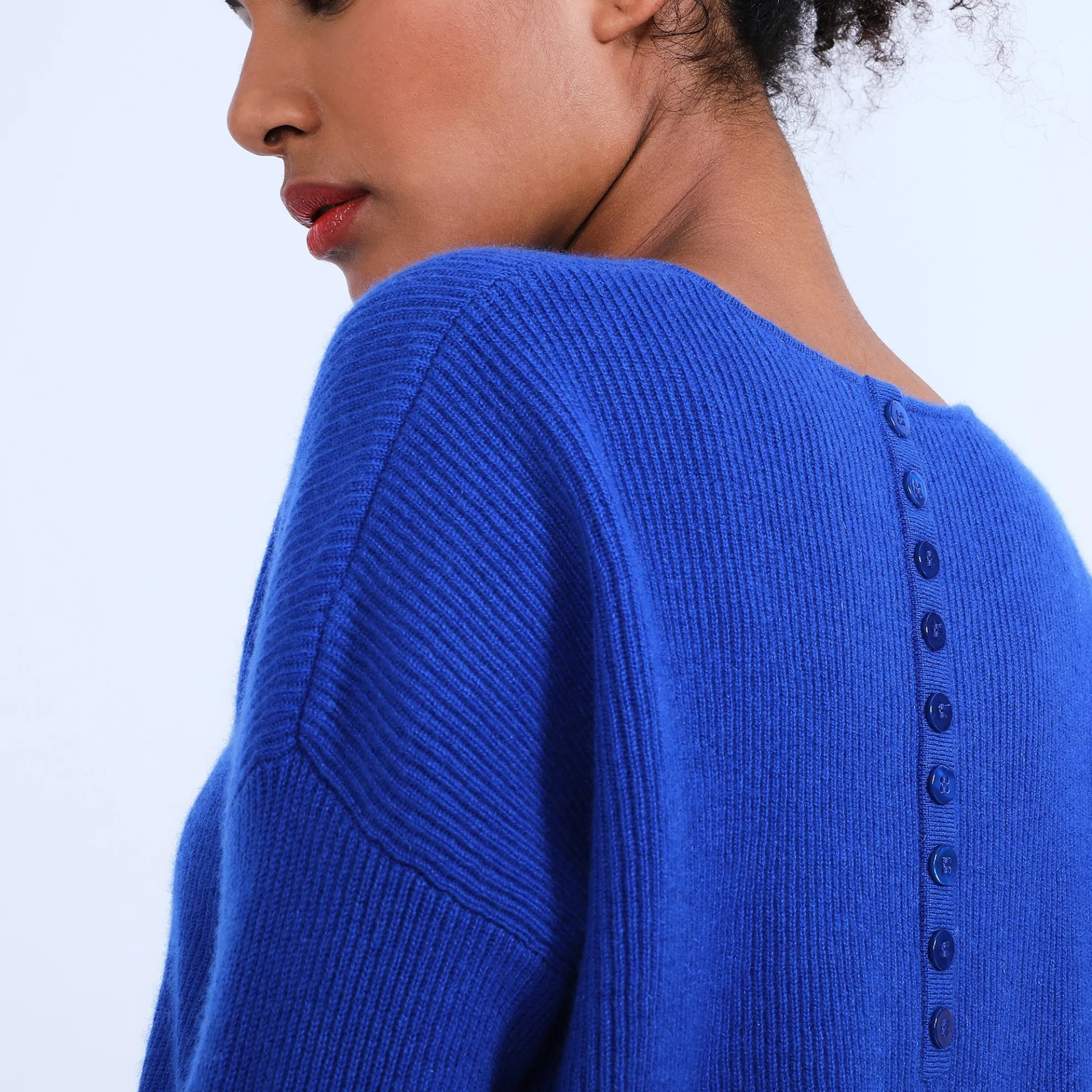 Pull Col Ouvert En Cachemire Pour Femme. Coupe Droite Facile A Porter. Maille Tricotee En Cotes Anglaises Donannt Du Relief A La Matiere. Une Fente De Chaque Cote Sur Les Hanches. Boutonniere Dans Le Dos. Coloris Tendance Pour Cet Hiver.