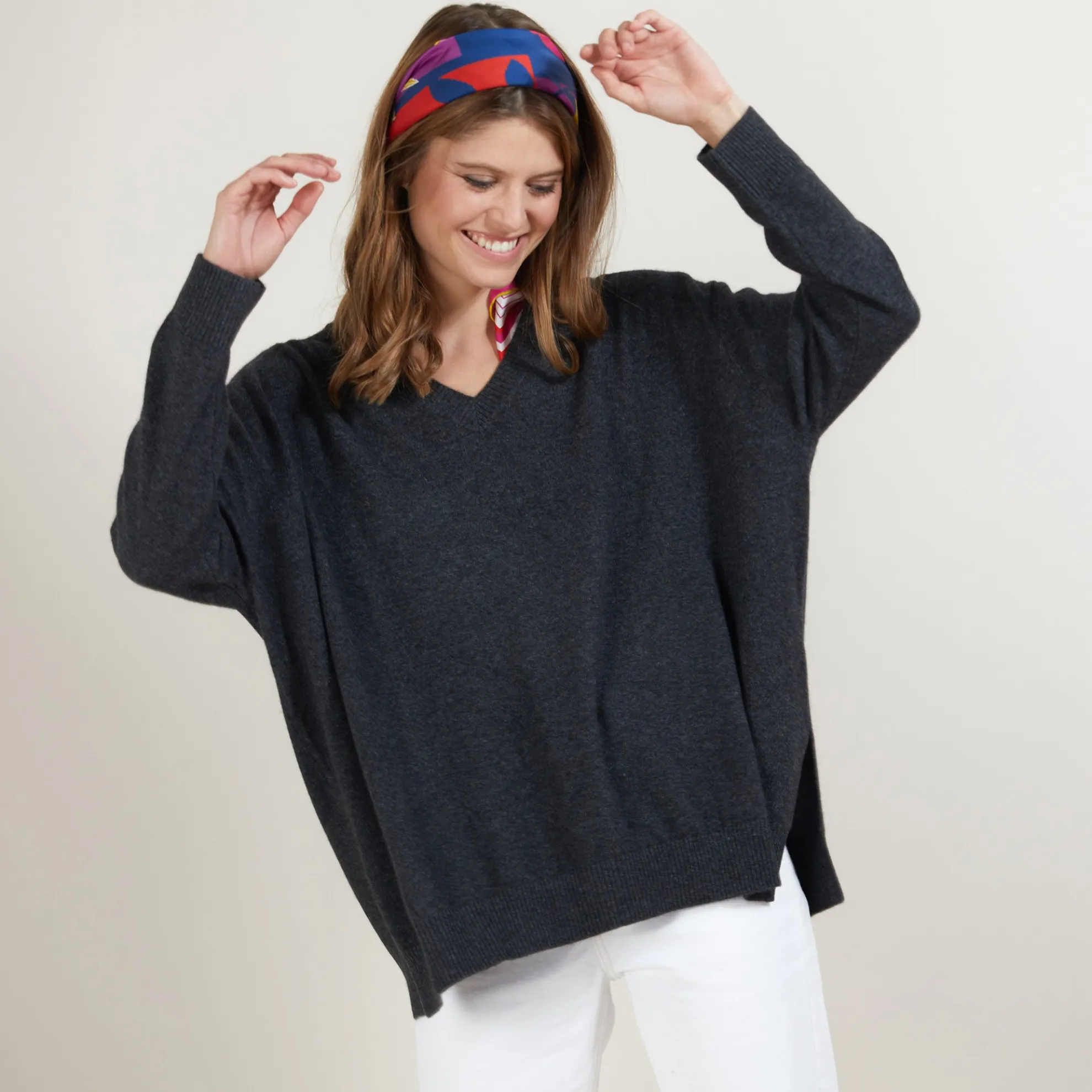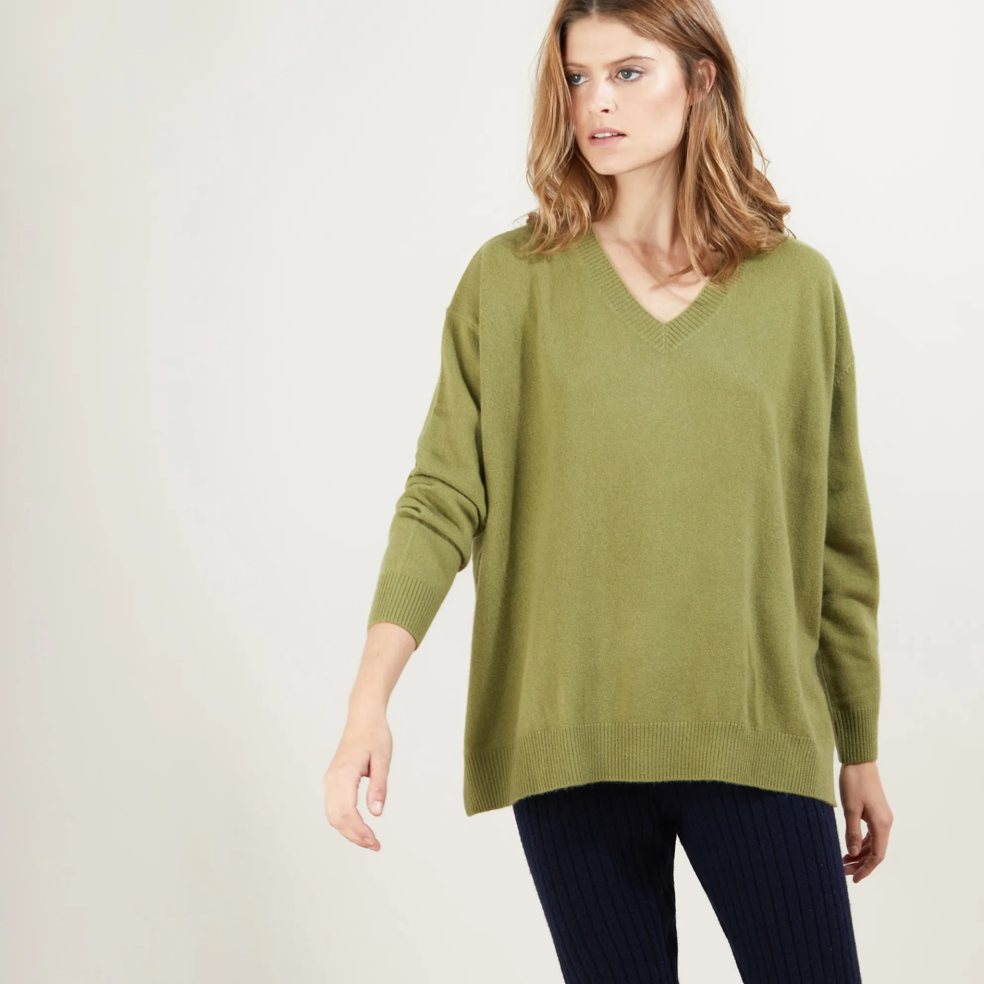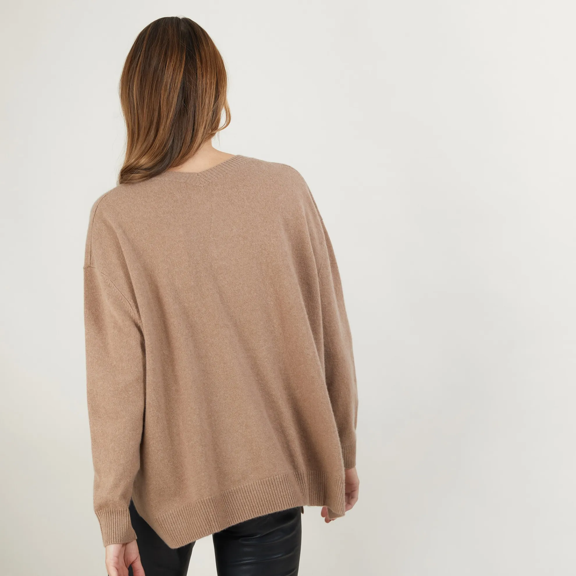 Pull Oversize En Cachemire Avec Un Col V A L’Avant Et A L’Arriere Du Pull. Deux Fentes Sur Les Cotes Pour Apporter Une Touche D’Originalite. Ce Pull Est Parfait Pour Se Sentir A L’Aise Toute Au Long De La Journee.