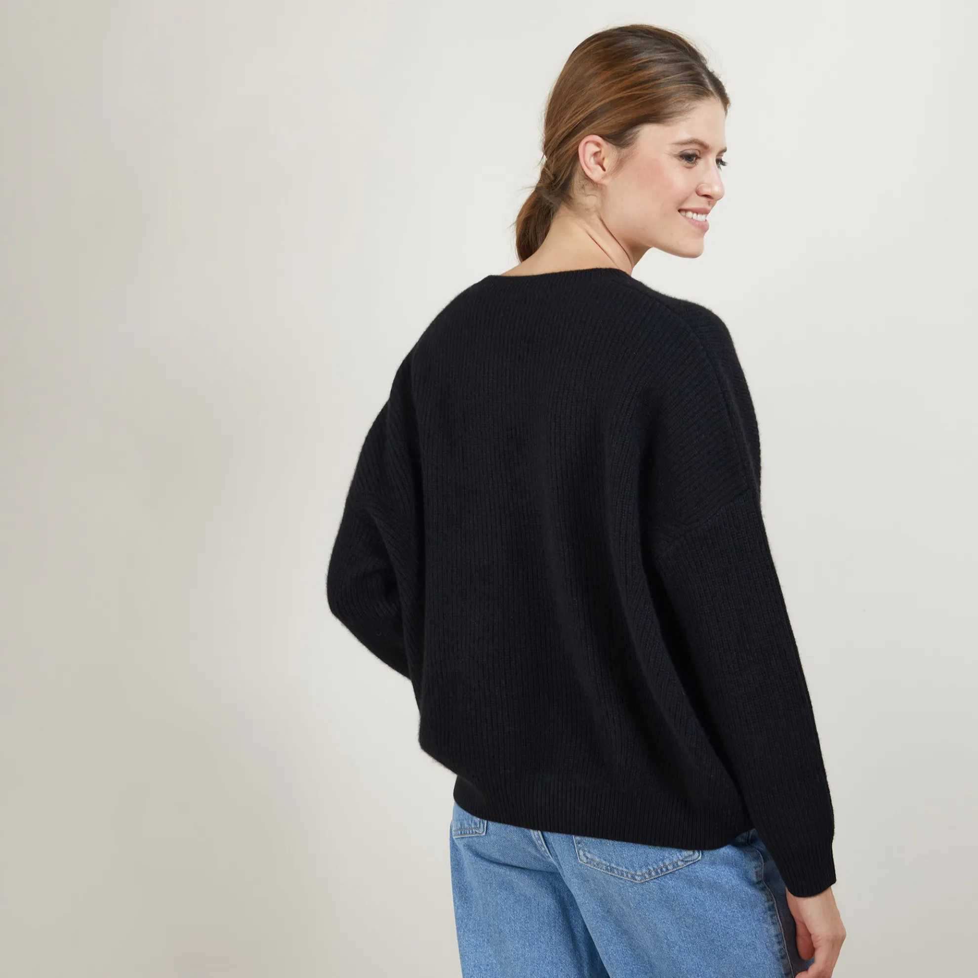 Pull Loose En 100% Cachemire 4 Fils. Un Joli Pull Avec Un Jeu De Cotes Decline En Differents Coloris.
