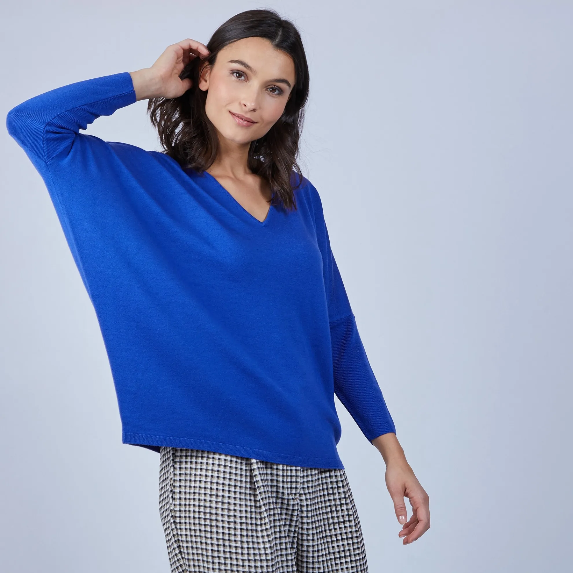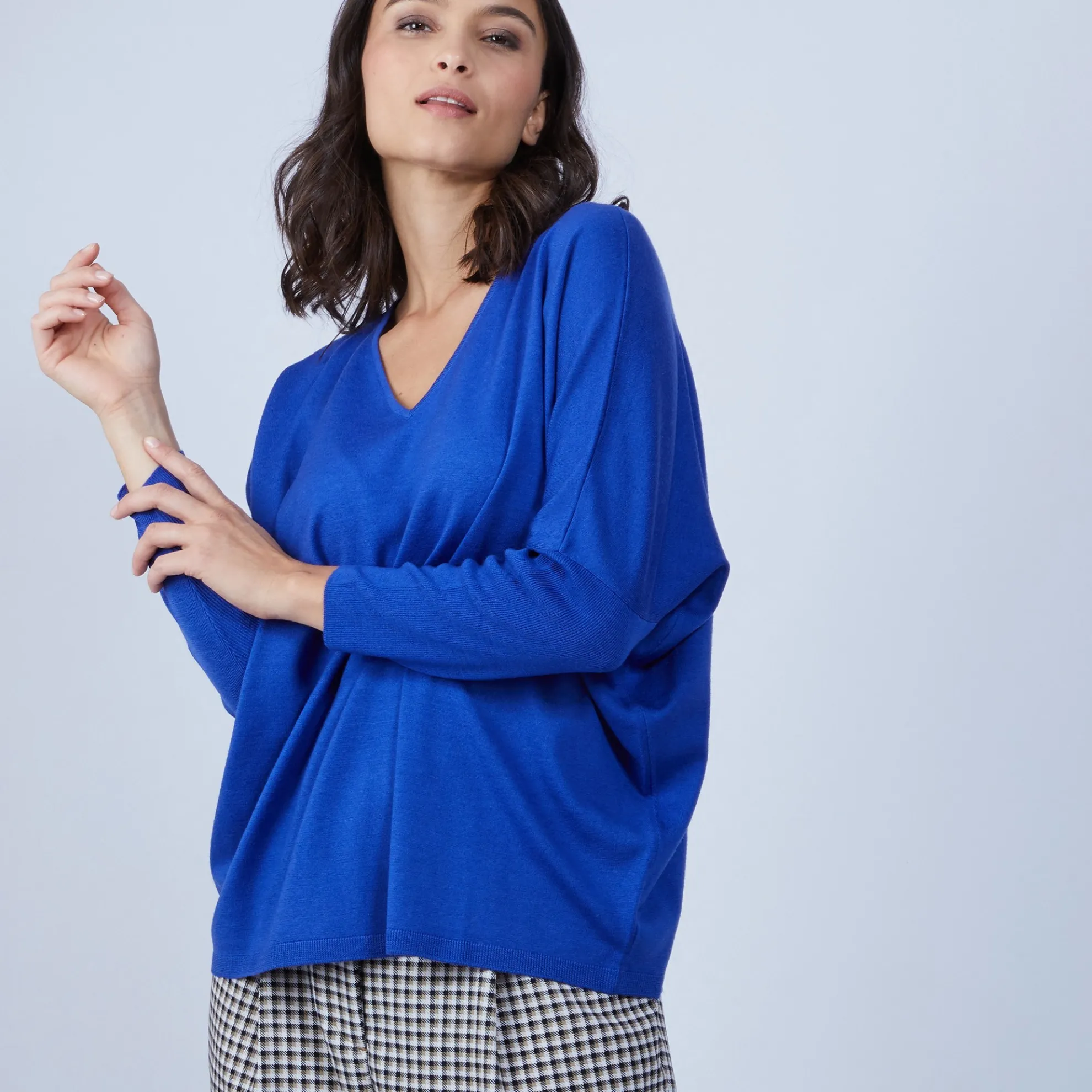 Pull Oversize Manches Chauve-Souris En Laine Merinos. Look Decontracte Et Moderne Tout A Fait Dans L’Esprit Poles. Tricote Dans Nos Ateliers. Pour Retrouver Tous Nos Pulls Poles, C’Est Par Ici.