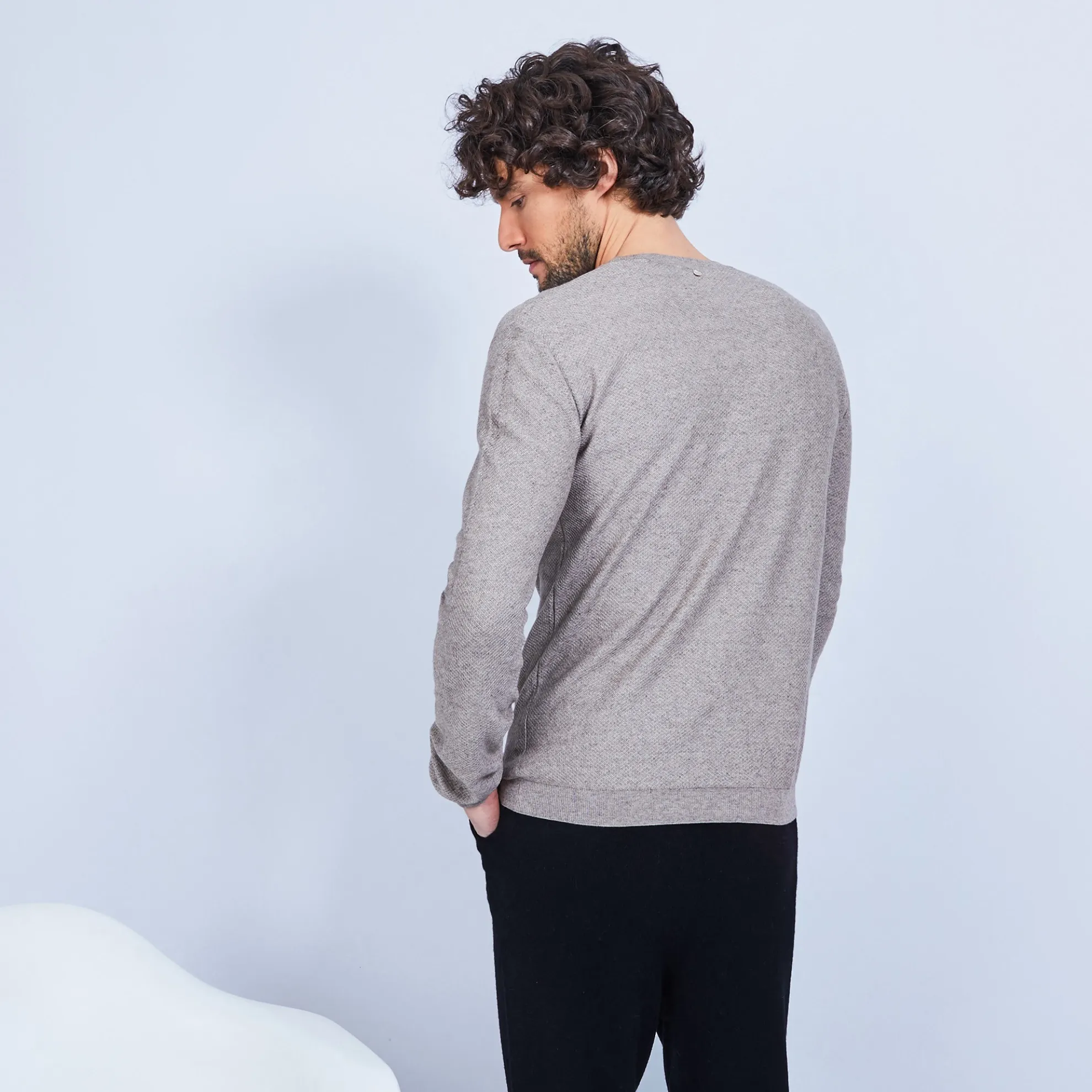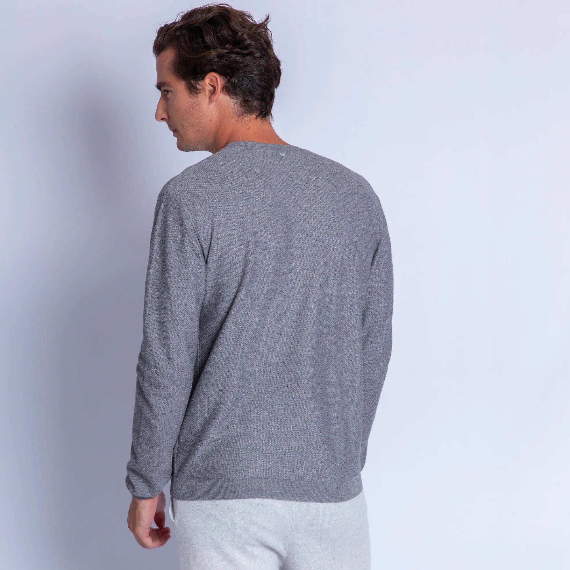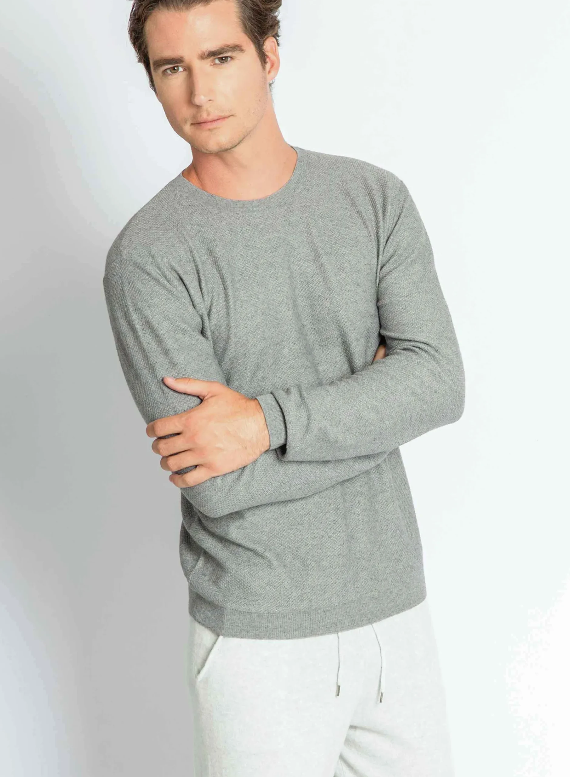 Pull Col Rond Point Rucher En Coton Et Cachemire. Ultra Doux Et Leger, Propice A La Detente Et Au Farniente. Toute La Ligne De Vetements D’Interieur O Est Concue Pour Votre Bien-Etre Et Fabriquee Dans Des Matieres Douces Et Naturelles.