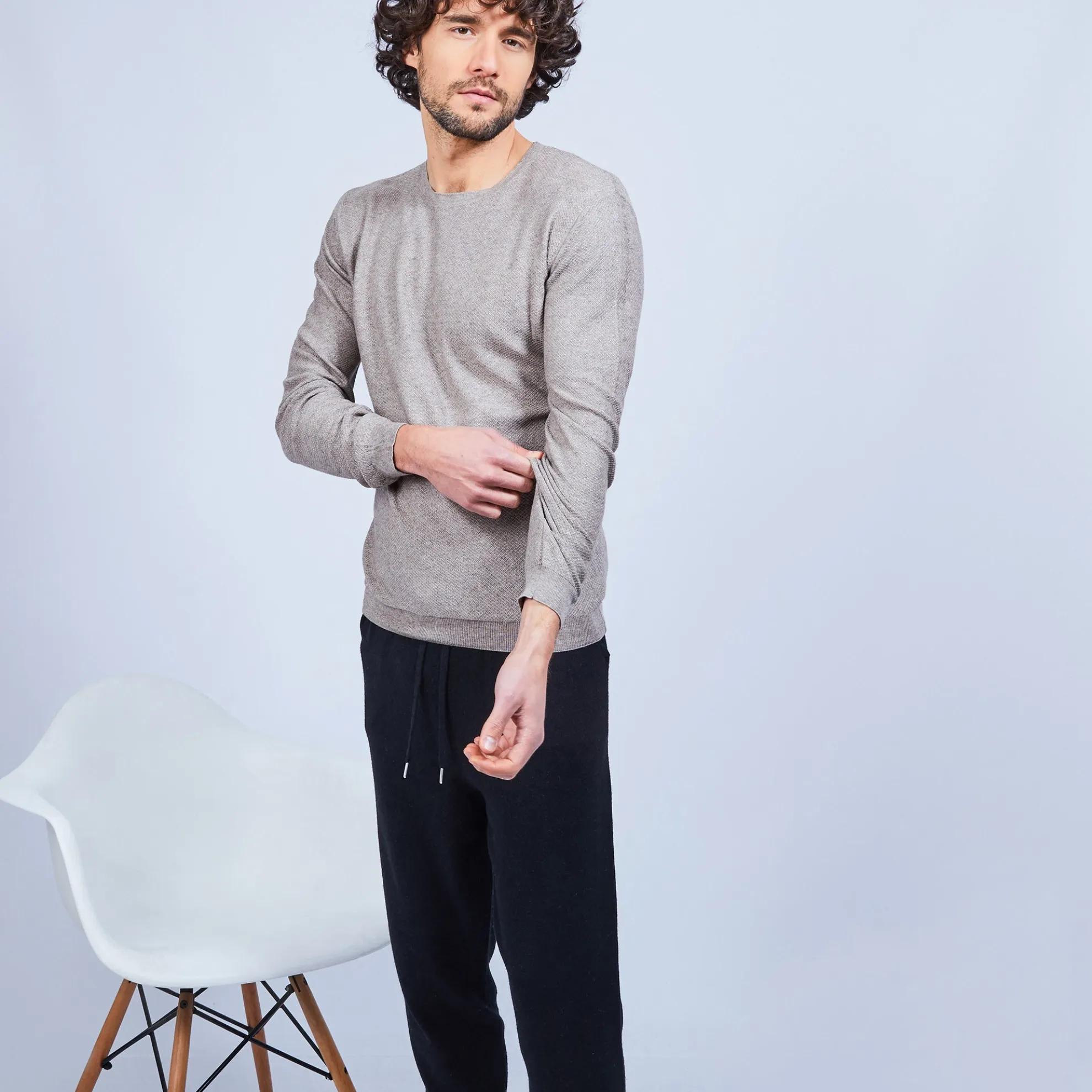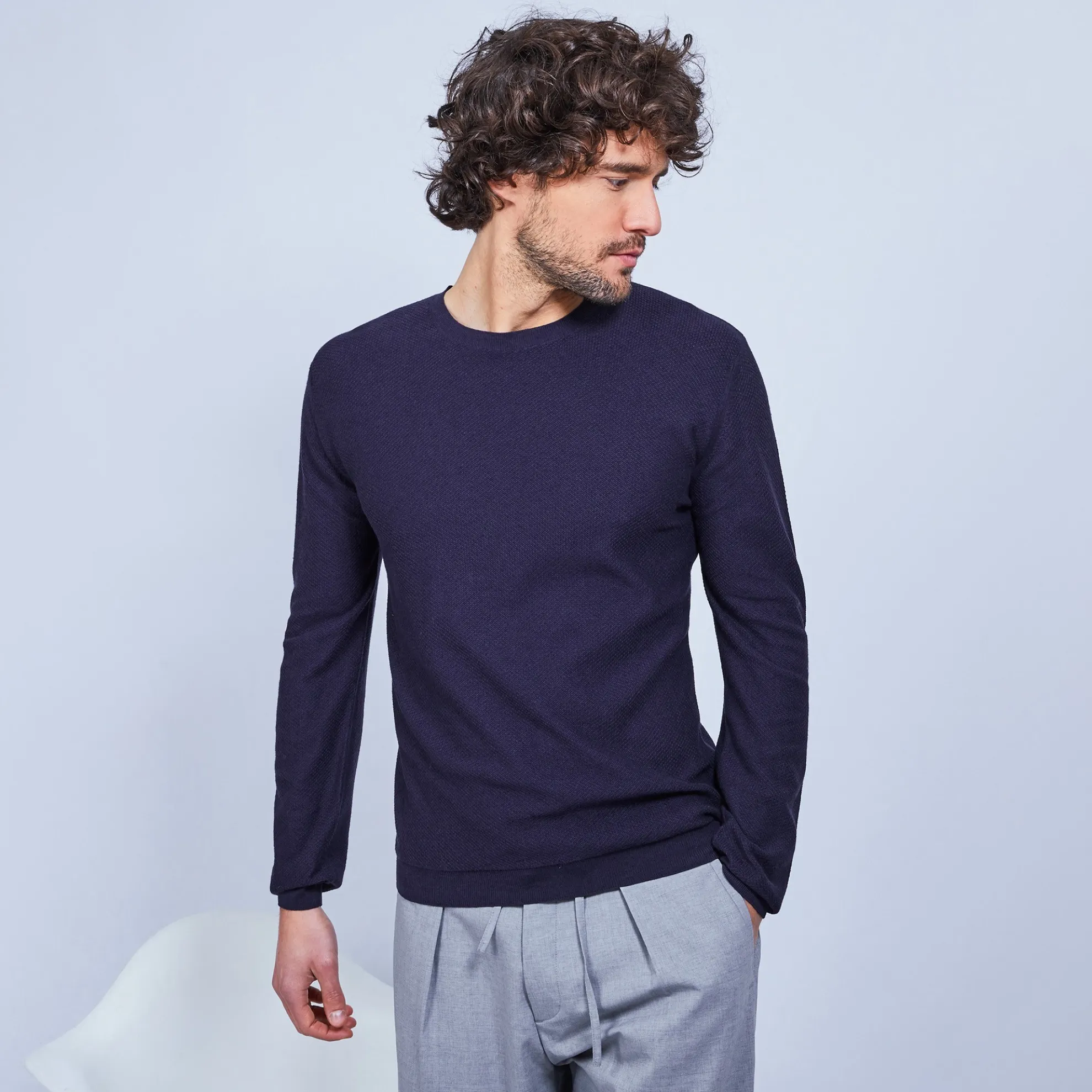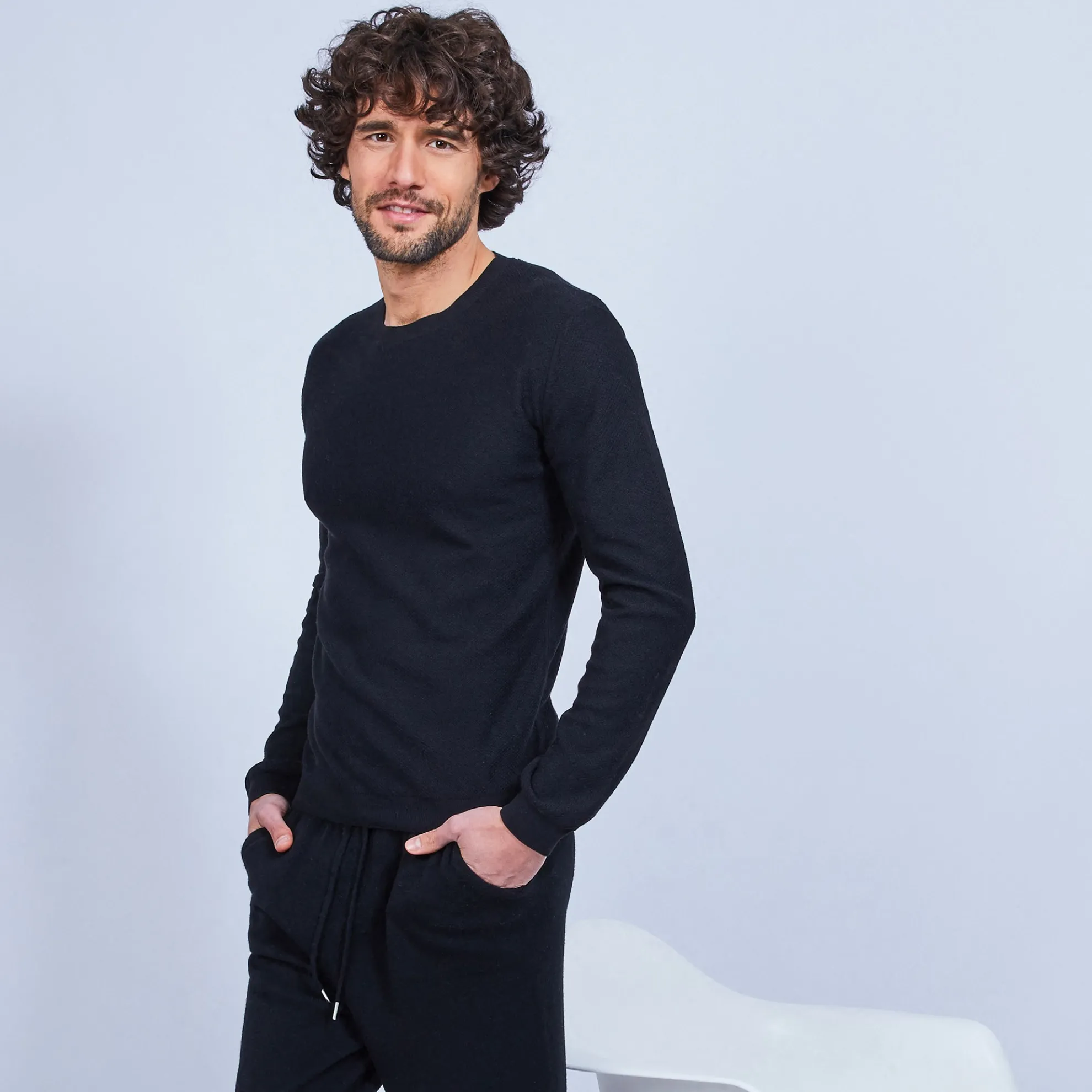 Pull Col Rond Point Rucher En Coton Et Cachemire. Ultra Doux Et Leger, Propice A La Detente Et Au Farniente. Toute La Ligne De Vetements D’Interieur O Est Concue Pour Votre Bien-Etre Et Fabriquee Dans Des Matieres Douces Et Naturelles.