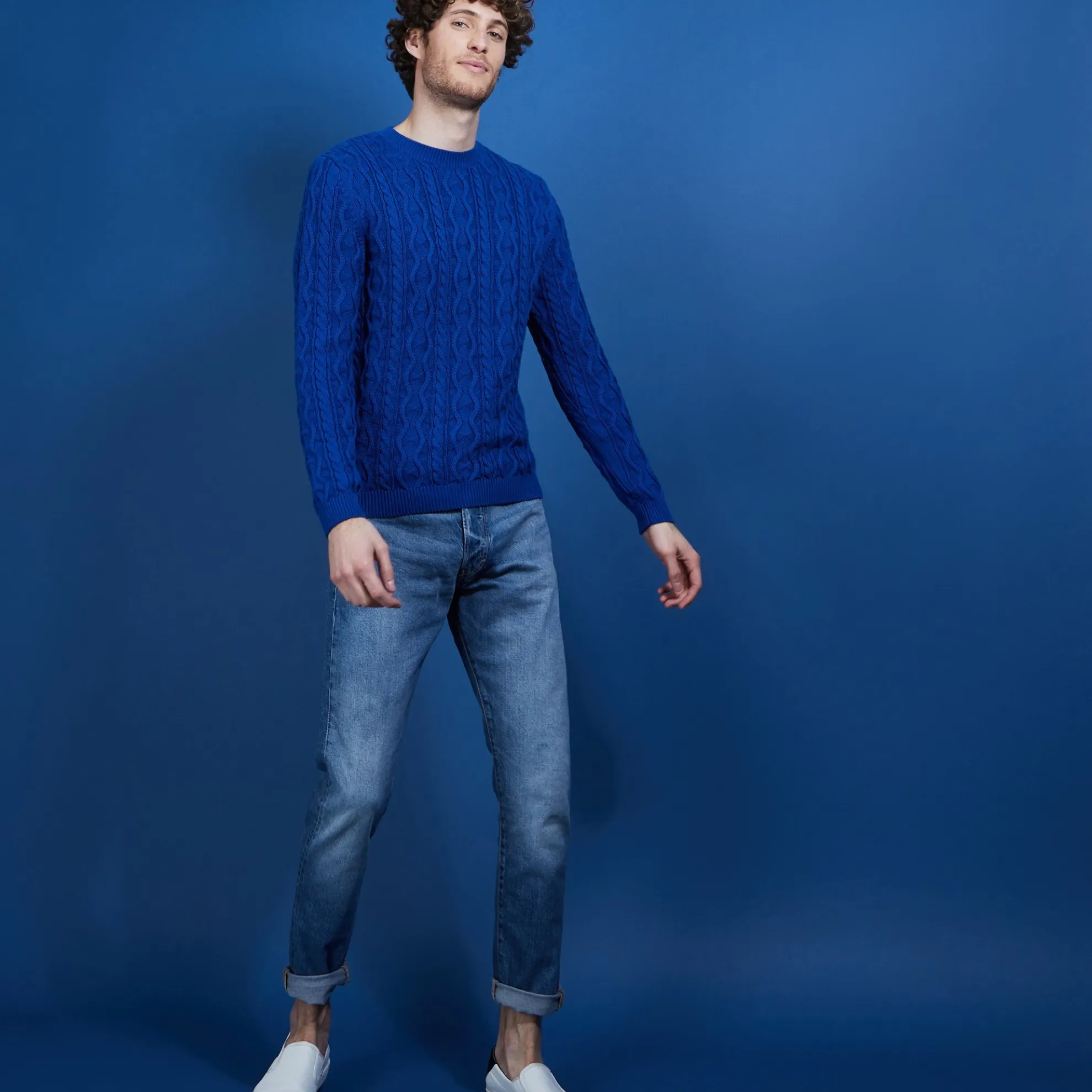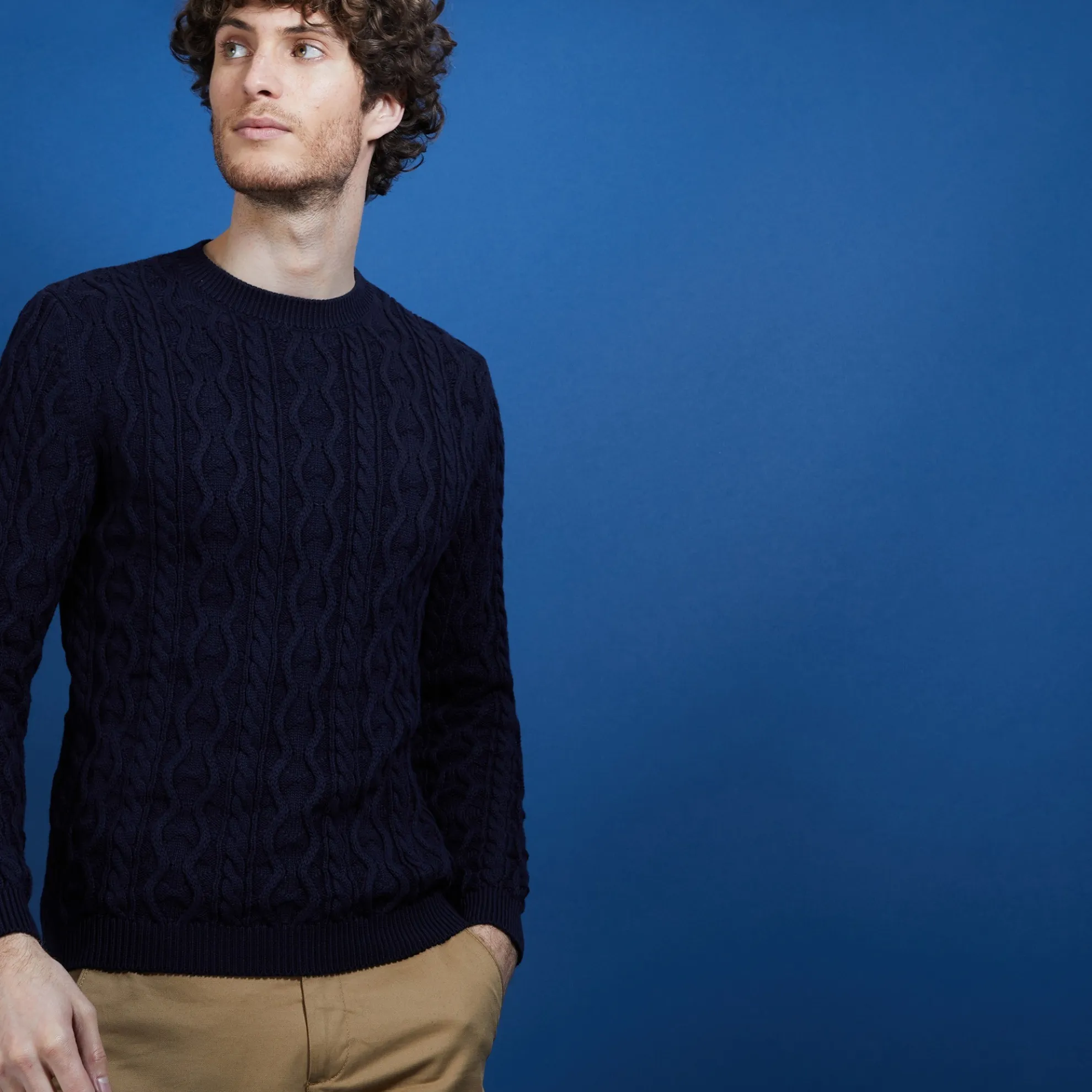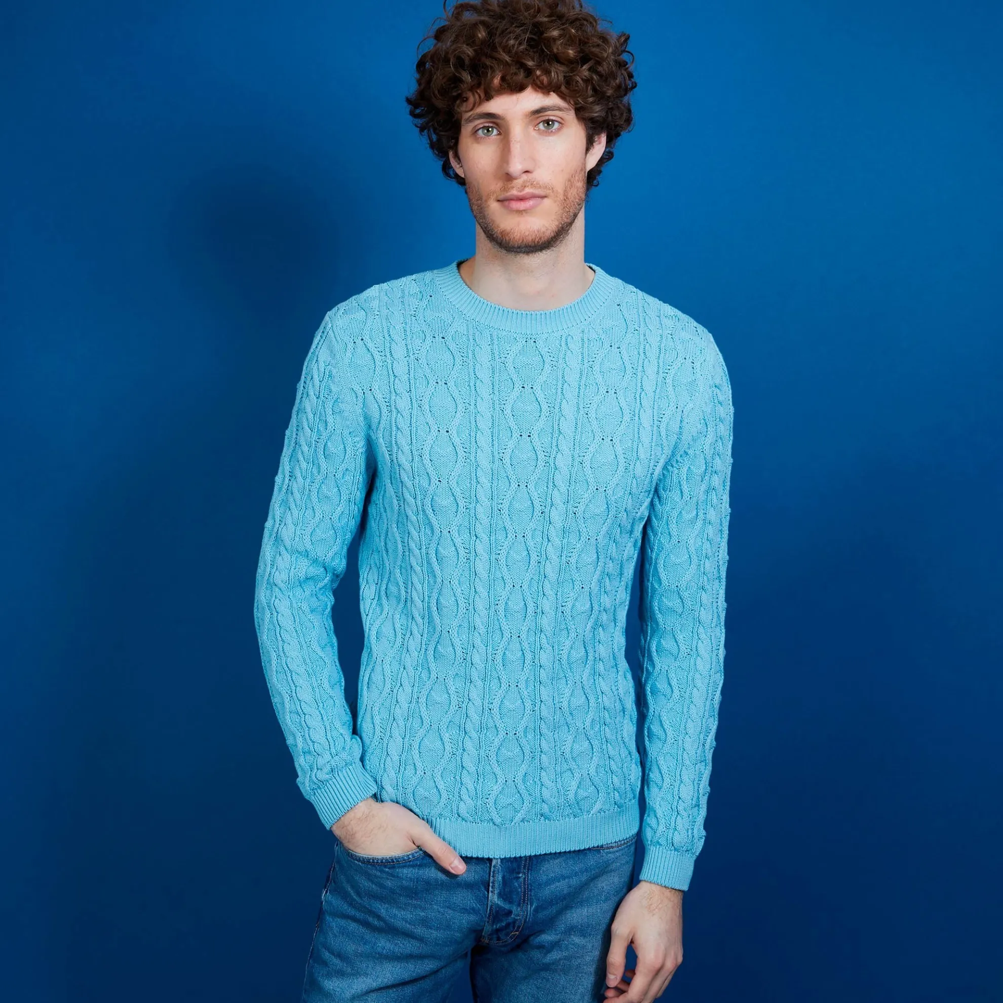 Pull Col Rond En 100% Coton Organique Pour Homme. Pull Tricote Dans Un Jeu De Point Fantaisie Et Torsade. Ce Pull Est Ideal Pour Les Fraiches Soirees D’Ete Ou Pour L’Inter-Saison, Il Peut Se Porter A Meme La Peau Ou Sur Un Debardeur Et Se Marie Aussi Bien Avec Un Pantalon D’Interieur Que D’Exterieur.