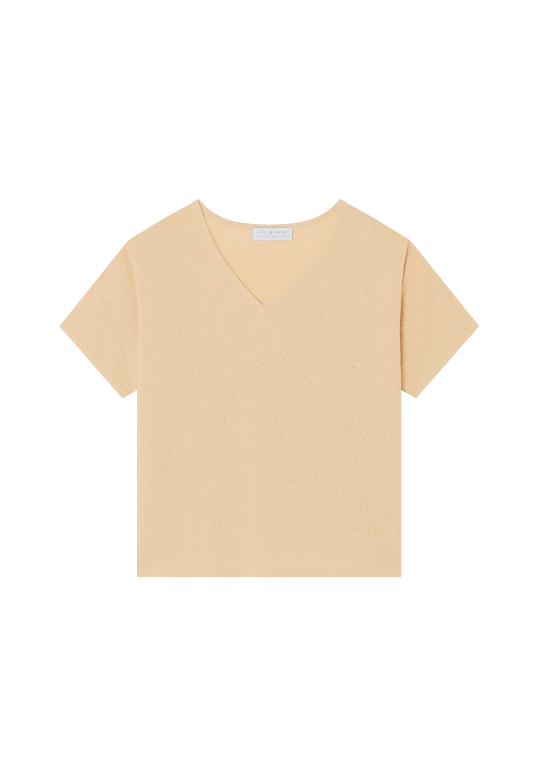 Ce T-Shirt En Coton Brosse Est Doux Et Confortable Tout En Etant Elegant Et Sophistique Grace A Son Col V. Sa Coupe Ample En Fait Un Choix Tendance Et Moderne Pour Une Tenue Decontractee. Fabrique En Europe Avec Des Materiaux De Qualite Superieure, Maden Est Ideal Pour Une Tenue Decontractee Ou Pour Une Soiree Chic.