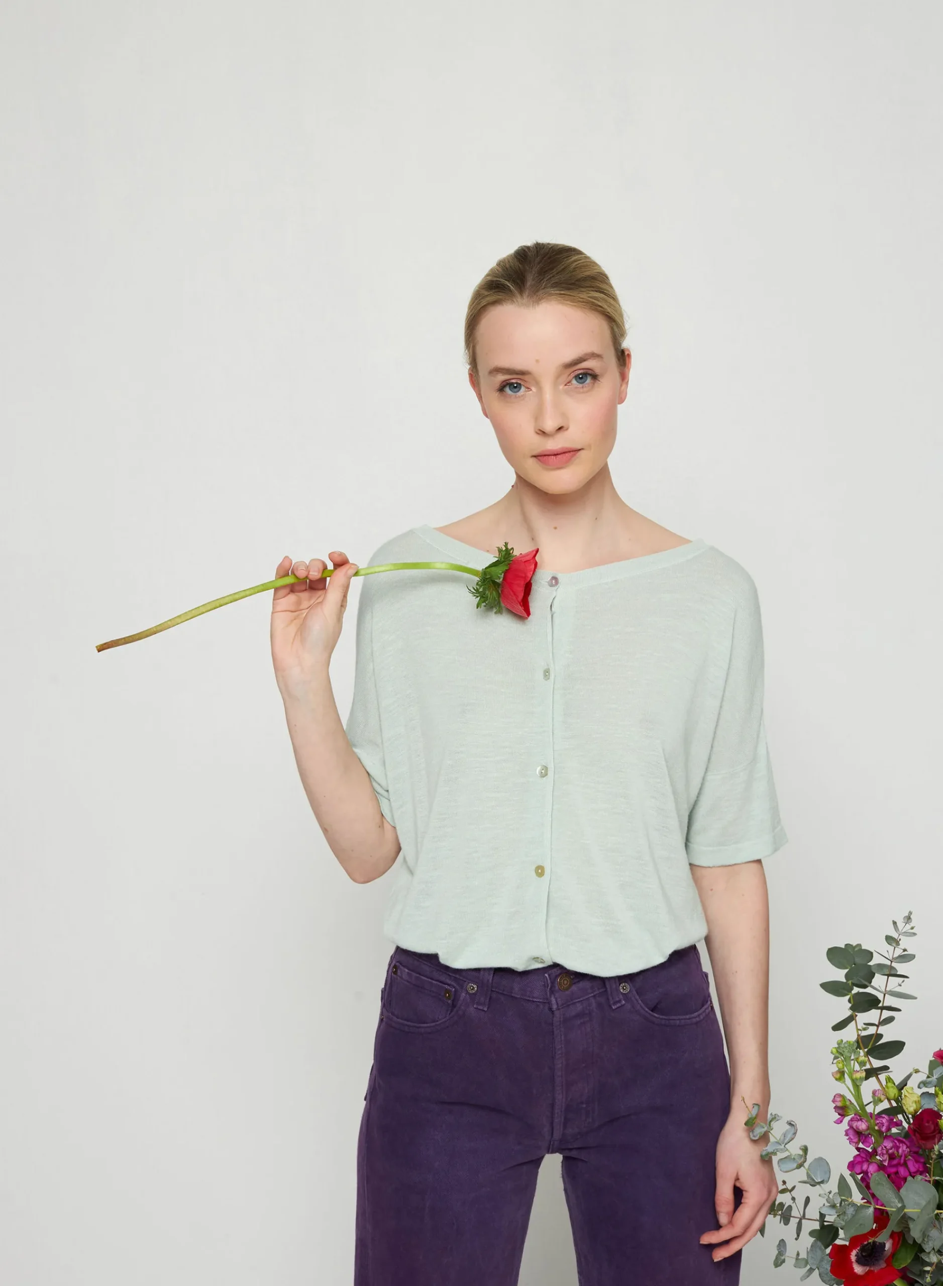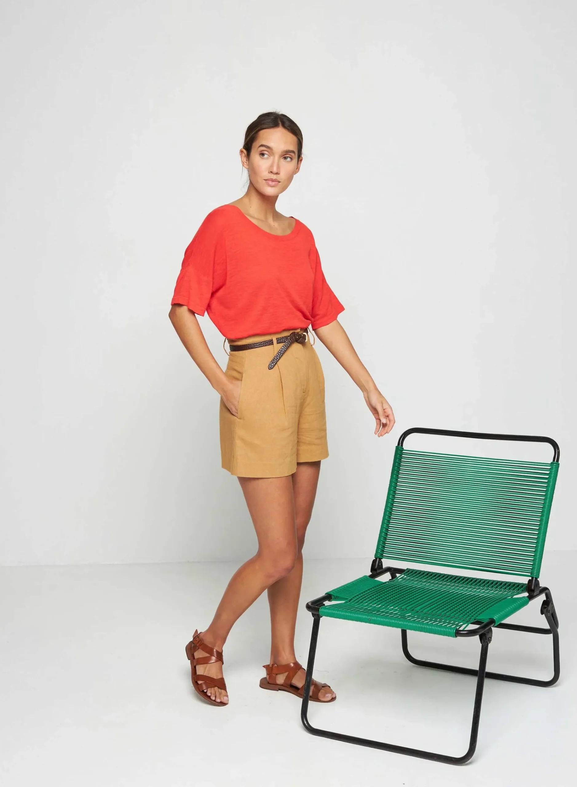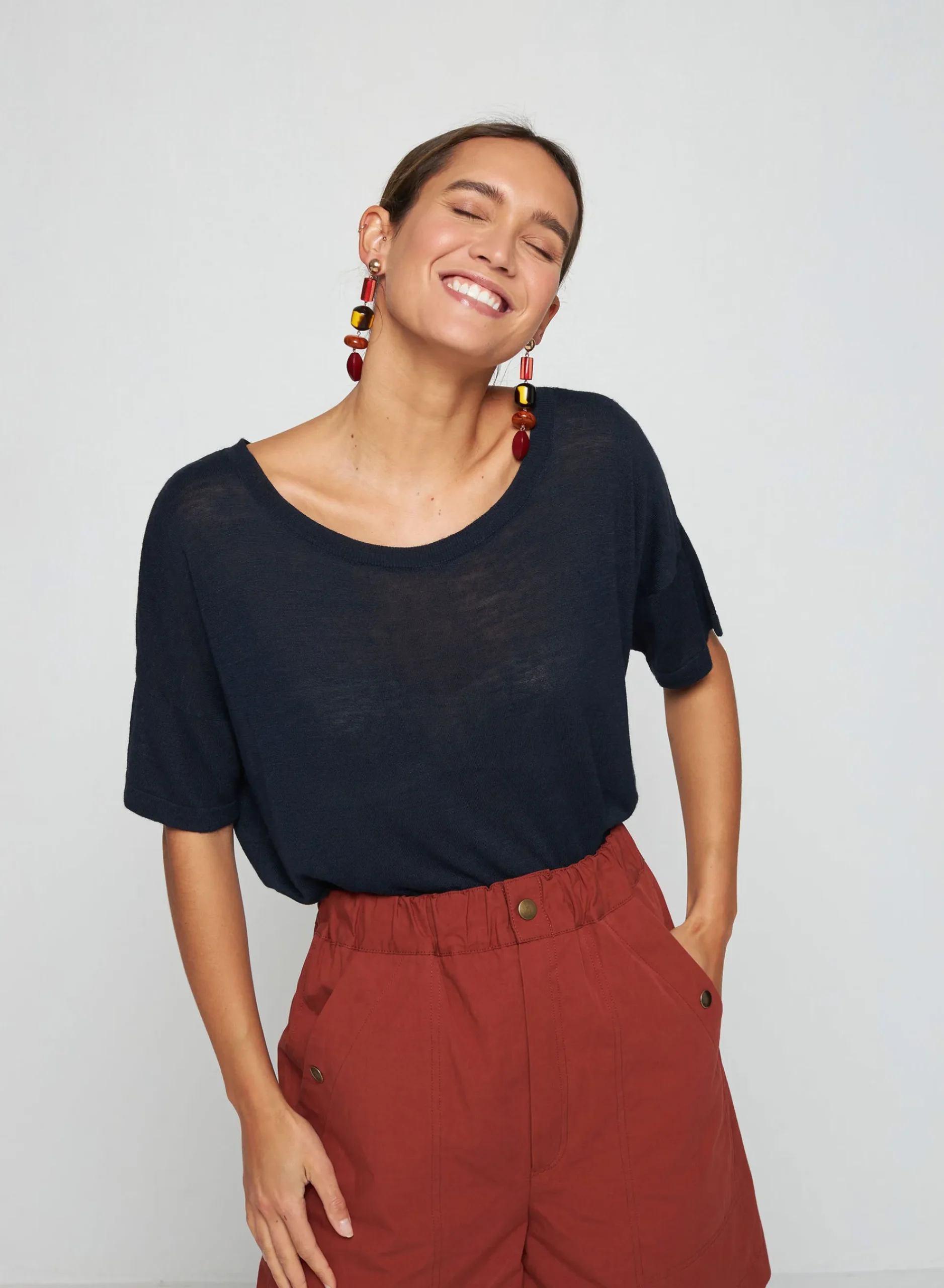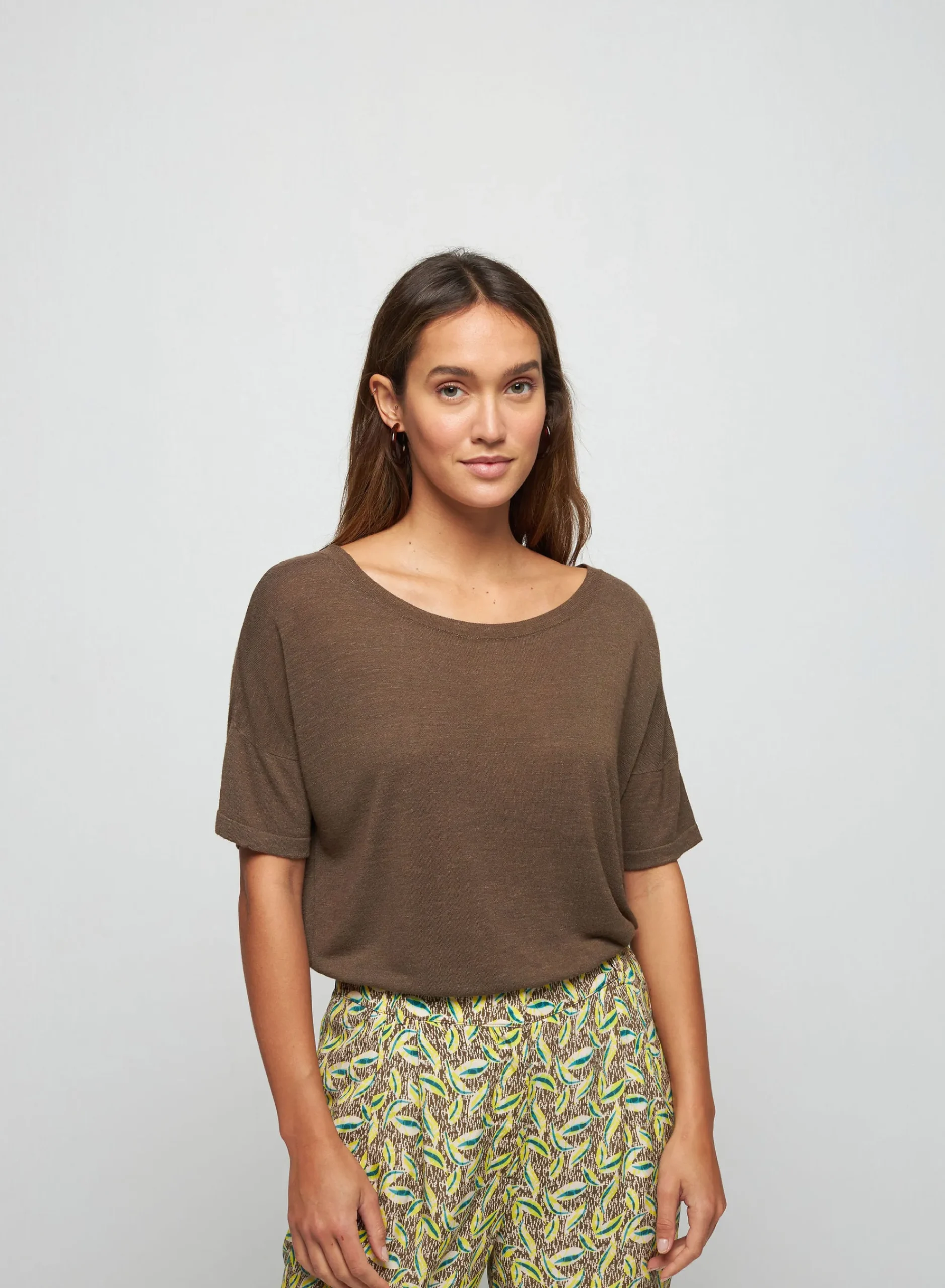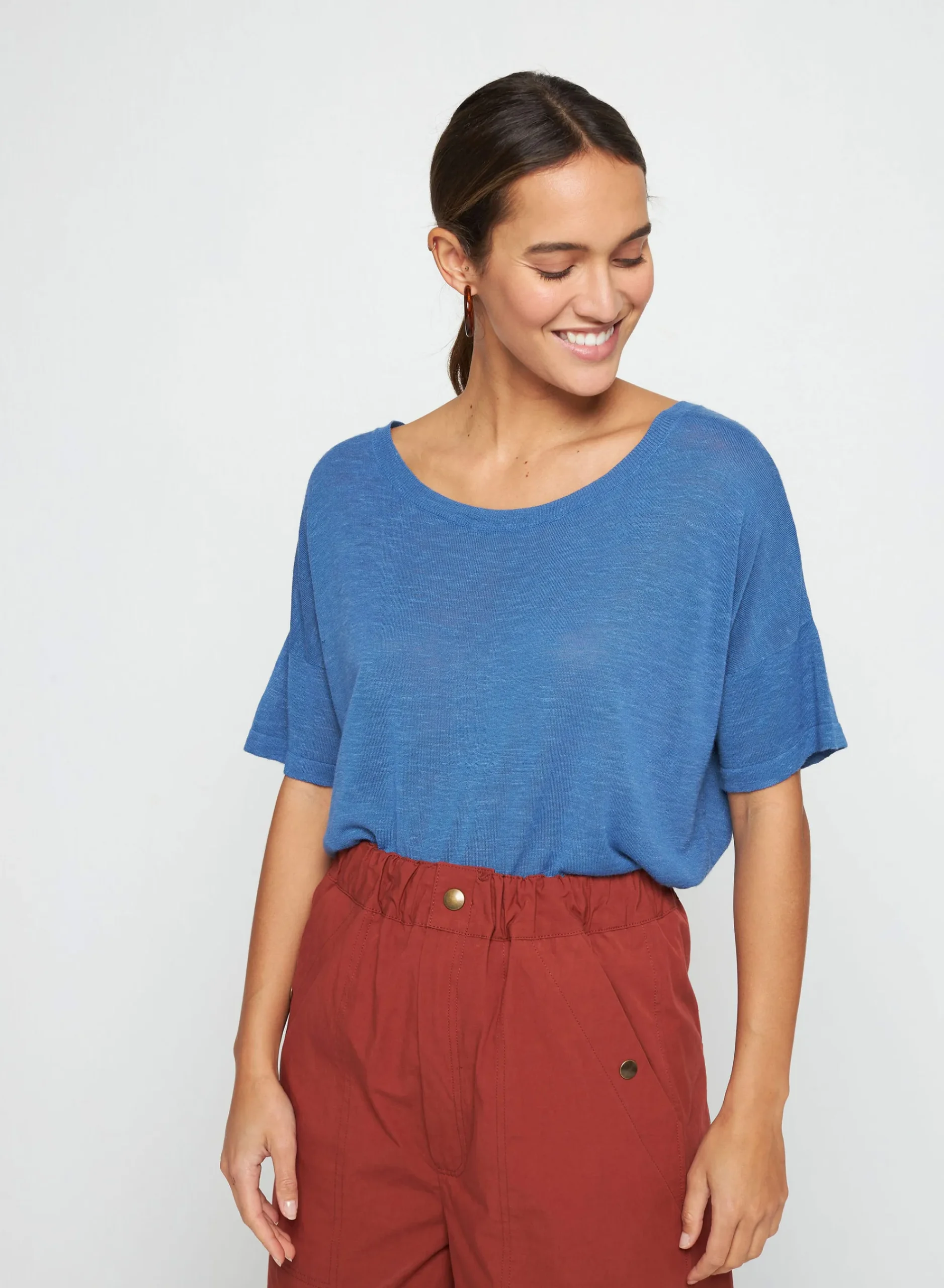 T-Shirt Ample A Encolure Ronde En Lin Flamme Tricote Dans Nos Ateliers. Ideal A Porter Lors De Periodes De Fortes Chaleurs, Notre Modele Tally Vous Apportera Confort Et Fluidite Extreme. Vous Vous Sentirez A L’Aise Dans Sa Coupe Carre, Ample Et Son Emmanchure Basse. Notre Modele Possede Des Boutons Dans Le Dos. Dans Une Coupe Identique Et Sans Boutons Dans Le Dos, Decouvrez Notre Modele : Taslim