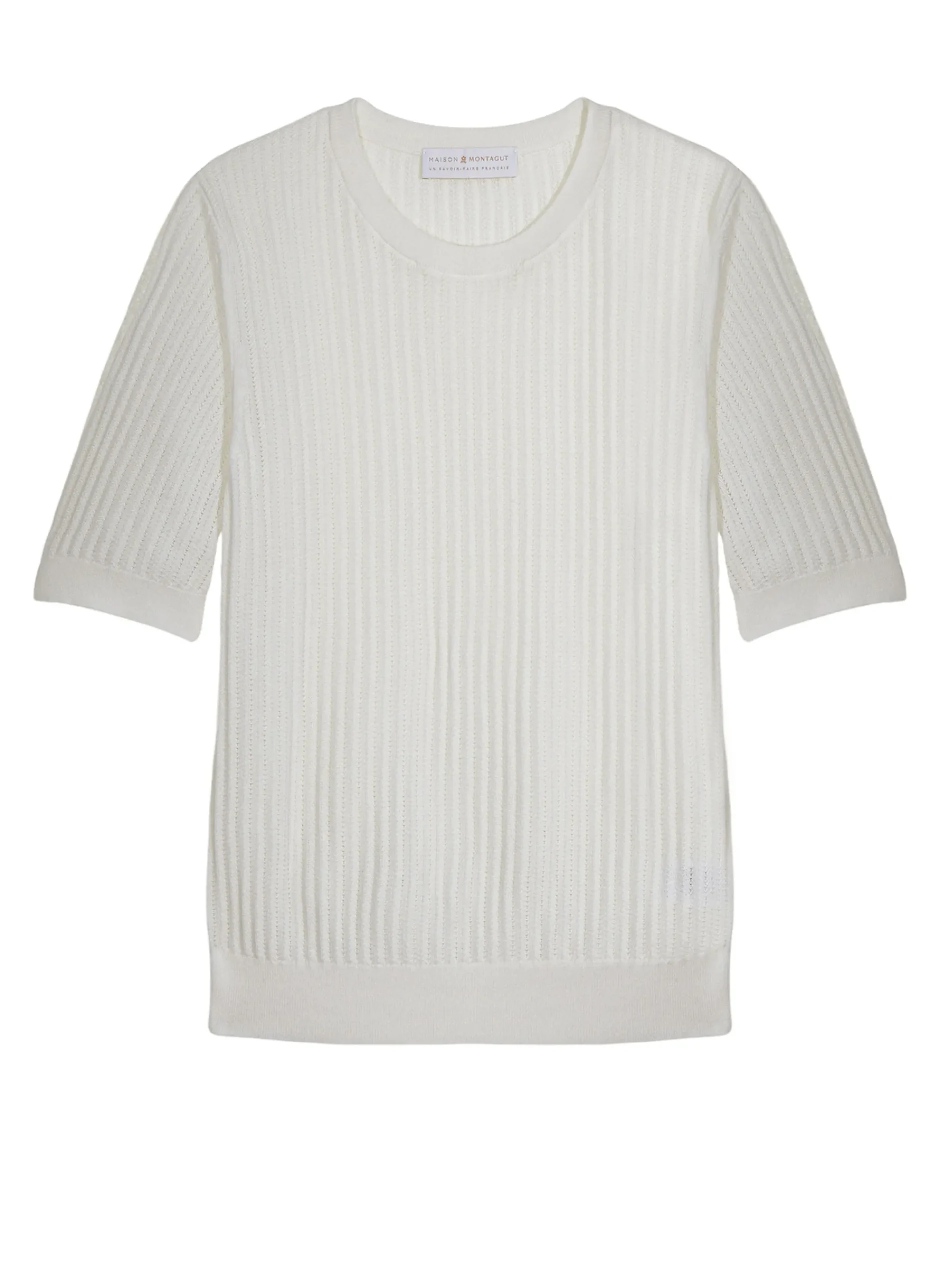 T-Shirt A Encolure Ronde En Coton Bio Tricote Dans Nos Ateliers. Accompagnez-Vous De Notre Modele Sidonie Pour Vous Offrir Douceur Et Confort Lors De Vos Journees. Notre Modele Se Distingue Par Son Jeu De Maille En Point Jersey Pour Une Pointe D’Elegance.