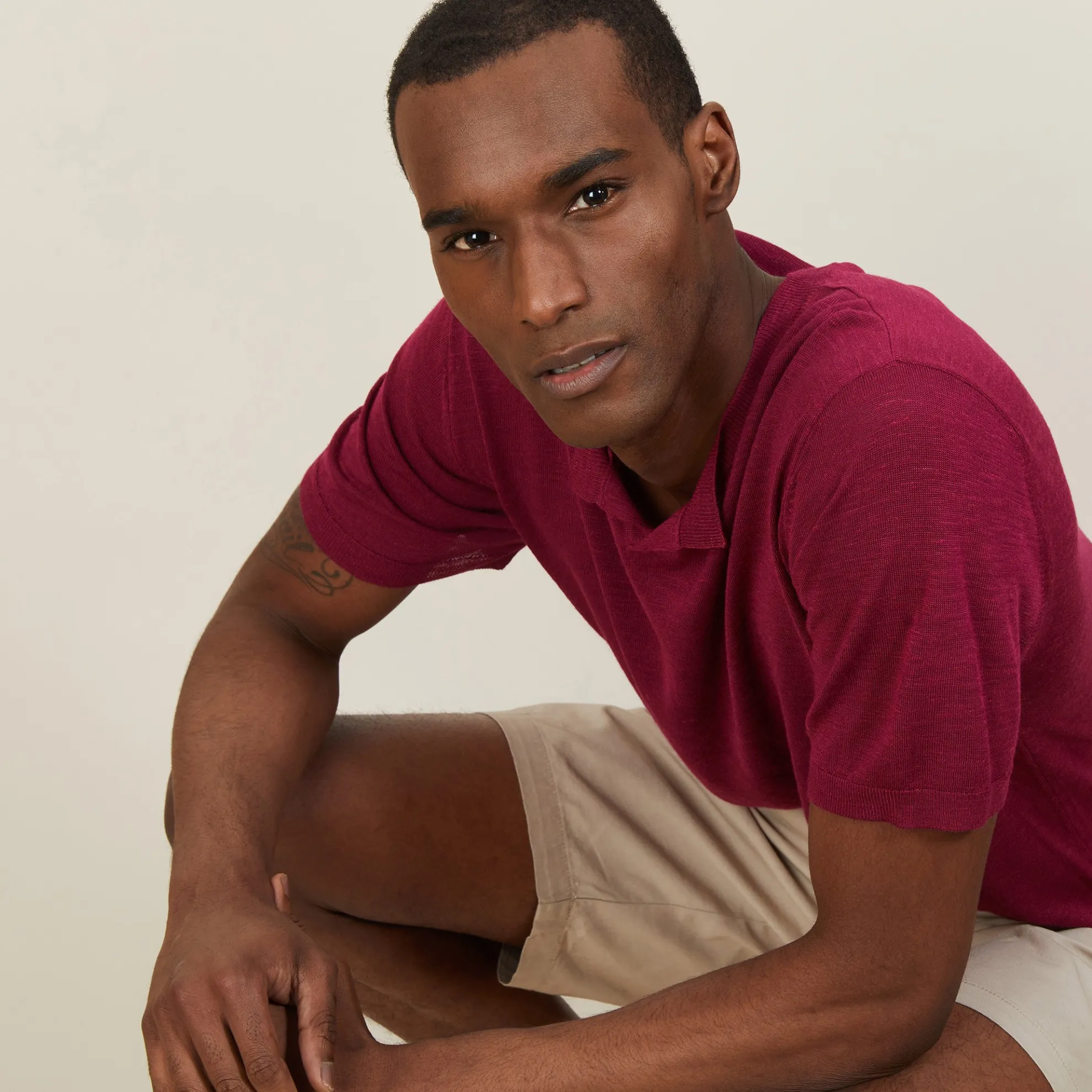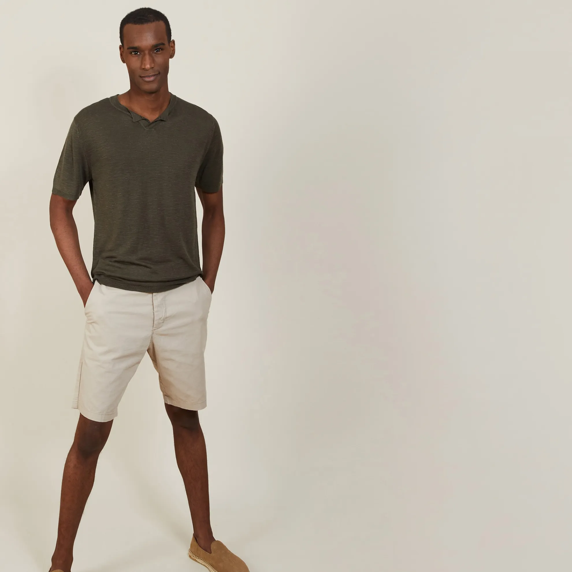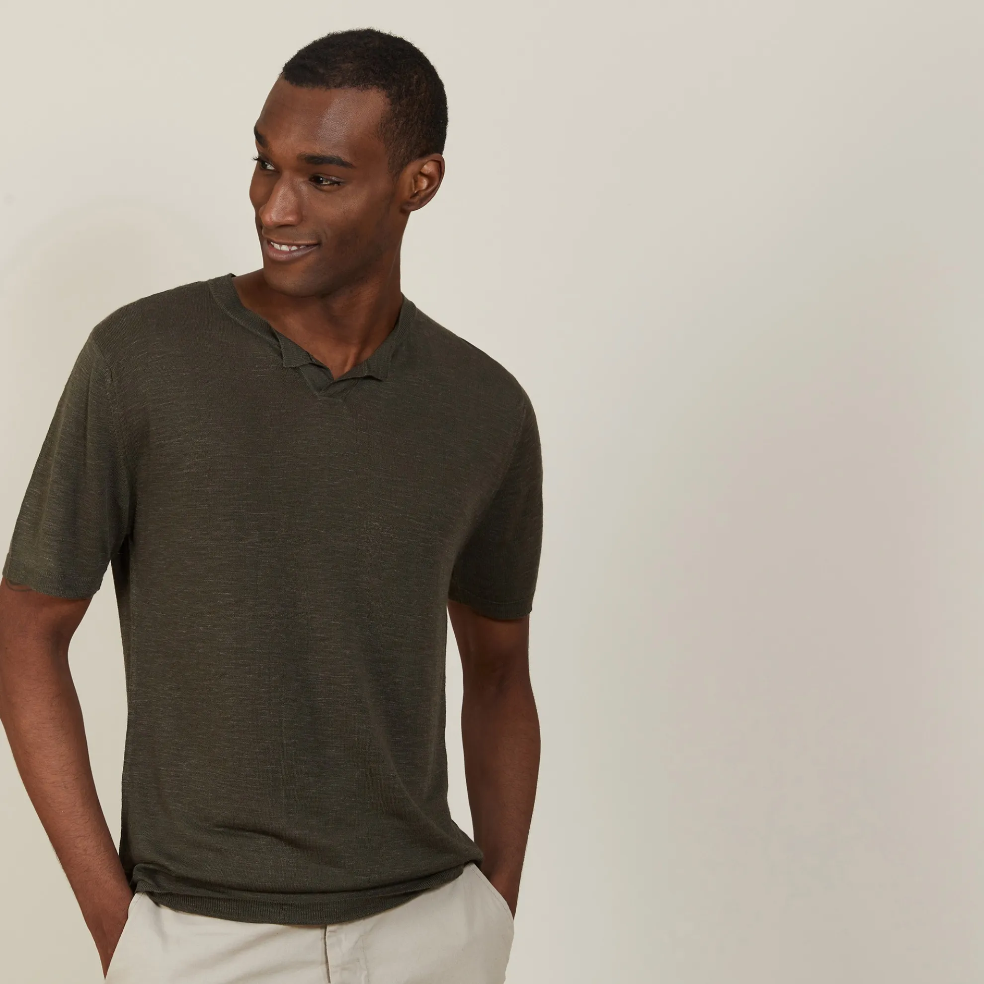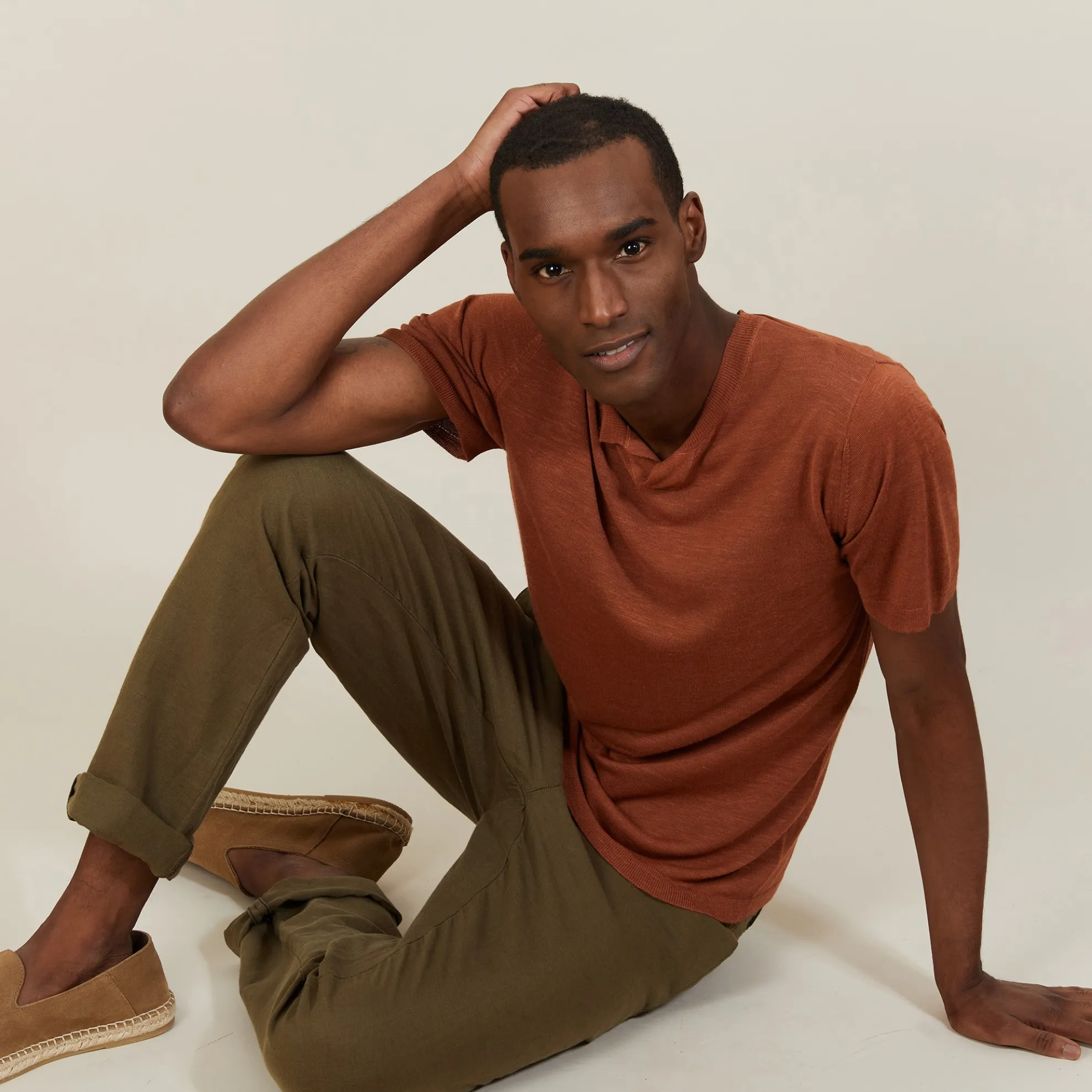 T-Shirt Uni Col Tunisien En Lin Flamme Tricote En Point Jersey Dans Nos Ateliers.