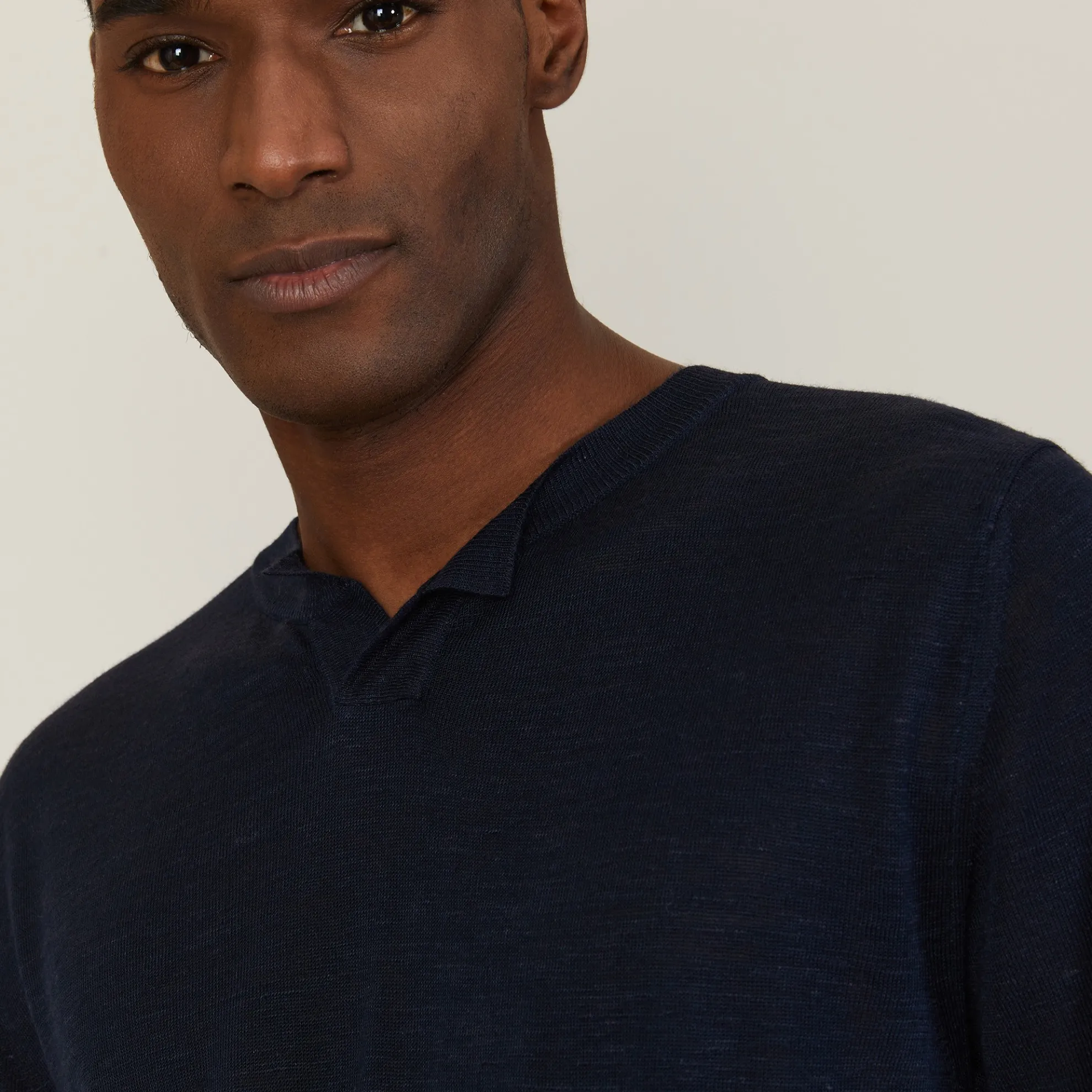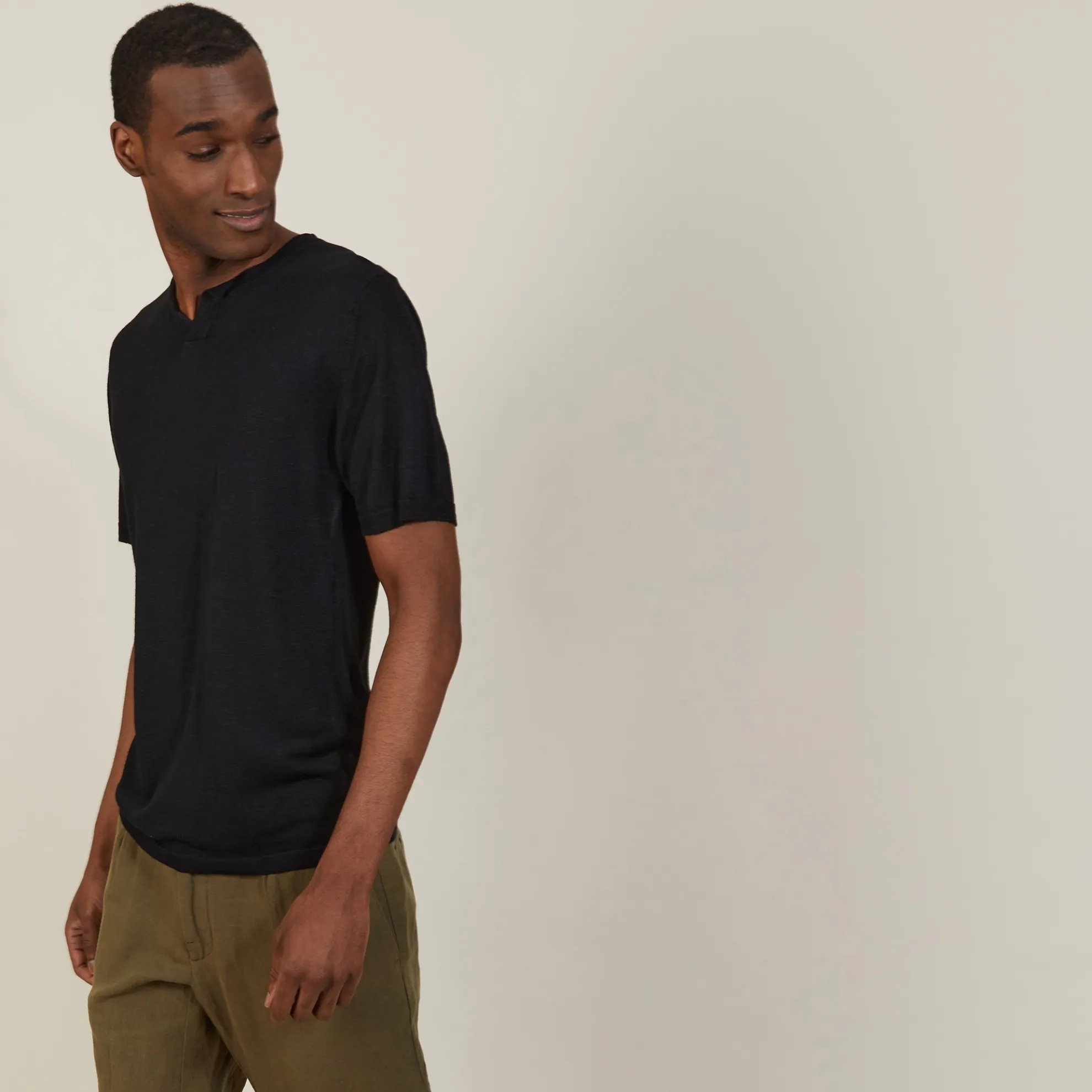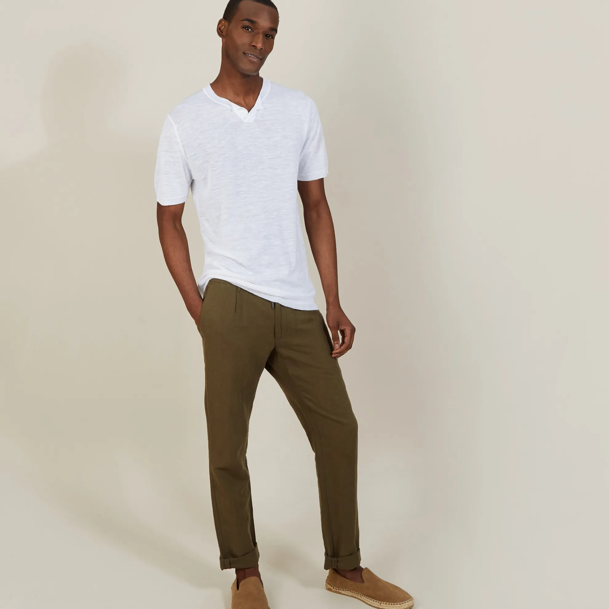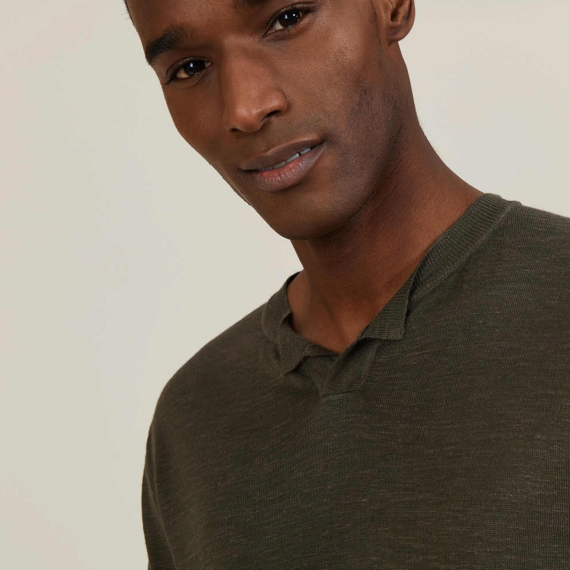 T-Shirt Uni Col Tunisien En Lin Flamme Tricote En Point Jersey Dans Nos Ateliers.