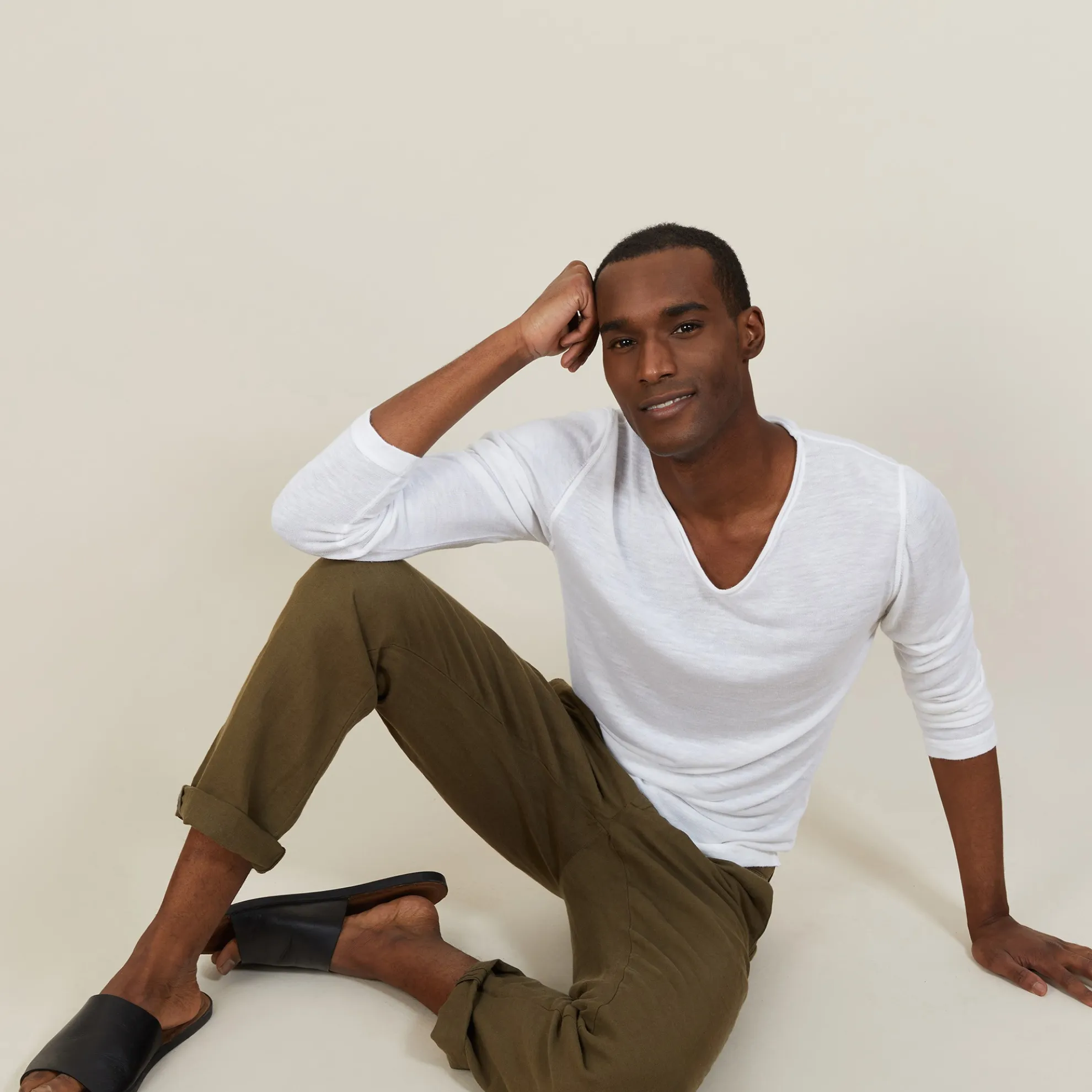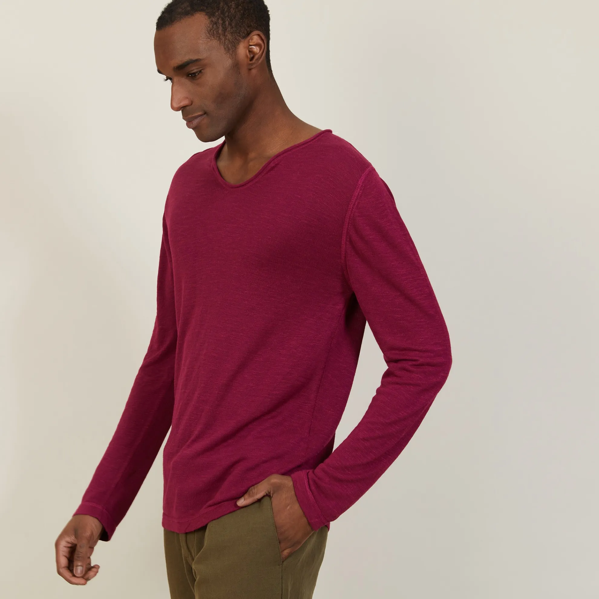 T-Shirt En Lin Flamme Tricote En Point Jersey Dans Nos Ateliers. Coupe Droite, Col Tunisien. Matiere Legere, Ideale A Porter En Periode De Forte Chaleur.