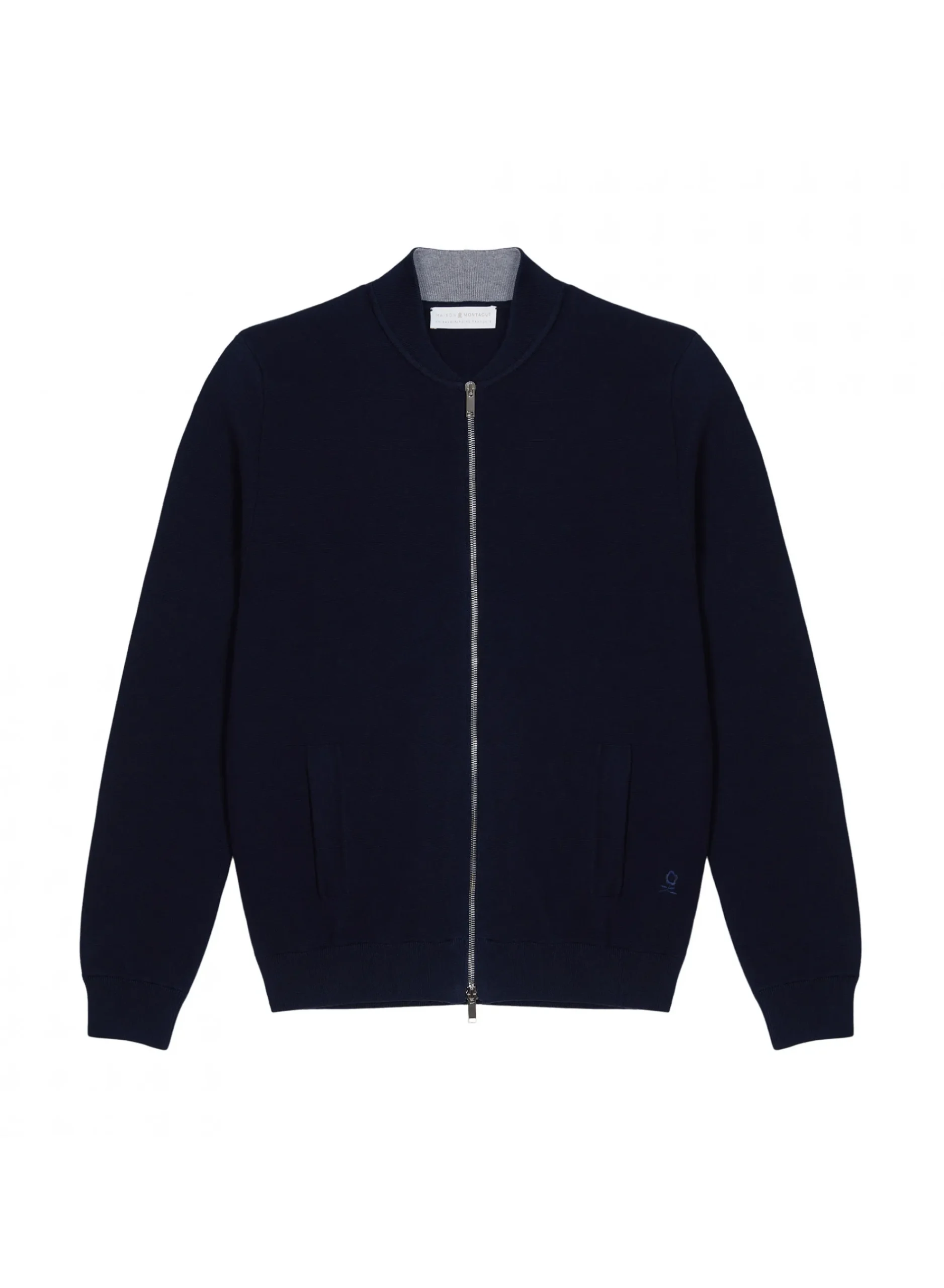 Veste A Fermeture En Zip Tricotee En Coton Bio. La Veste Est Composee De Deux Poches De Chaque Cotes. Le Logo Est Brode En Ton Sur Ton En Bas De Modele. Une Veste Indemodable Et Agreable A Porter Pendant L’Inter Saison Ou En Soiree D’Ete.