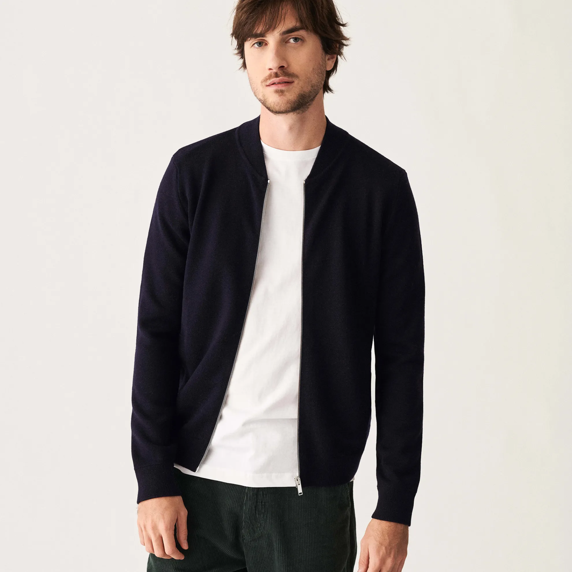 Veste A Fermeture En Zip Tricotee En Laine Merinos Grosse Maille. La Veste Est Composee De Deux Poches De Chaque Cotes.