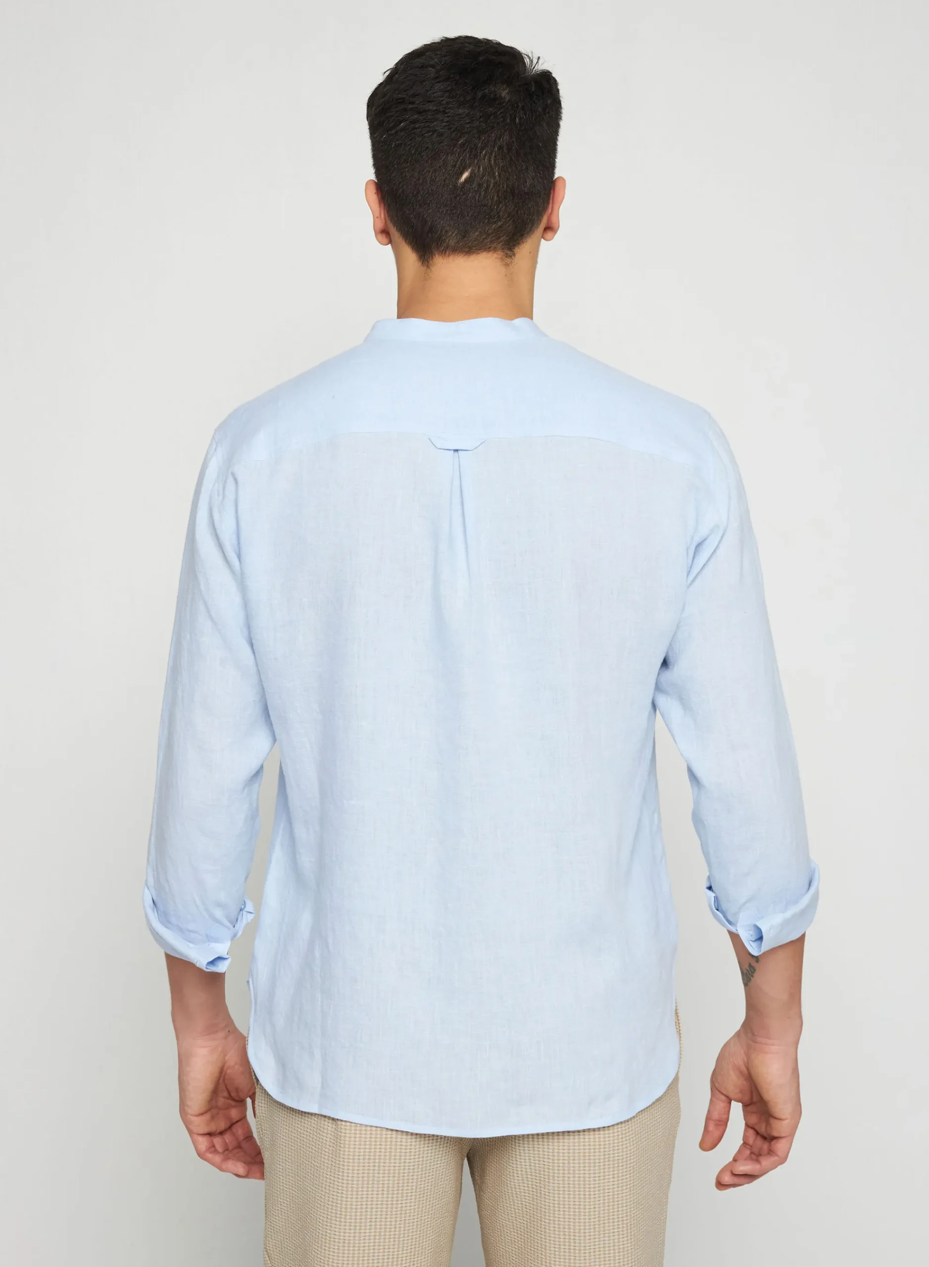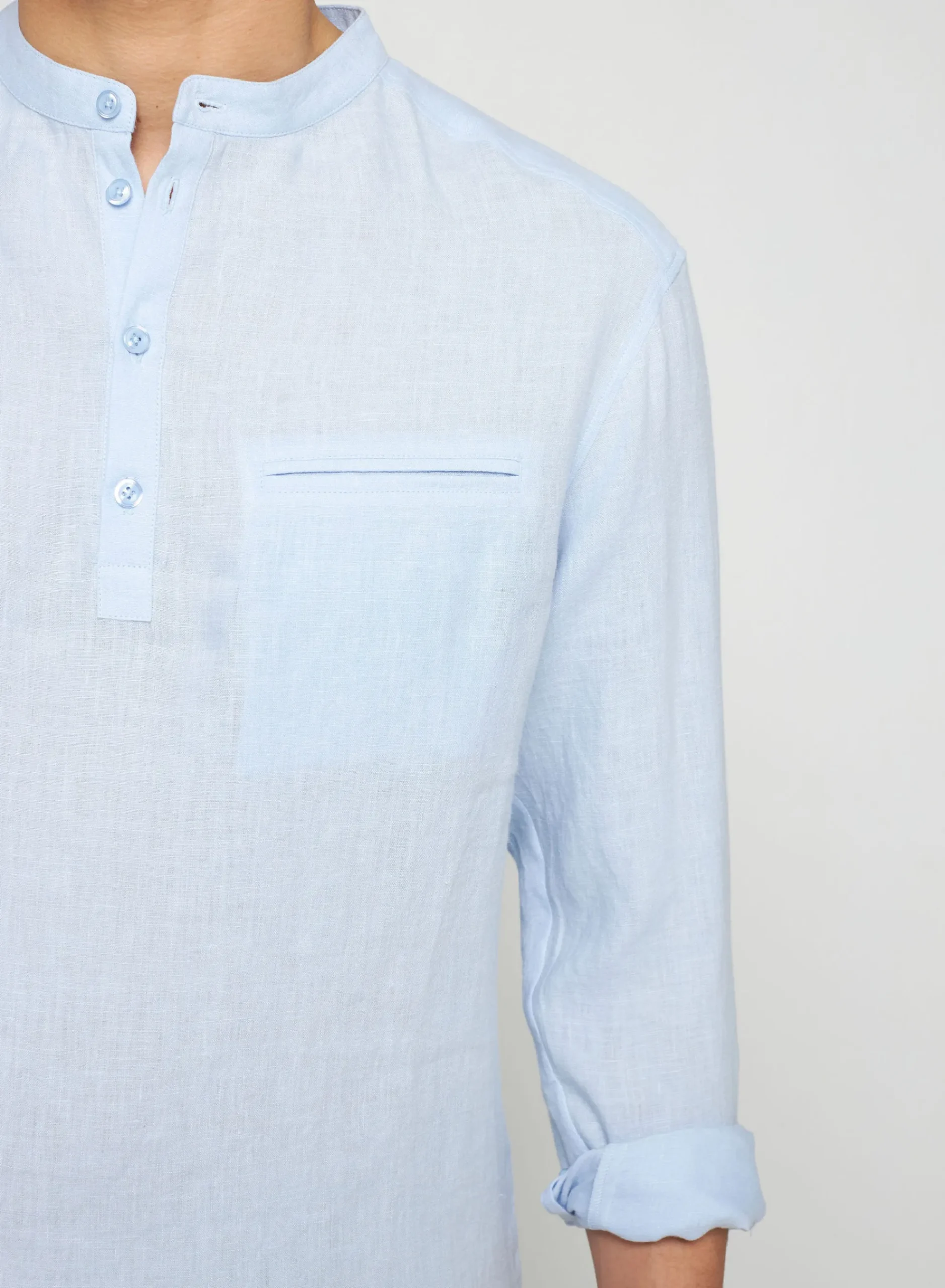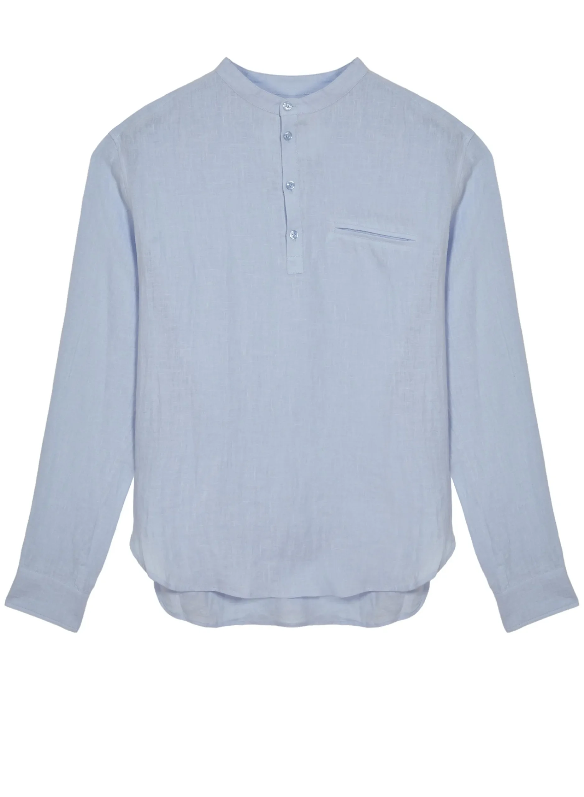 Chemisier A Encolure Tunisienne Tricote En Lin. La Texture Douce De Ce Chemisier Sera Votre Meilleur Compagnon Durant Cette Saison Chaude. L’Encolure De Notre Modele Ainsi Que Ses Bas De Manches Sont Reglables Par Des Boutons. Une Petite Poche Est Presente A L’Avant Du Modele Et Des Petites Fentes De Chaque Cote Le Modernise.