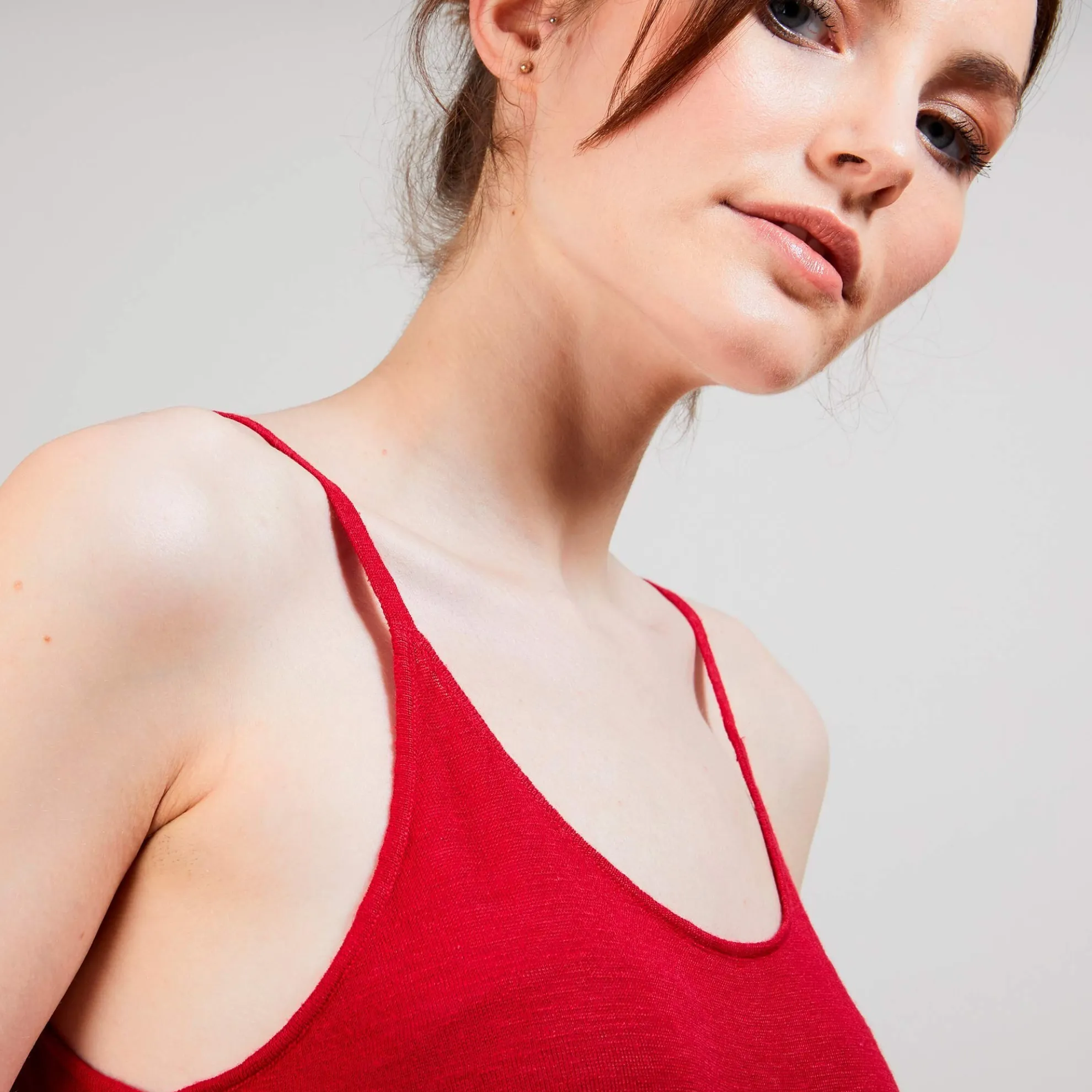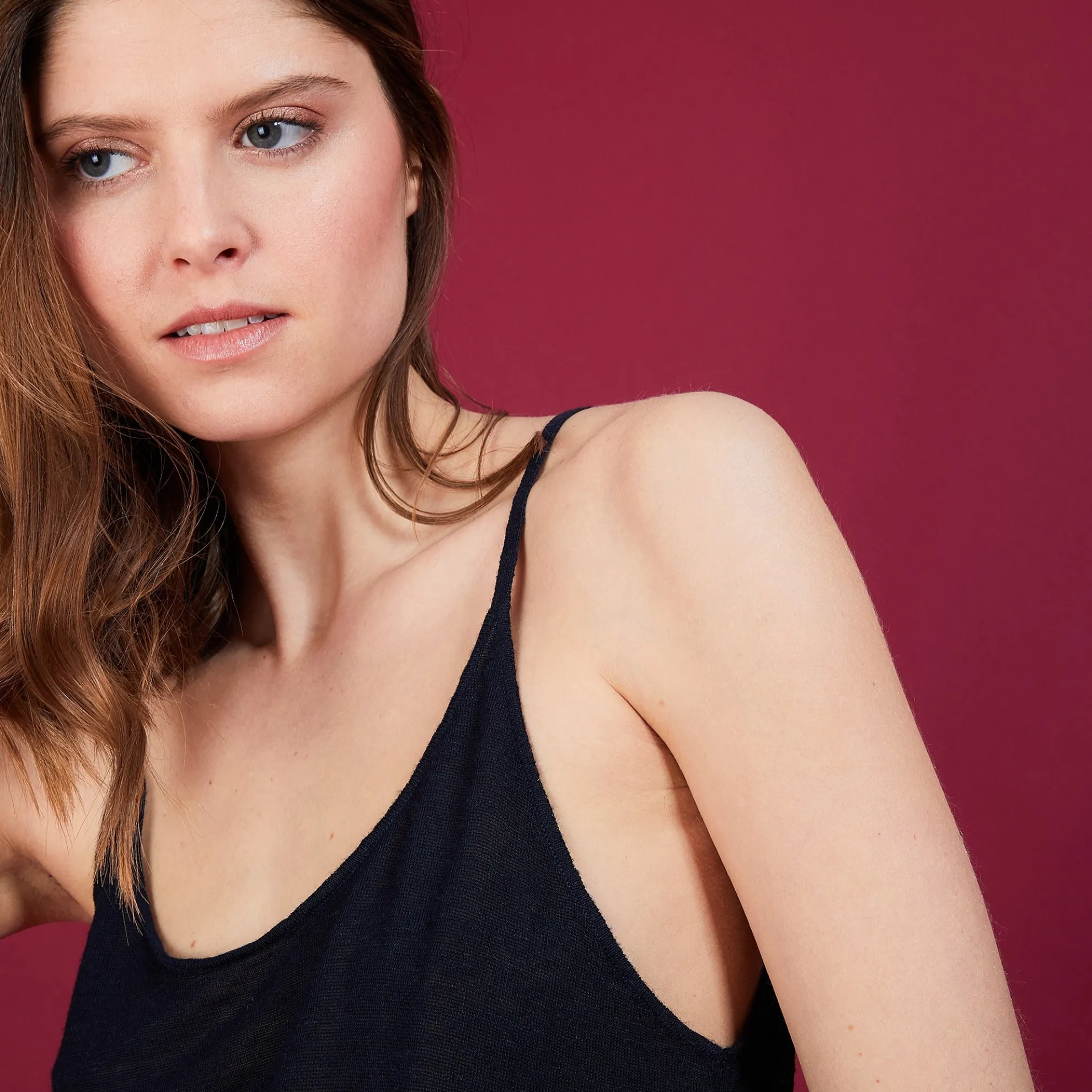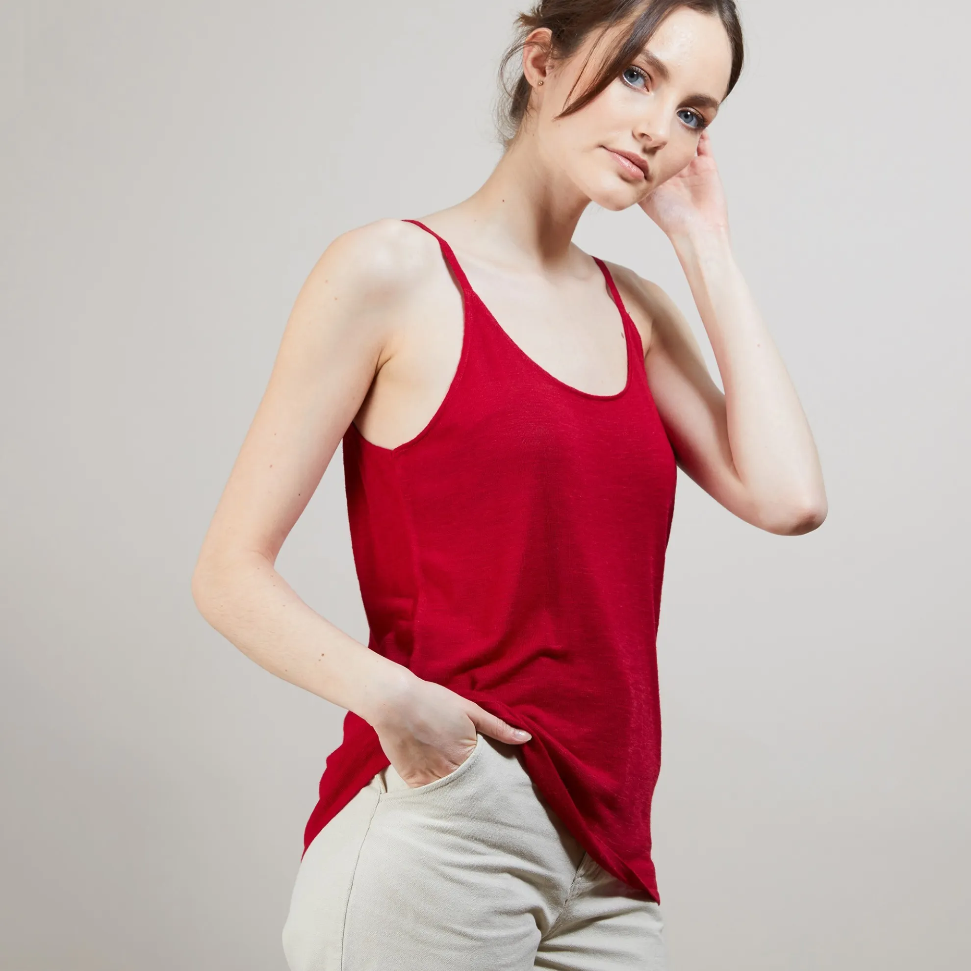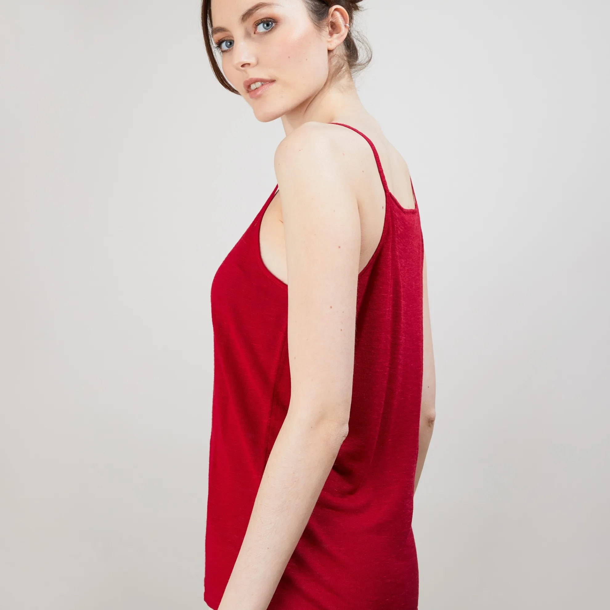 Debardeur En Lin Flamme. Son Melange De Matiere Rend La Piece Tres Legere Et Agreable A Porter Avec Ses Bretelles Fines Lors Des Fortes Chaleurs Estivales. Vous Pouvez Aussi Le Porter En Tant Que Sous Pull Pour Les Autres Saisons.