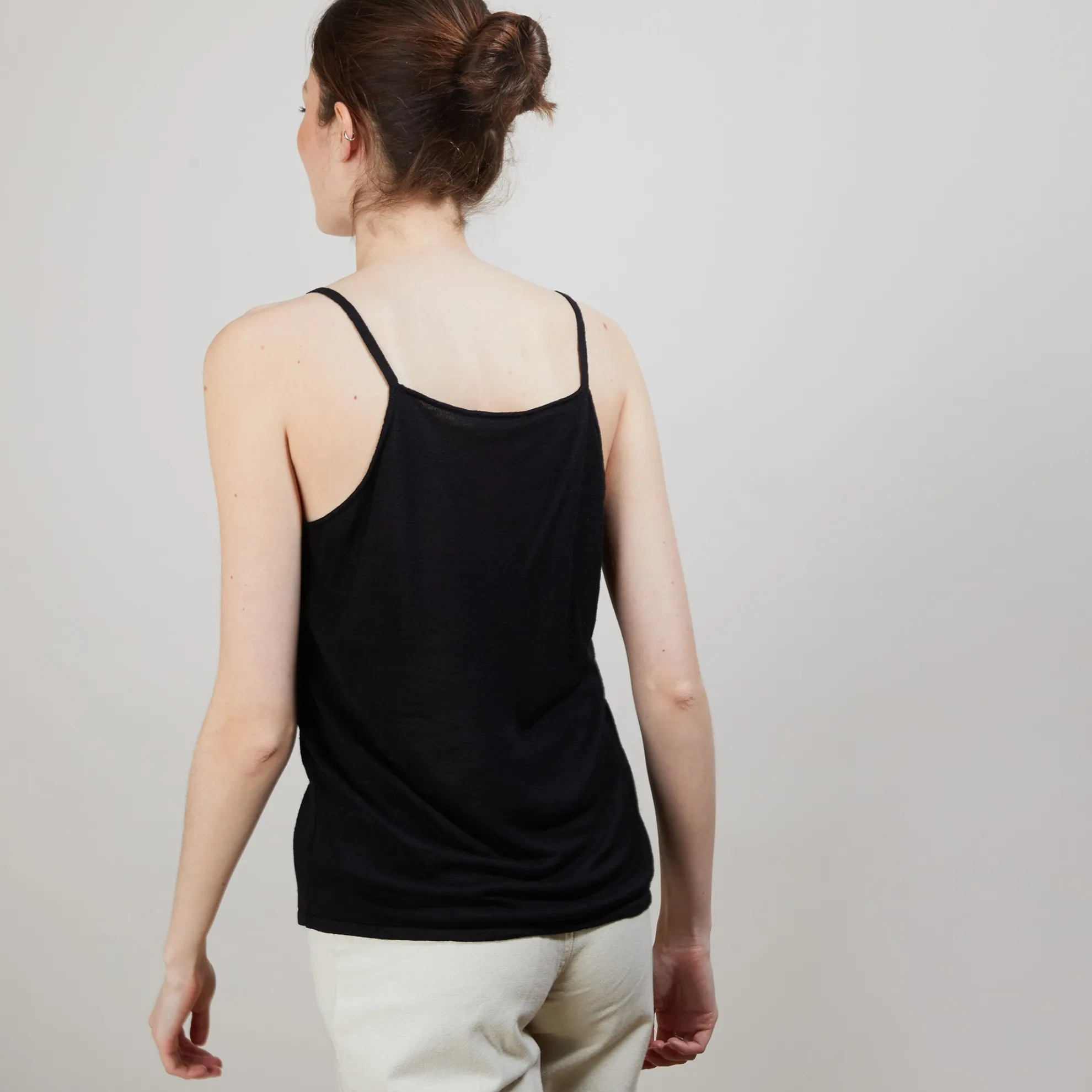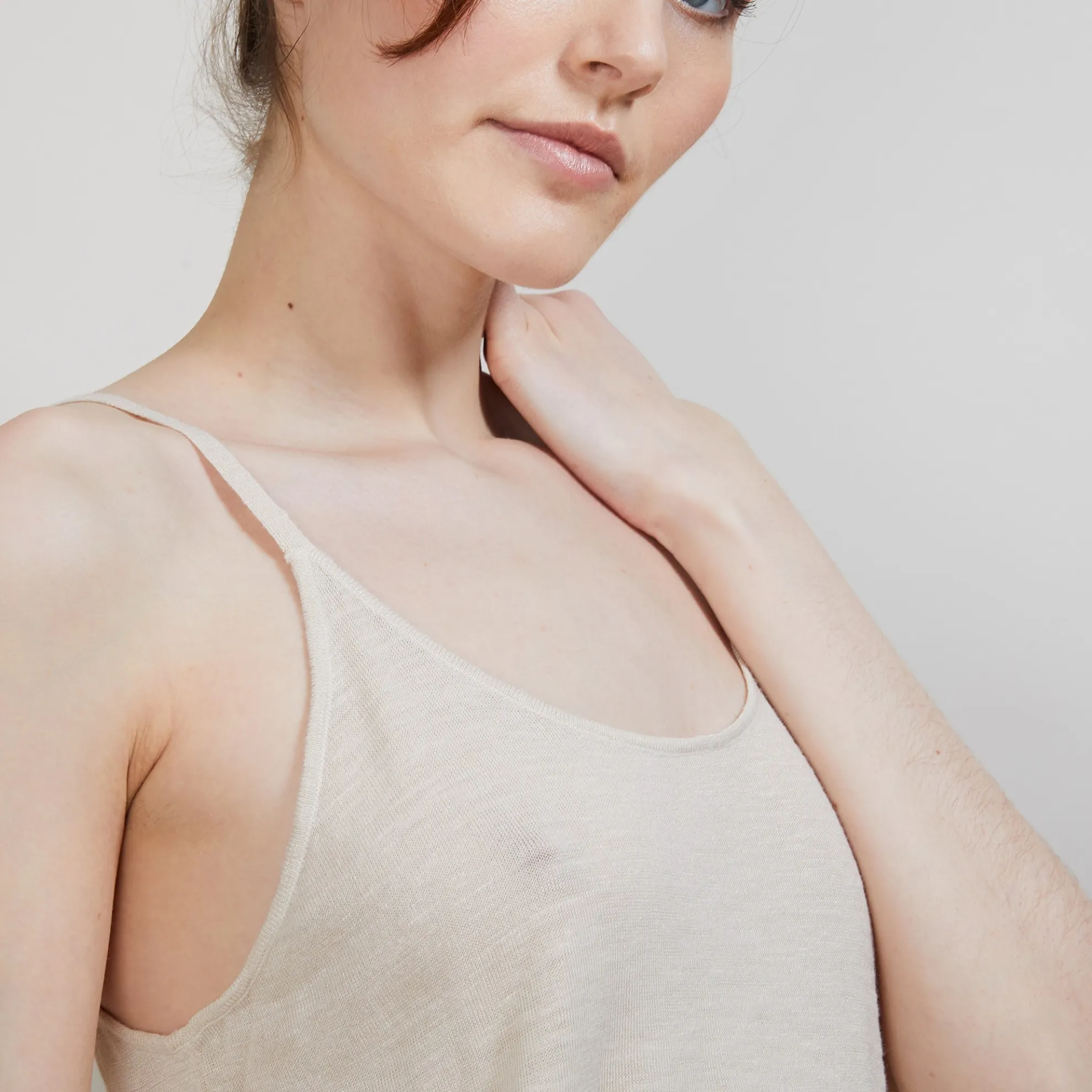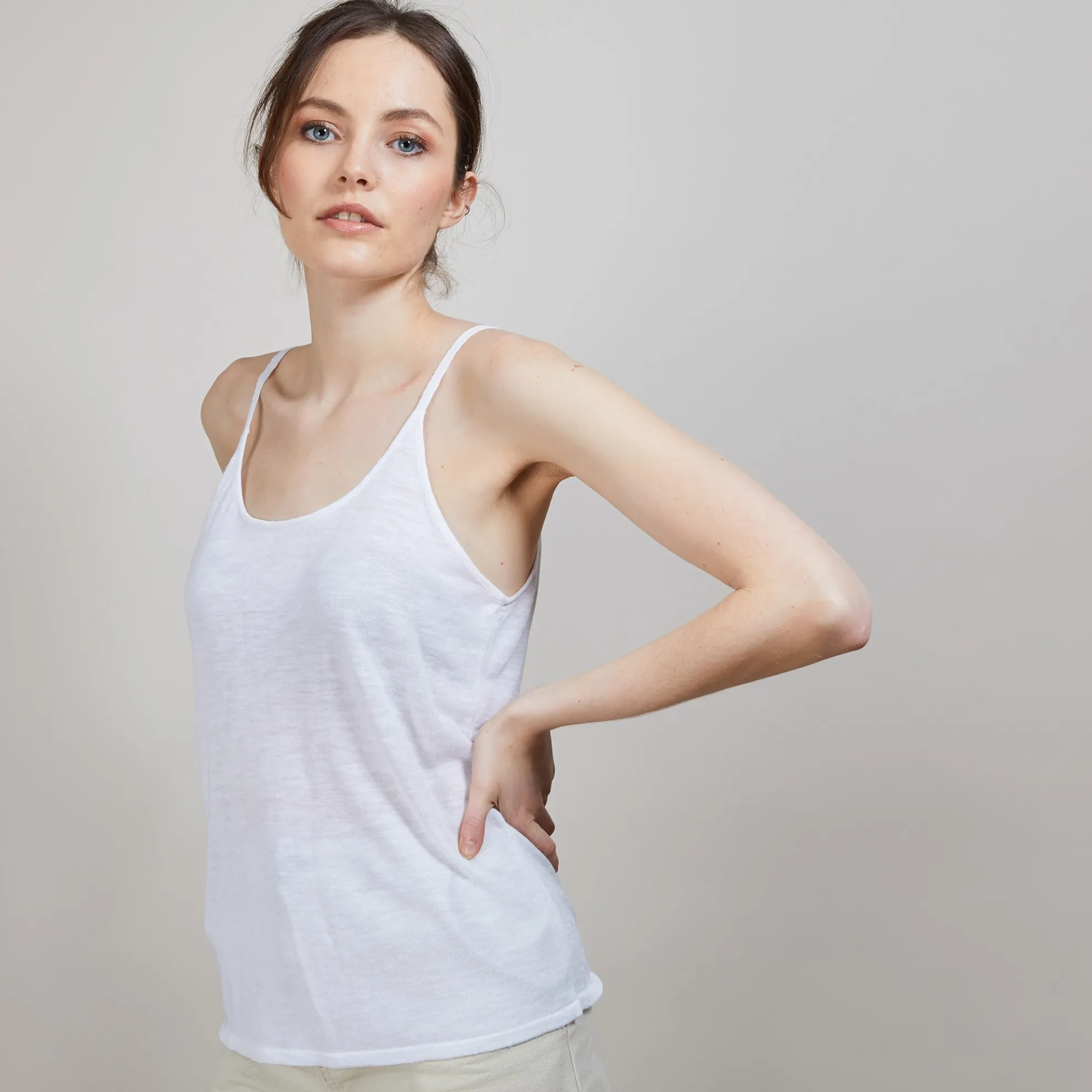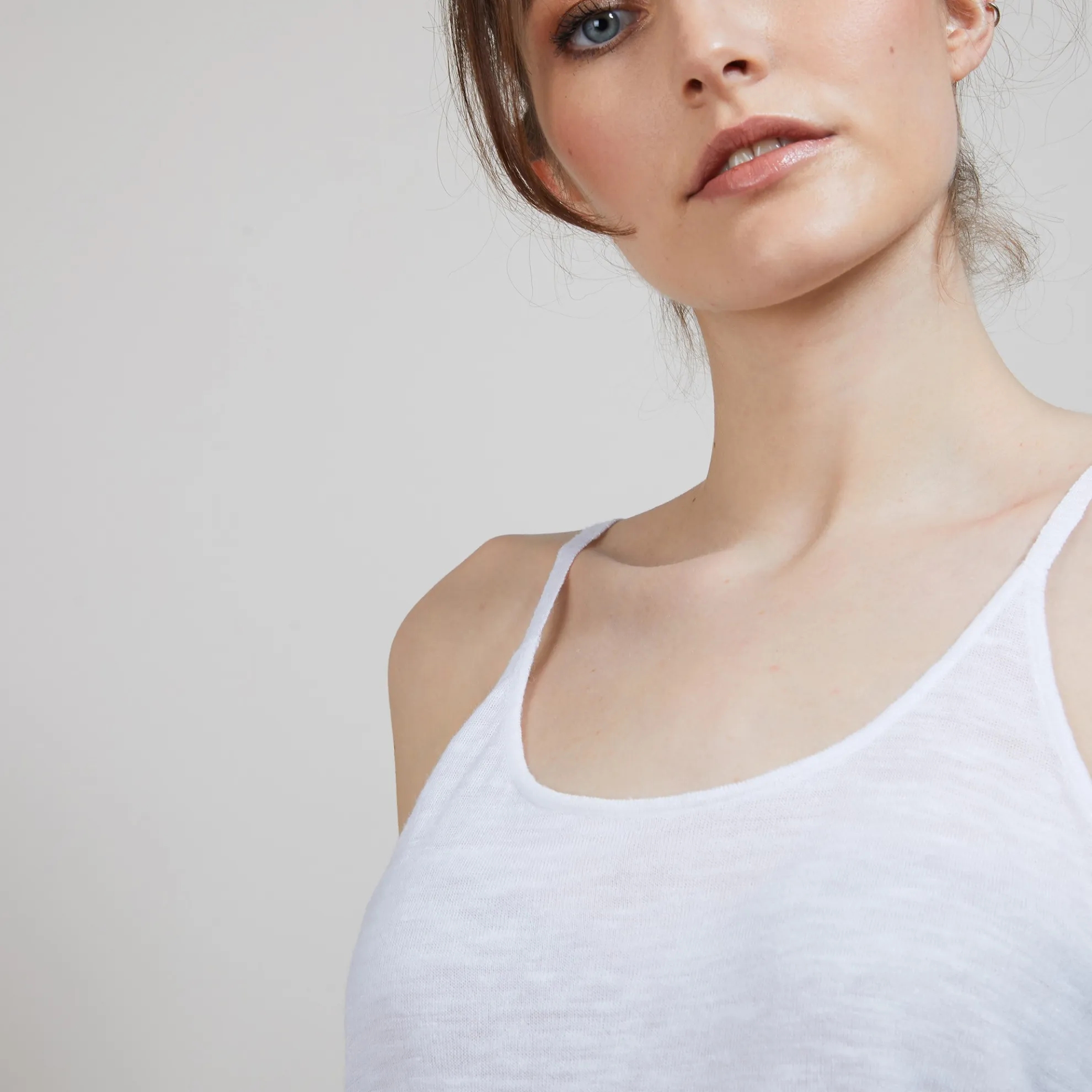 Debardeur En Lin Flamme. Son Melange De Matiere Rend La Piece Tres Legere Et Agreable A Porter Avec Ses Bretelles Fines Lors Des Fortes Chaleurs Estivales. Vous Pouvez Aussi Le Porter En Tant Que Sous Pull Pour Les Autres Saisons.