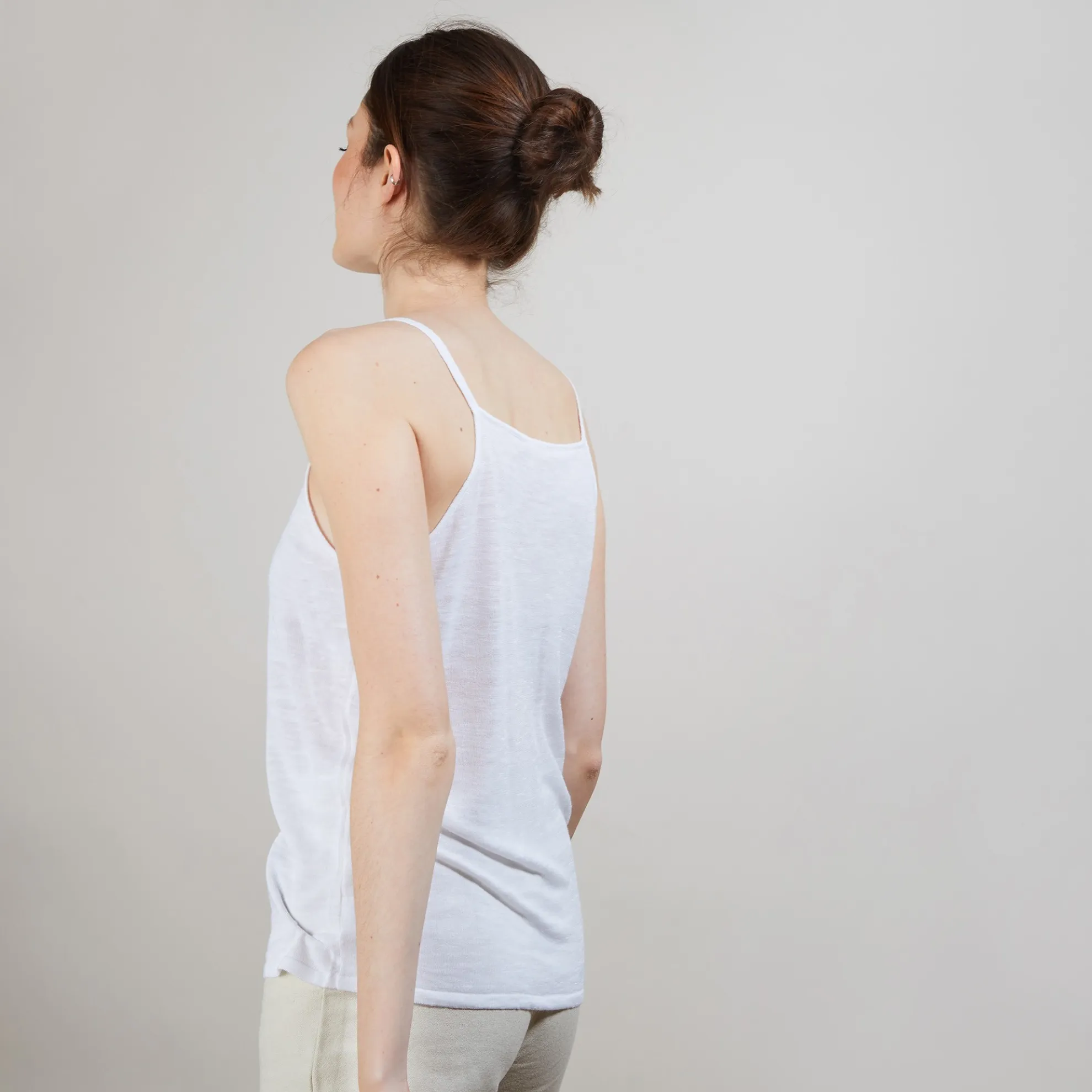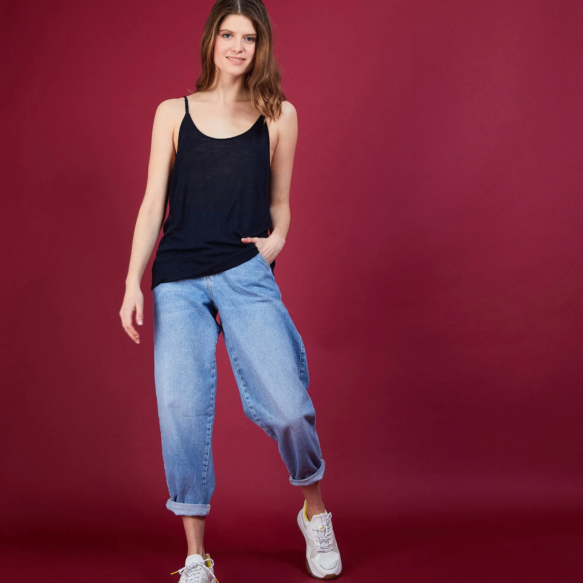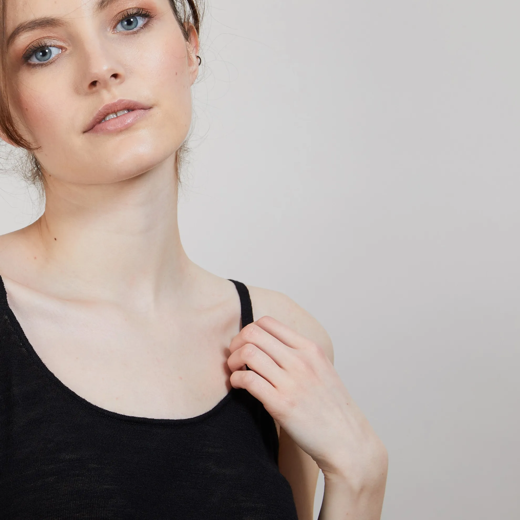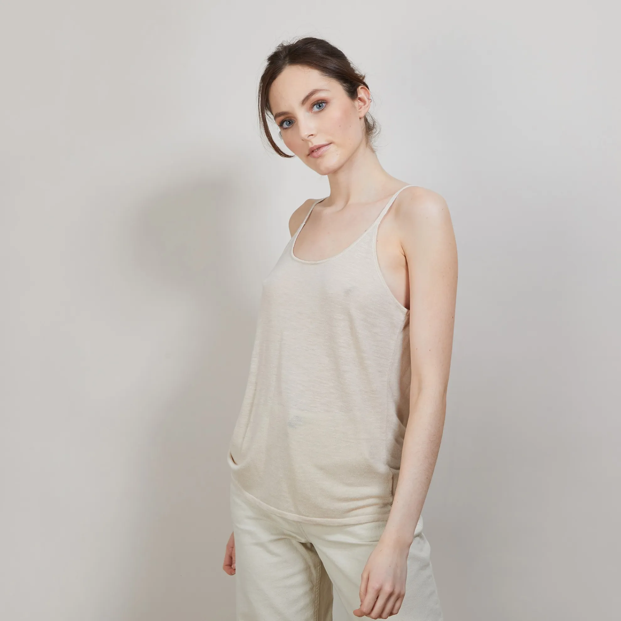 Debardeur En Lin Flamme. Son Melange De Matiere Rend La Piece Tres Legere Et Agreable A Porter Avec Ses Bretelles Fines Lors Des Fortes Chaleurs Estivales. Vous Pouvez Aussi Le Porter En Tant Que Sous Pull Pour Les Autres Saisons.