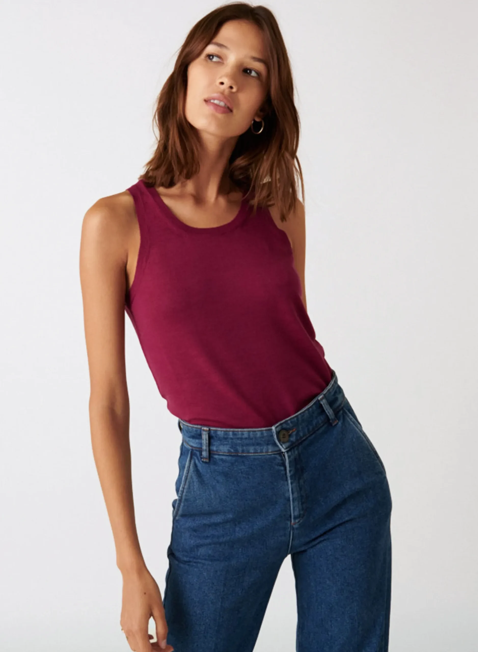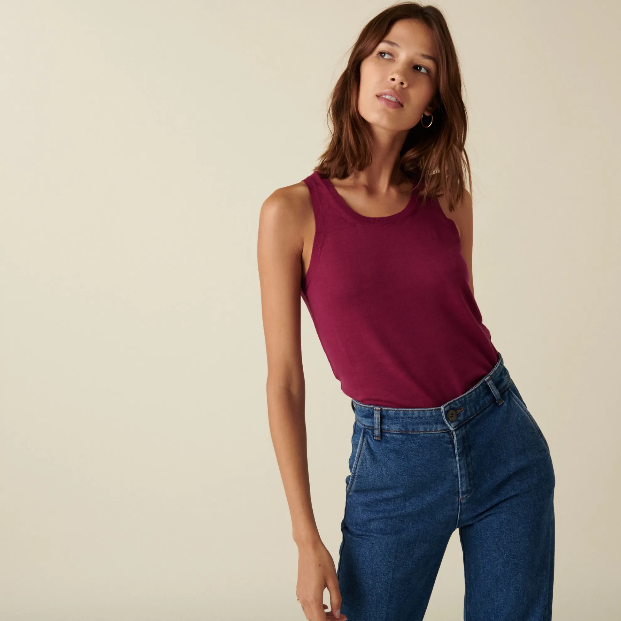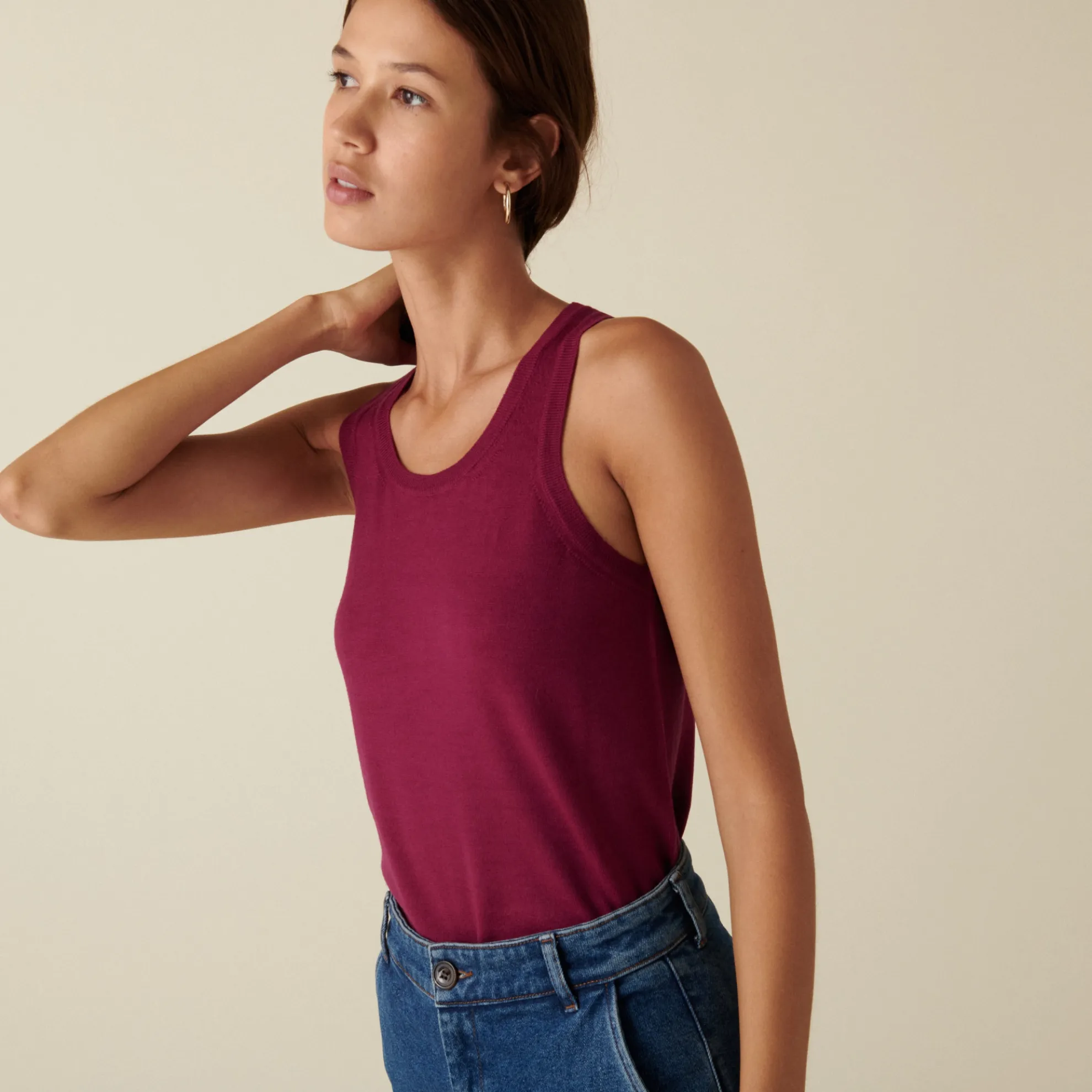 Debardeur Col Rond Tricote En Laine Merinos, Point Jersey Au Portugal. Coupe Droite Et Encolure Ronde. Finitions Bords Cotes.