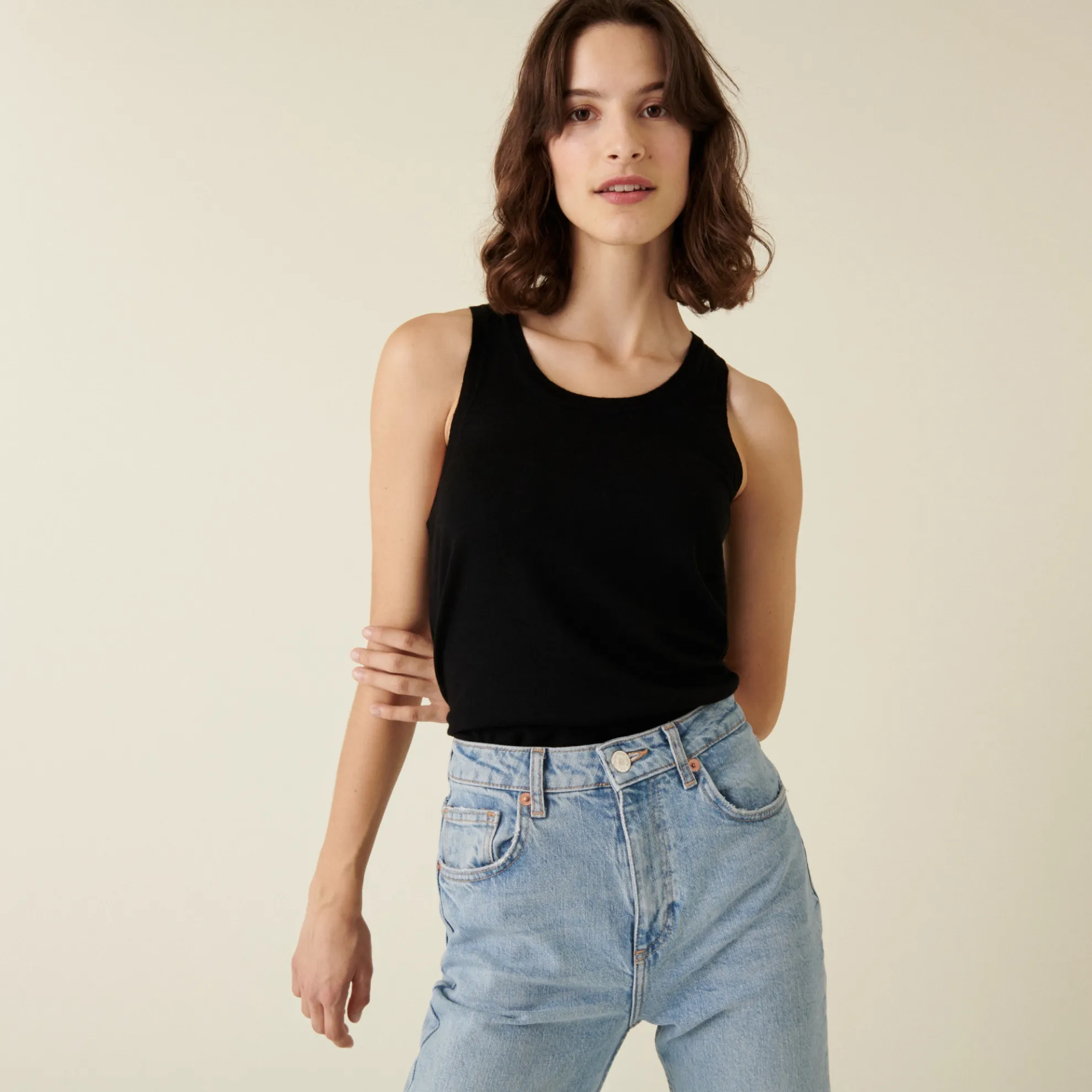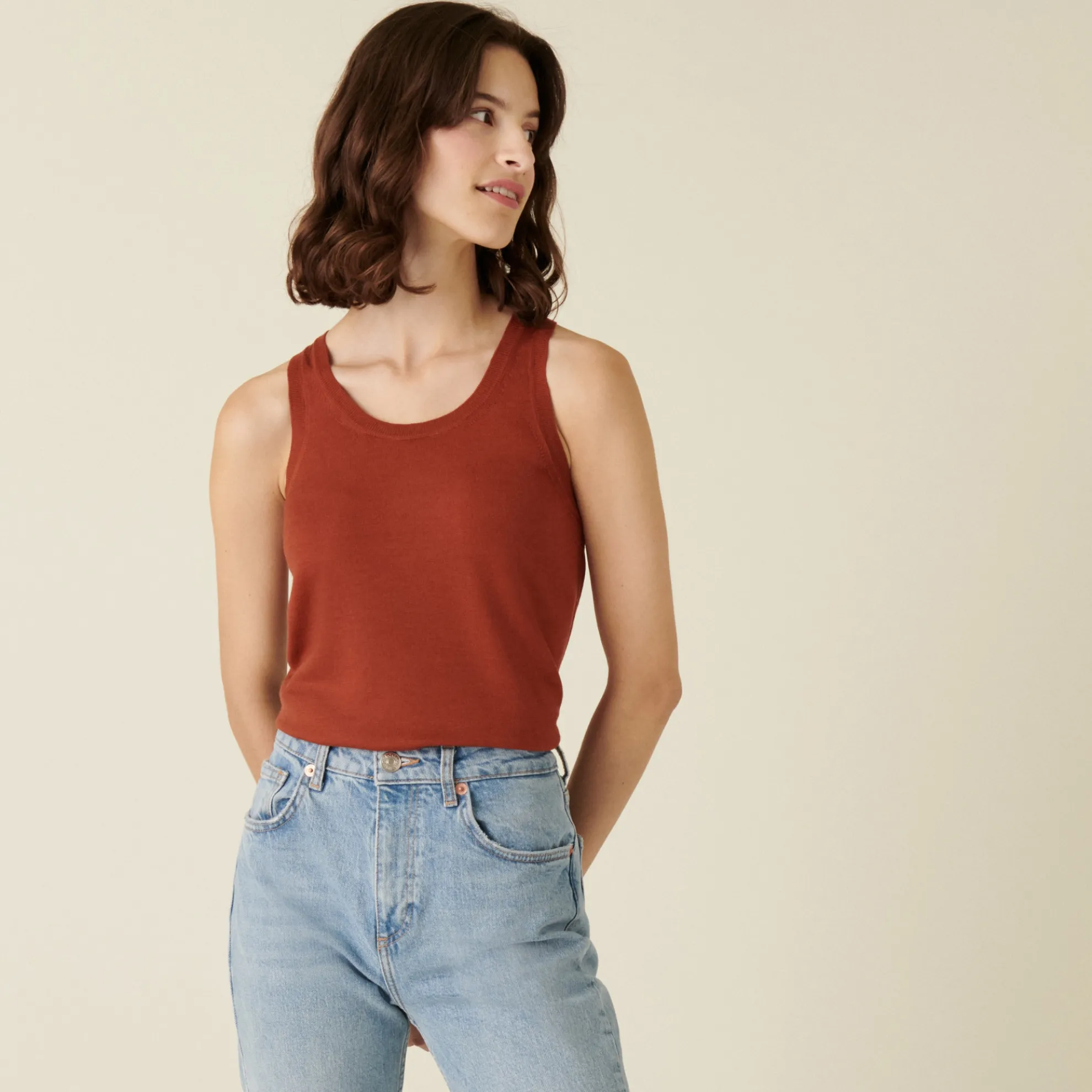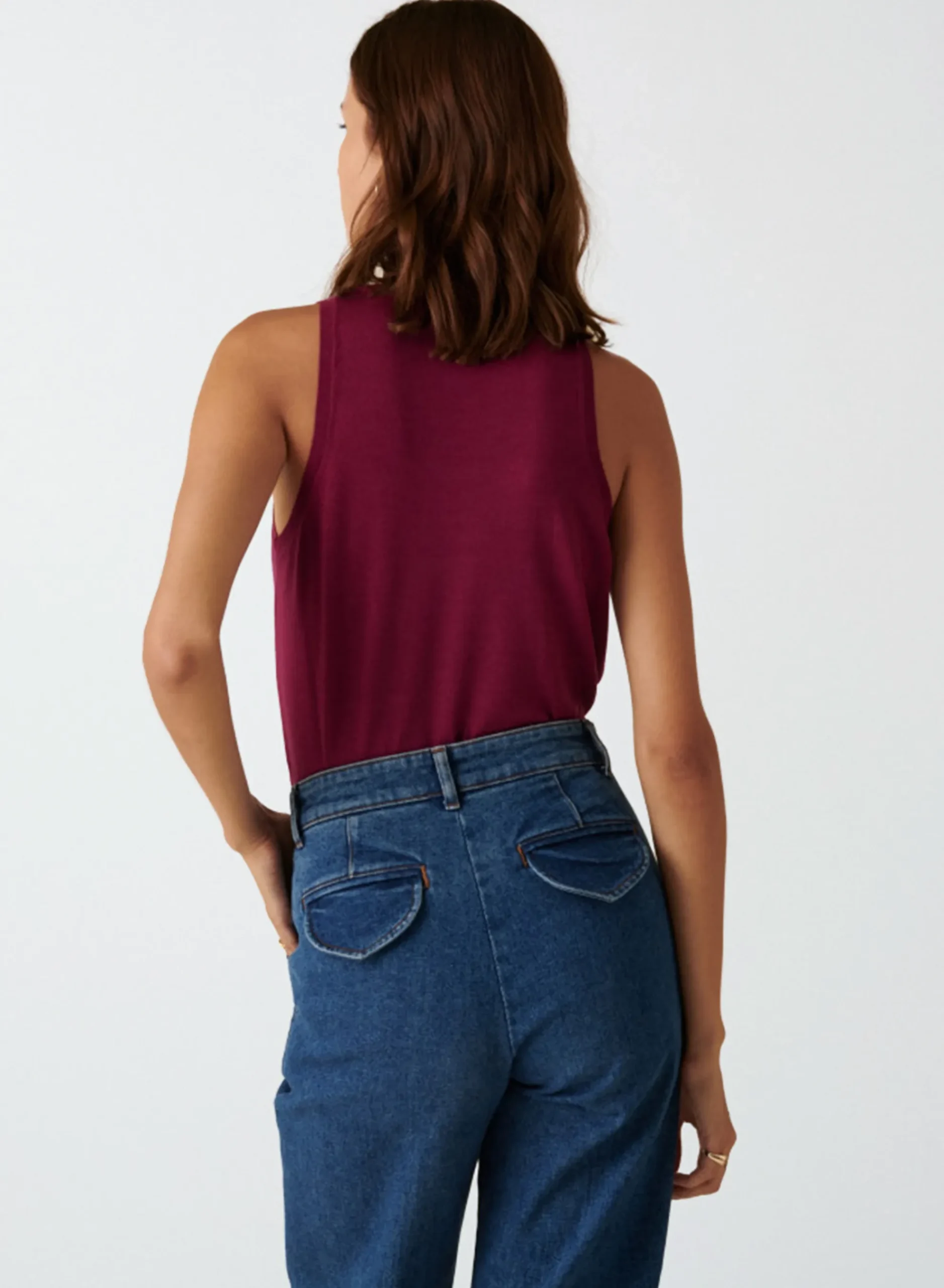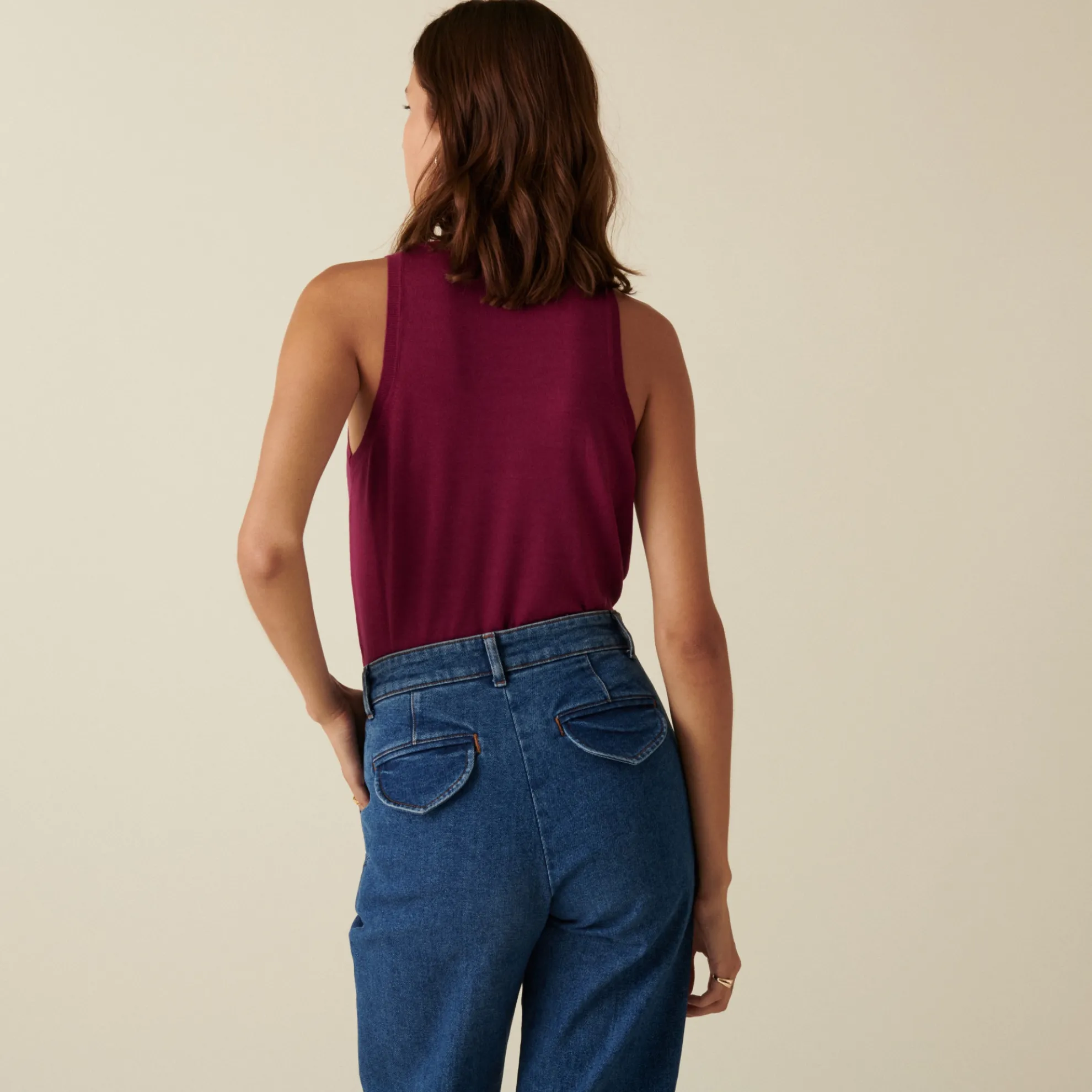 Debardeur Col Rond Tricote En Laine Merinos, Point Jersey Au Portugal. Coupe Droite Et Encolure Ronde. Finitions Bords Cotes.