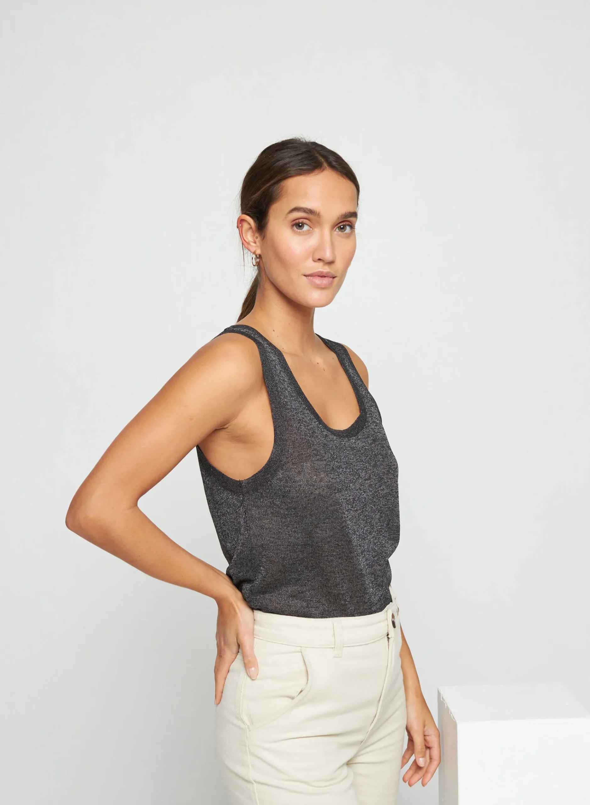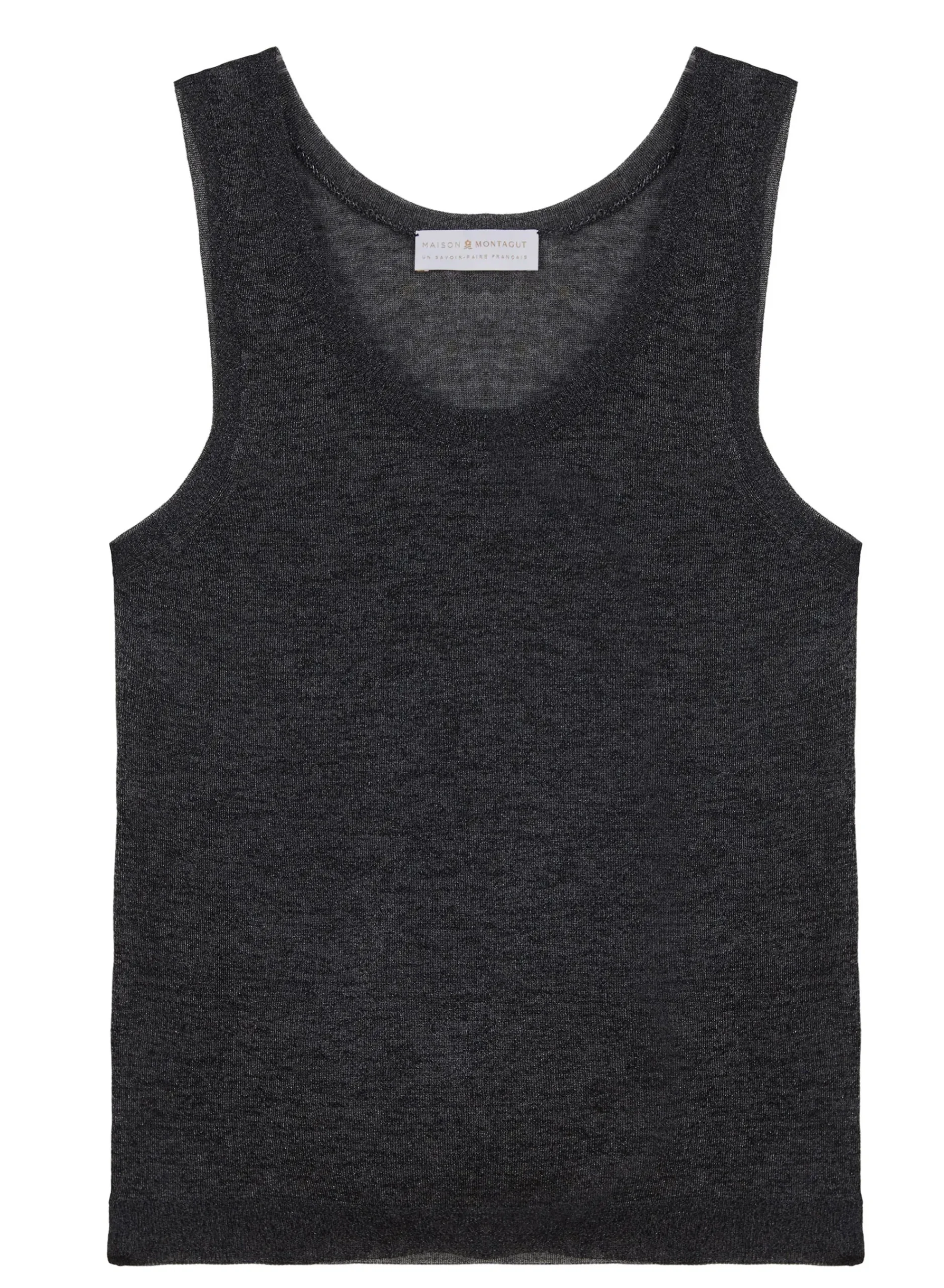 Debardeur A Encolure Ronde Large Bretelles Tricote En Point Jersey Dans Nos Ateliers. Notre Modele Stella Possede Une Matiere Legerement Transparente Qui Contient Du Lurex, Effet Irrise. Pour Un Look Chic, Nous Recommandons De L’Associer Au Chemisier A Point Jersey Stacy.