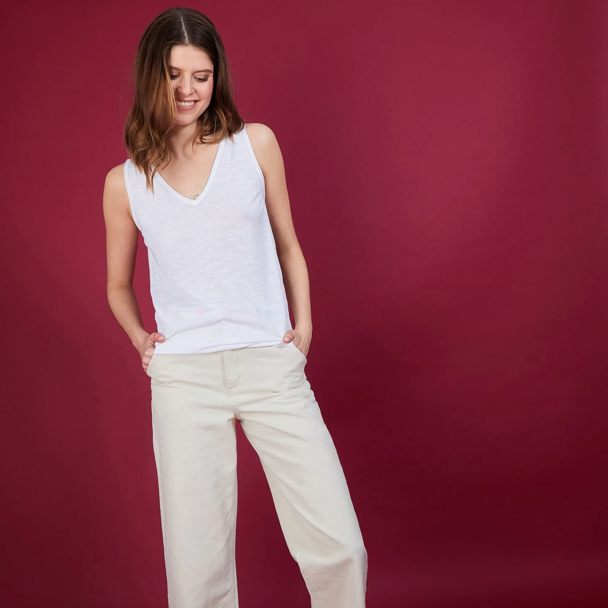 Debardeur Femme En Lin Flamme. A La Fois Tres Doux Et Leger, Il Peut Etre Porte Pour Les Fortes Chaleurs.