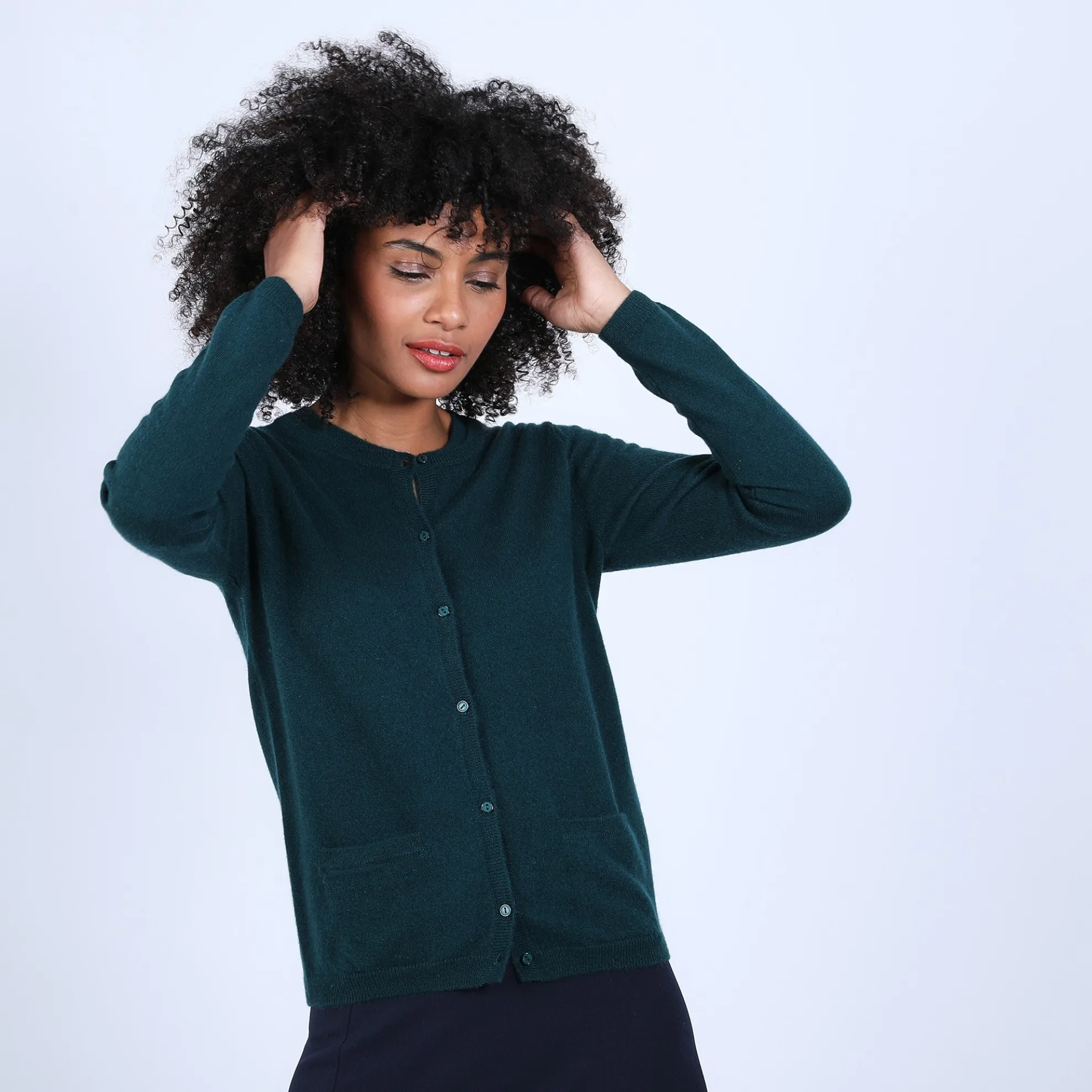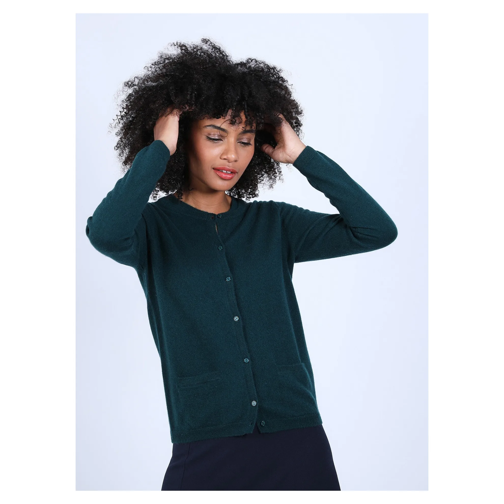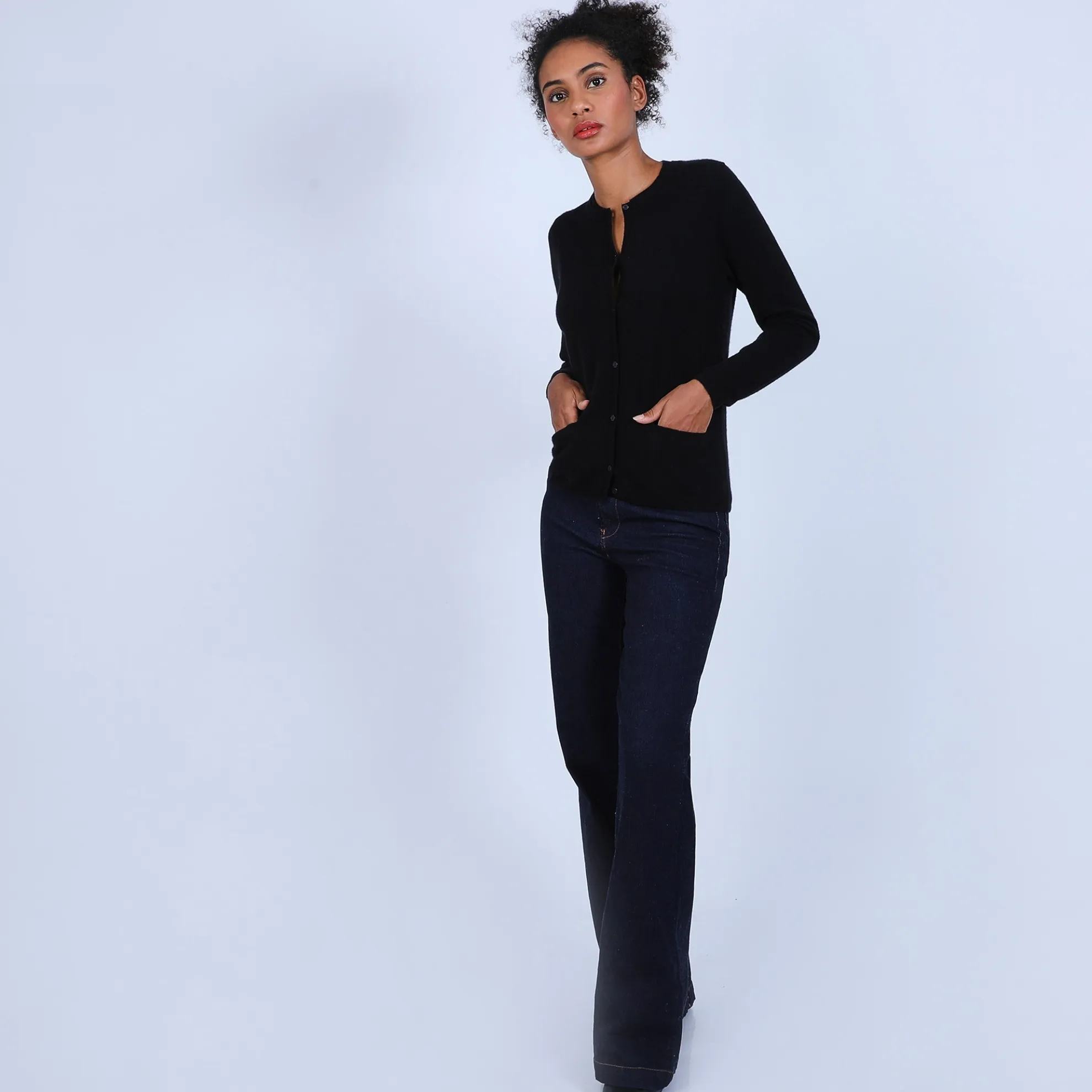 Cardigan En Cachemire Pour Femme. Petite Fantaisie Au Niveau Du Col Qui Est Double.2 Poches Plaquees Devant. Coupe Droite. Existe En Version Bicolore (Voir Le Modele Eddie).