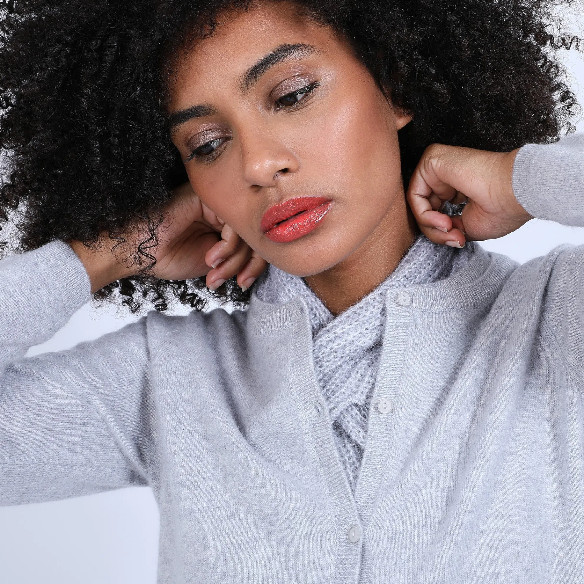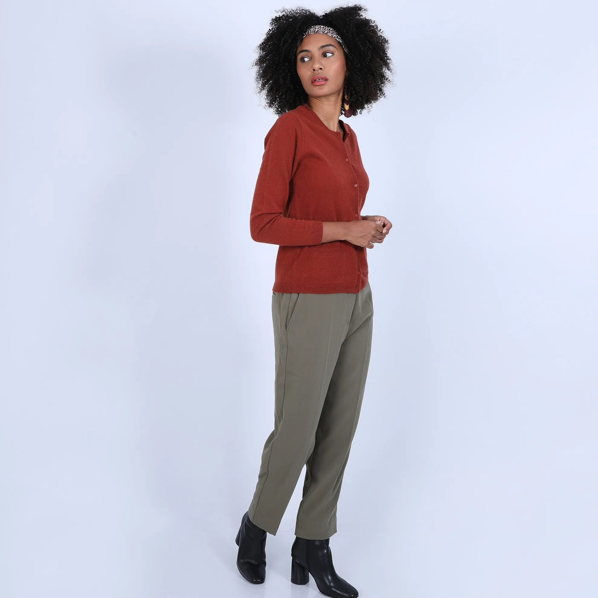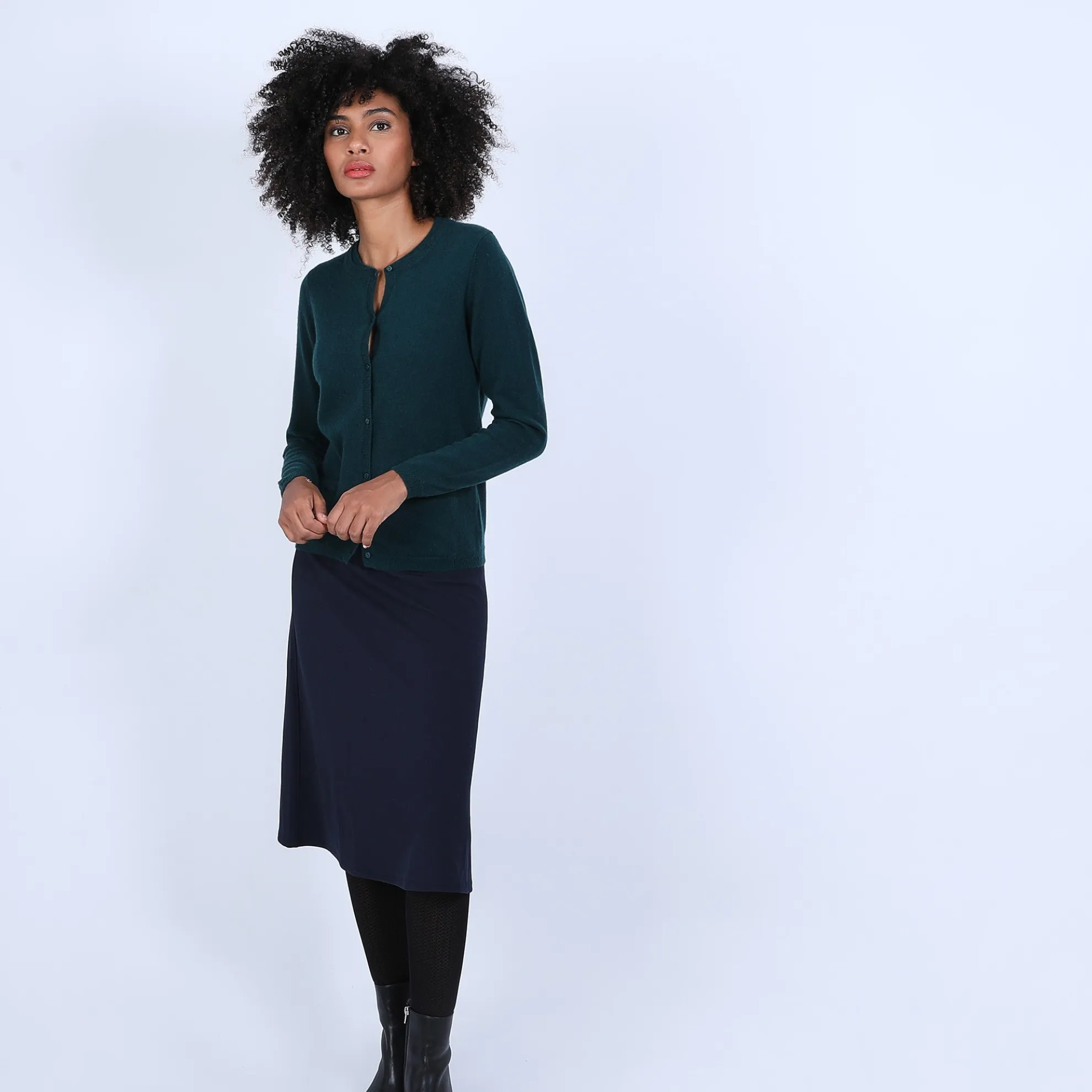 Cardigan En Cachemire Pour Femme. Petite Fantaisie Au Niveau Du Col Qui Est Double.2 Poches Plaquees Devant. Coupe Droite. Existe En Version Bicolore (Voir Le Modele Eddie).