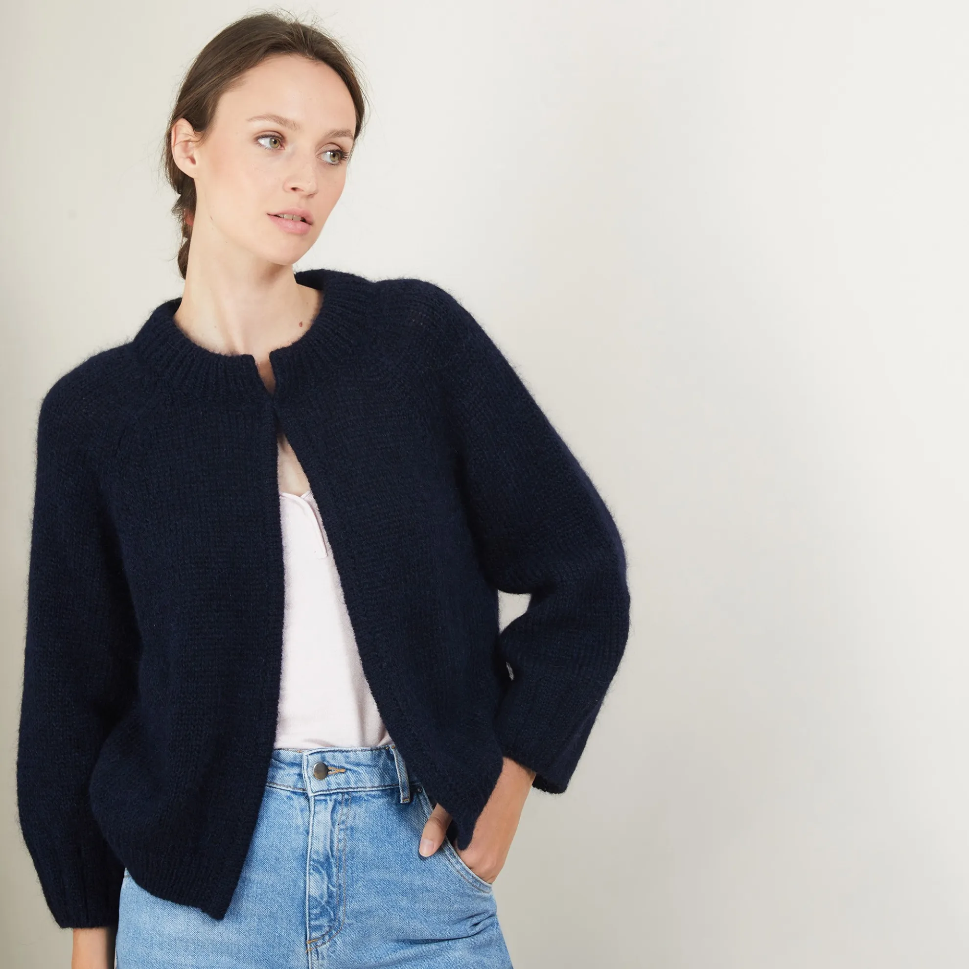 Gilet En Laine Melangee Qui Se Distingue Par Ses Jolies Finitions, Le Gilet Se Presente Avec 2 Poches Et Se Referme Par Un Bouton Au Niveau Du Col. Le Melange De Mohair, Polyamide Et De La Laine Font Du Gilet Une Piece Tres Douce Et Agreable A Porter.