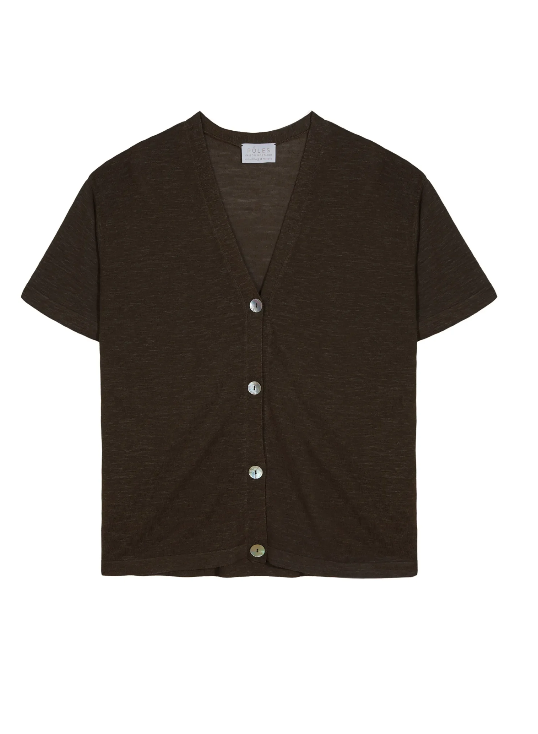 Gilet Manches Courtes Col V En Lin Flamme Tricote Dans Nos Ateliers. Pour Une Silhouette Fluide Prete A Vivre La Dolce-Vita Optez Pour Notre Gilet Ample Tanya, Sa Matiere Fine Est Ideale A Porter Lors De Periodes De Fortes Chaleurs. Portez Notre Gilet Manches Courtes Ouvert Ou Ferme A L’Aide De Son Boutonnage Sur Toute Sa Longueur.