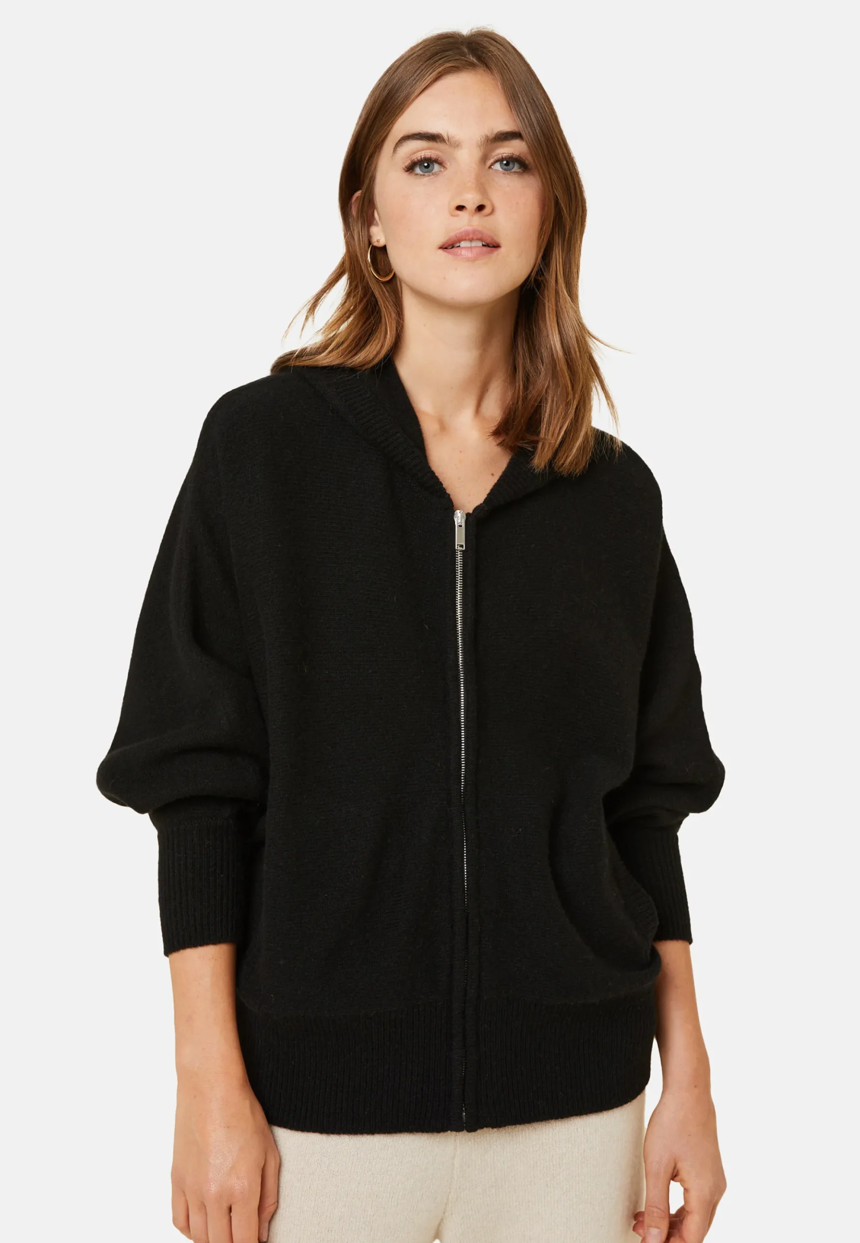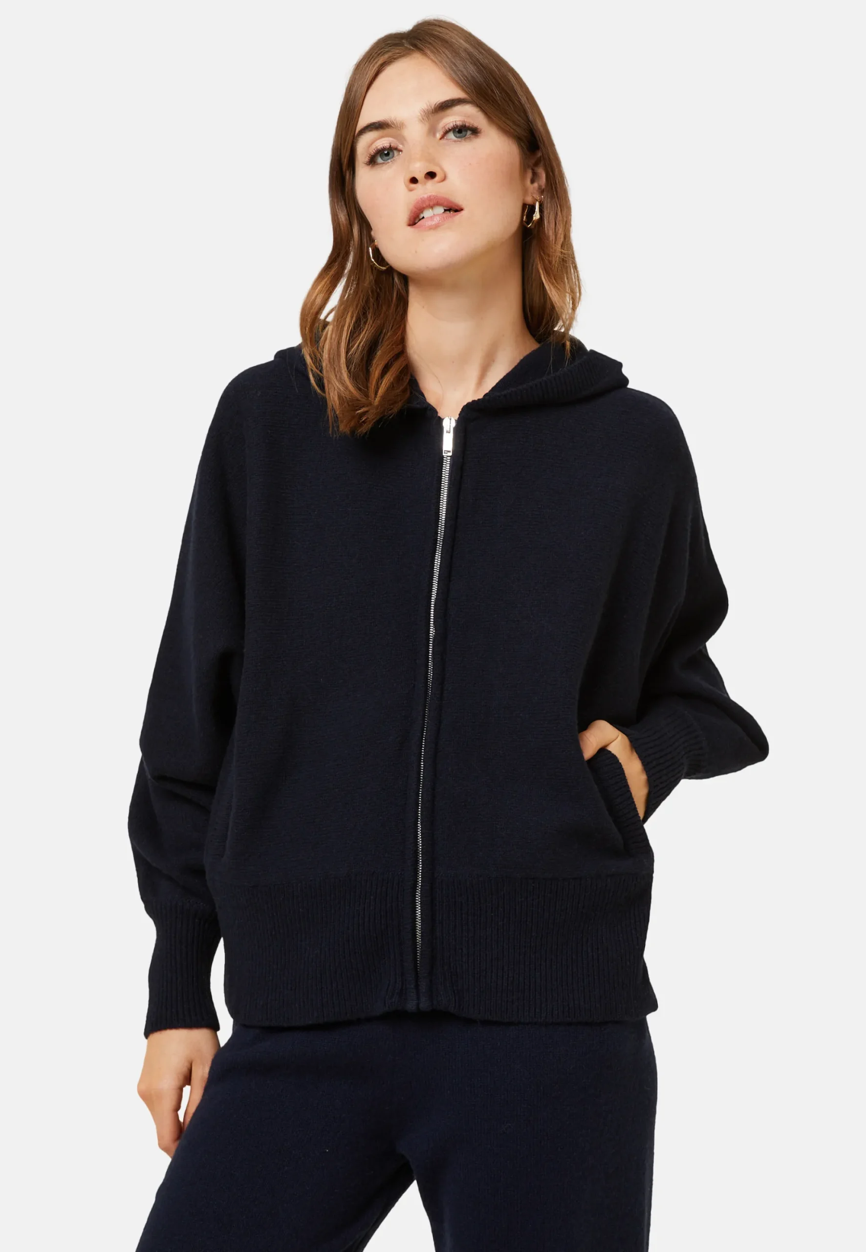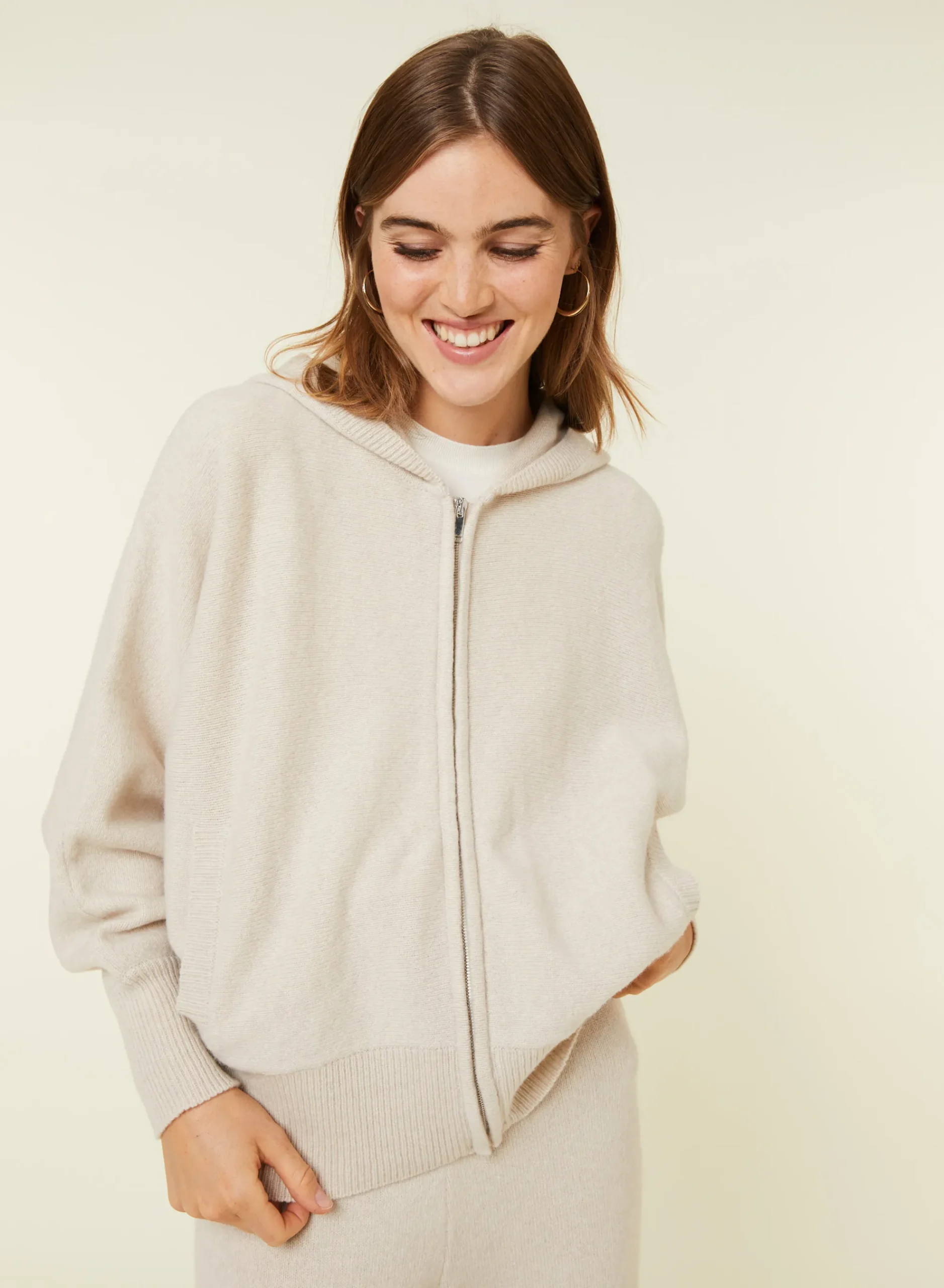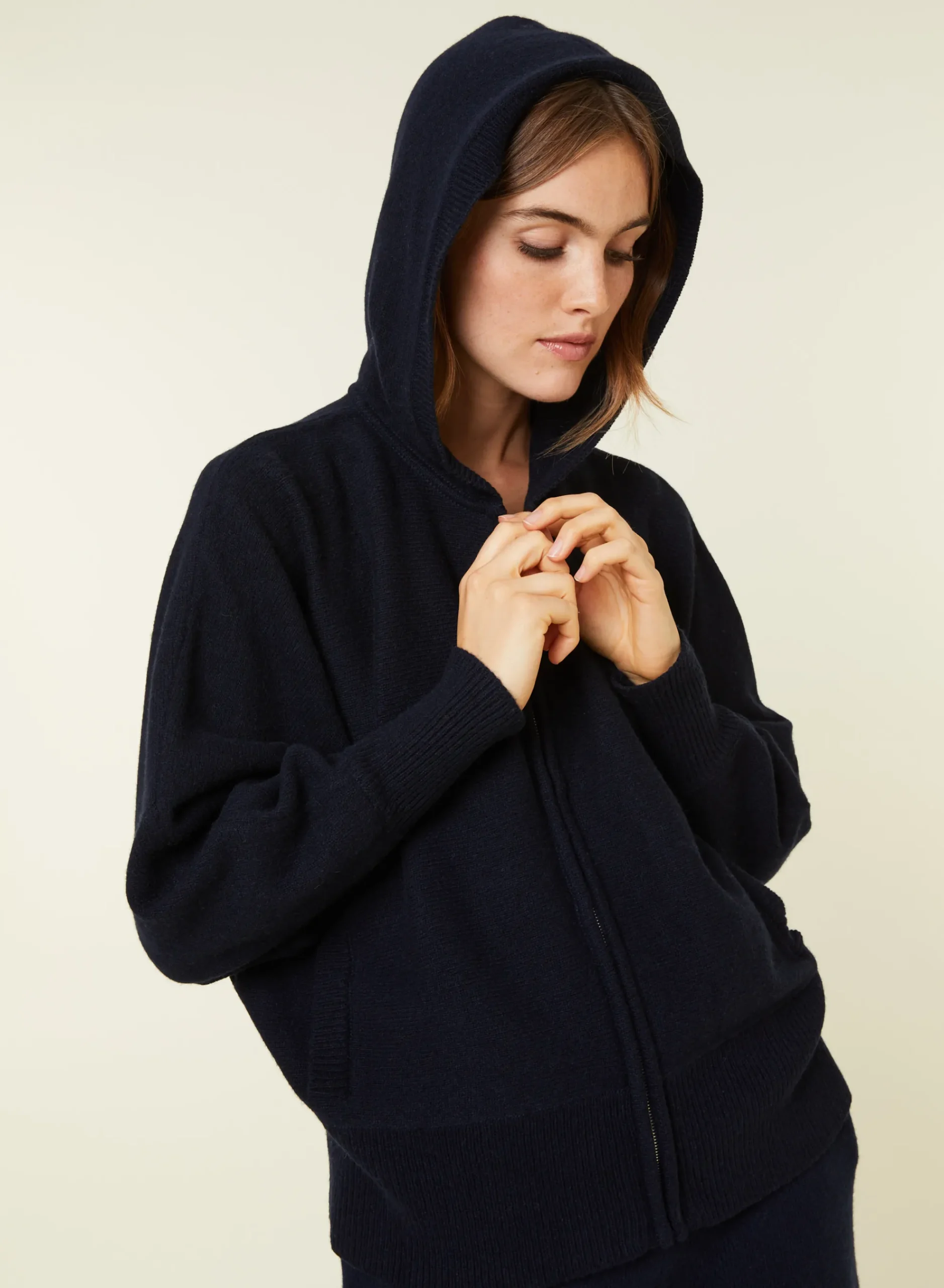Un Indemodable Pour Se Sentir A L’Aise A L’Exterieur Comme Au Sein De Sa Maison. Adoptez Une Allure Sportswear Chic Avec Ce Sweat A Capuche Zippe Manches Chauves-Souris. Tricote En Cachemire 2 Fils Point Jersey Dans Nos Ateliers, Il Possede Des Poches Et Detient Une Coupe Droite En Plus De Ses Finitions Bords-Cotes. Vous Pouvez Opter Pour Une Tenue Complete En L’Associant A Notre Jogging Anka. Pour Une Coupe Classique Choisissez Notre Modele Alfred. Nous Vous Conseillons De Choisir Votre Taille Habituelle.
