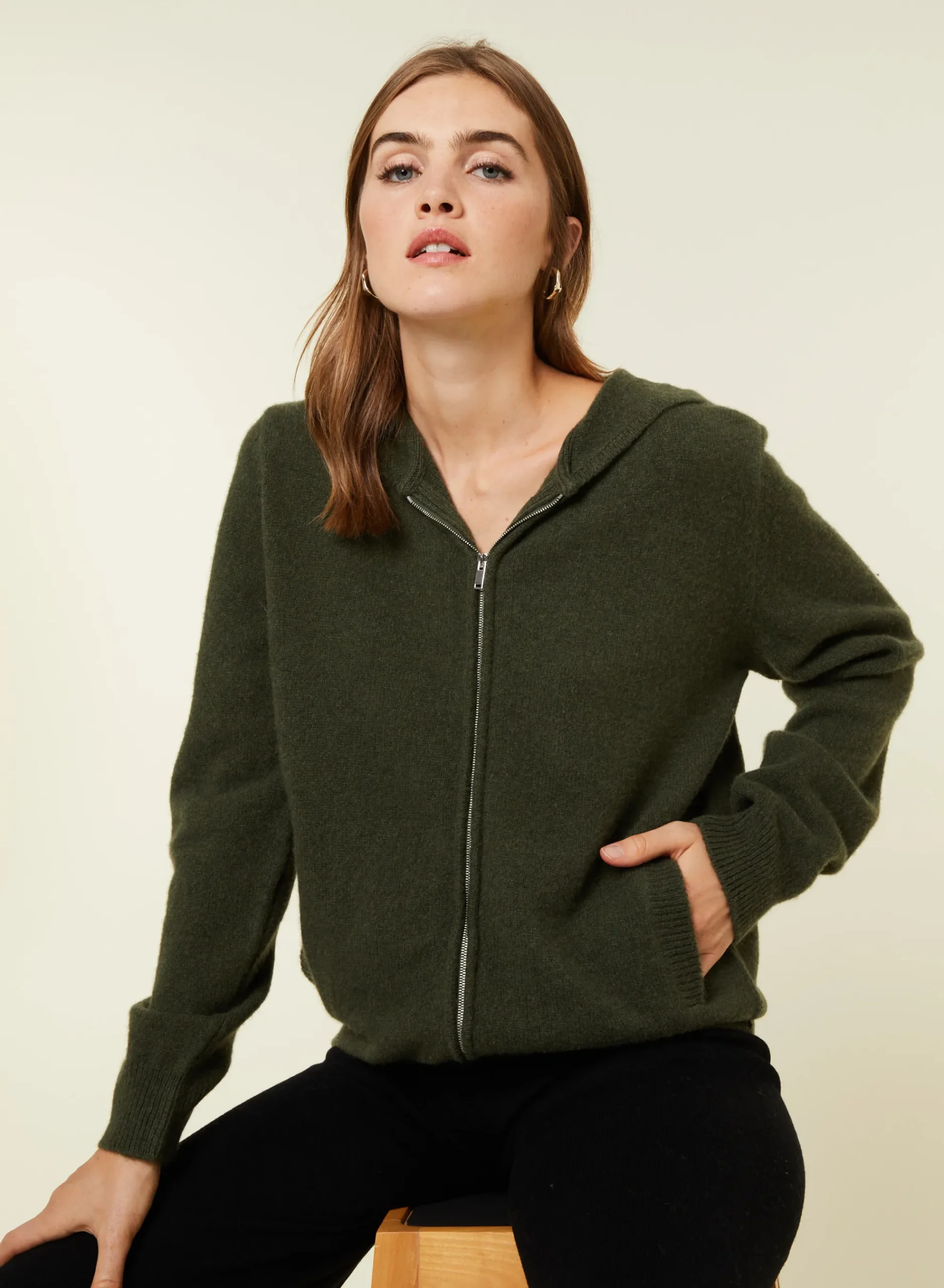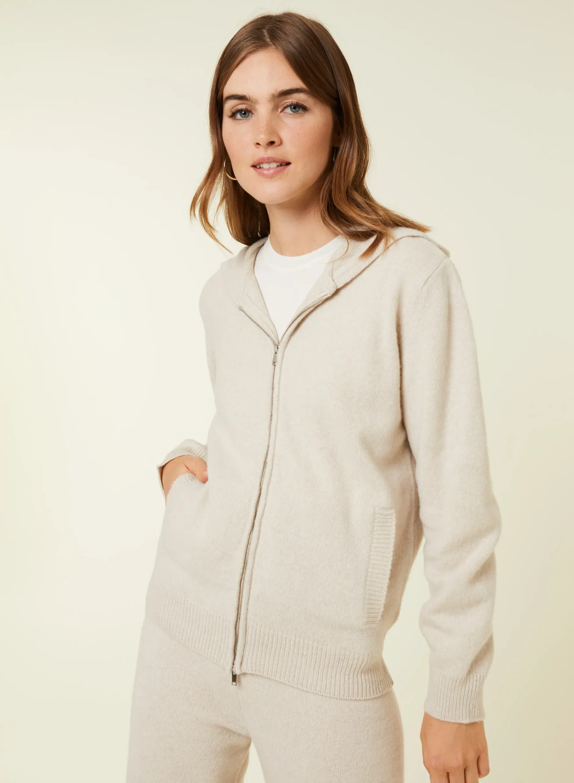 Un Indemodable Pour Se Sentir A L’Aise A L’Exterieur Comme Au Sein De Sa Maison. Adoptez Une Allure Sportswear Chic Avec Ce Sweat A Capuche Zippe. Tricote En Cachemire 2 Fils Point Jersey Dans Nos Ateliers, Il Possede Des Poches Et Detient Une Coupe Droite En Plus De Ses Finitions Bords-Cotes. Vous Pouvez Opter Pour Une Tenue Complete En L’Associant A Notre Jogging Anka. Nous Vous Conseillons De Choisir Votre Taille Habituelle.