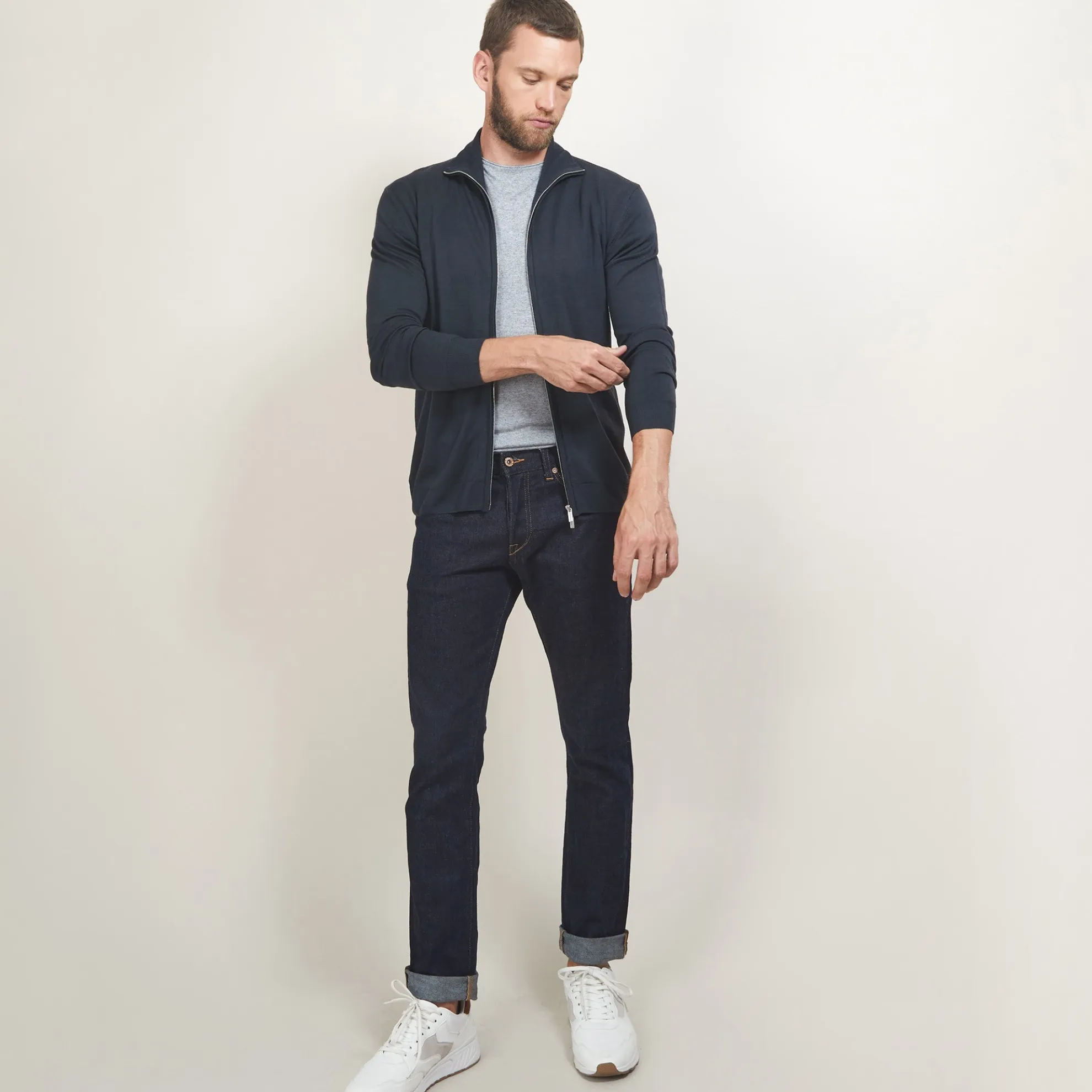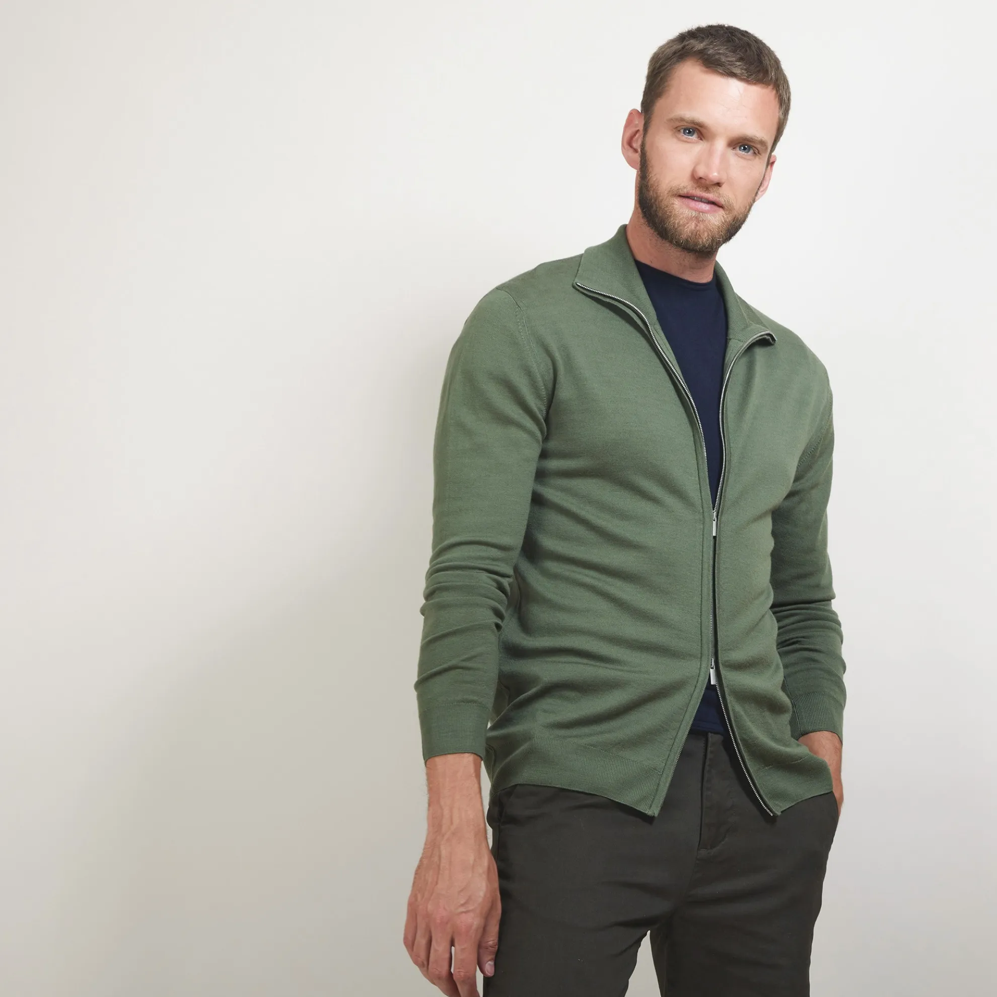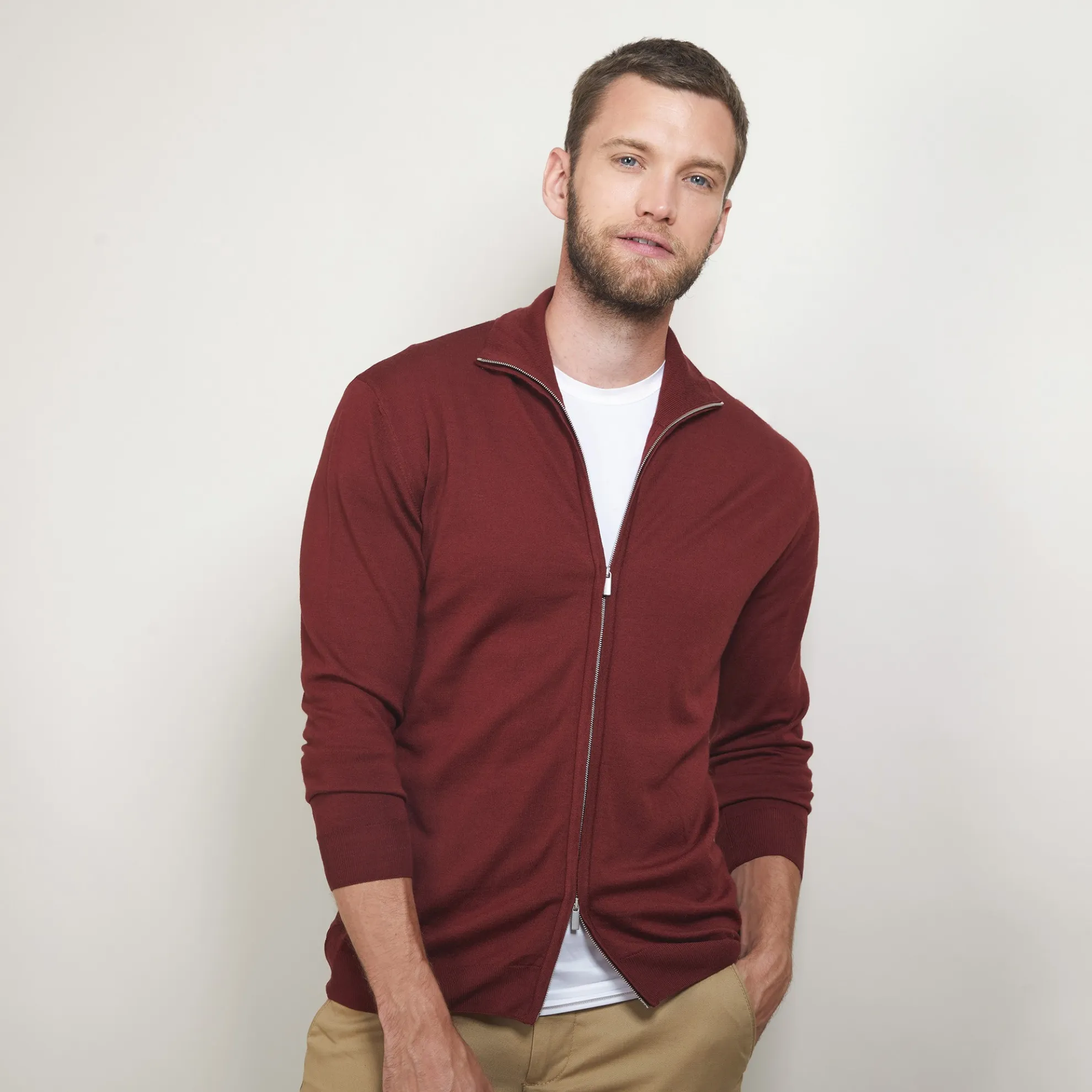 Gilet Zippe Ideal A Porter Pour L’Inter-Saison. Nos Pulls En Laine Merinos Sont Tricotes Dans Une Maille Douce Et Reguliere Aux Longues Fibres Pour Assurer La Durabilite Du Pull. Ce Gilet Col Montant Decline En Plusieurs Coloris Possede Un Zip A Double Tirette.