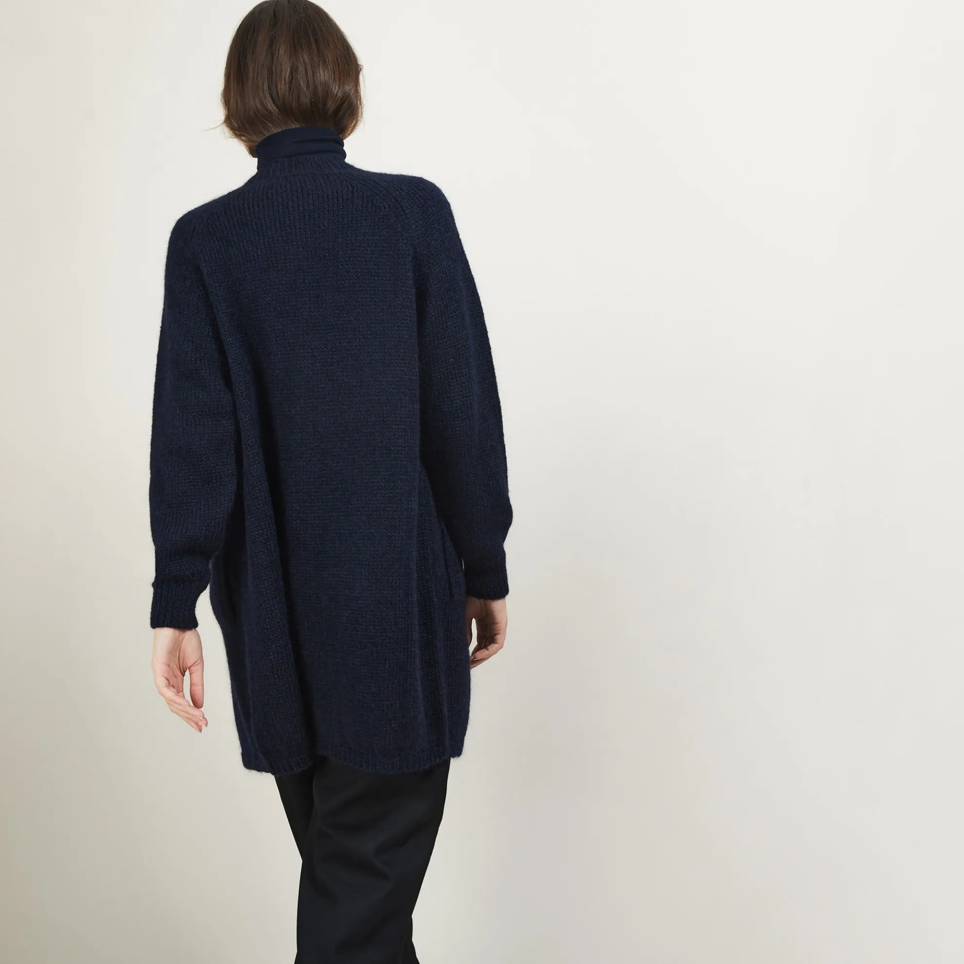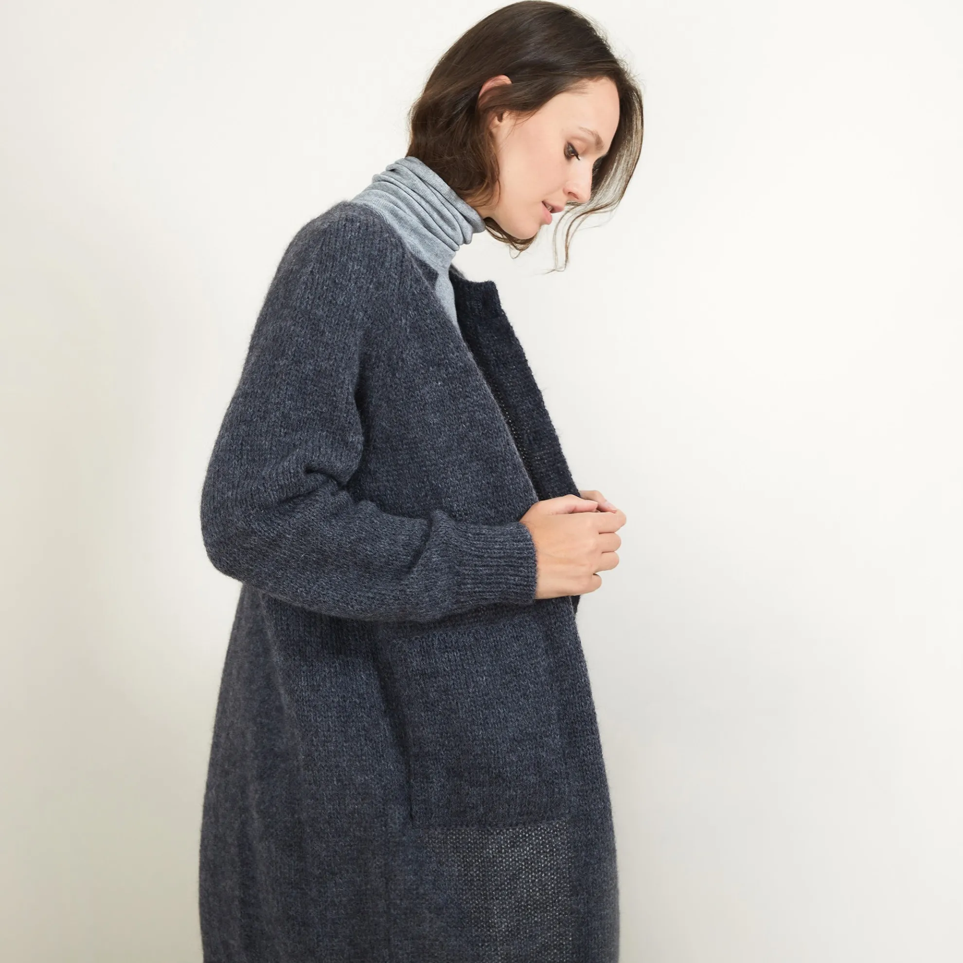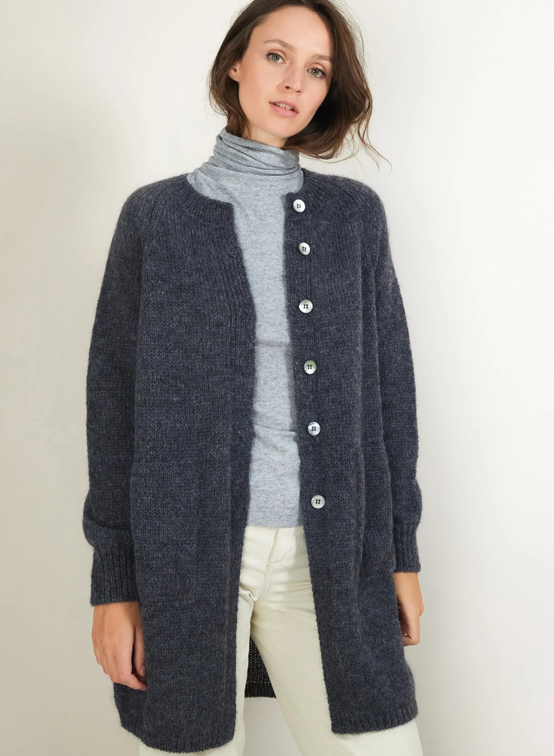 Long Gilet En Laines Melangees Se Presentant Avec 2 Poches A Ouverture Laterale. Son Melange De Mohair, Polyamide Et De Laine Vous Tiendrons Bien Au Chaud Toute La Journee.