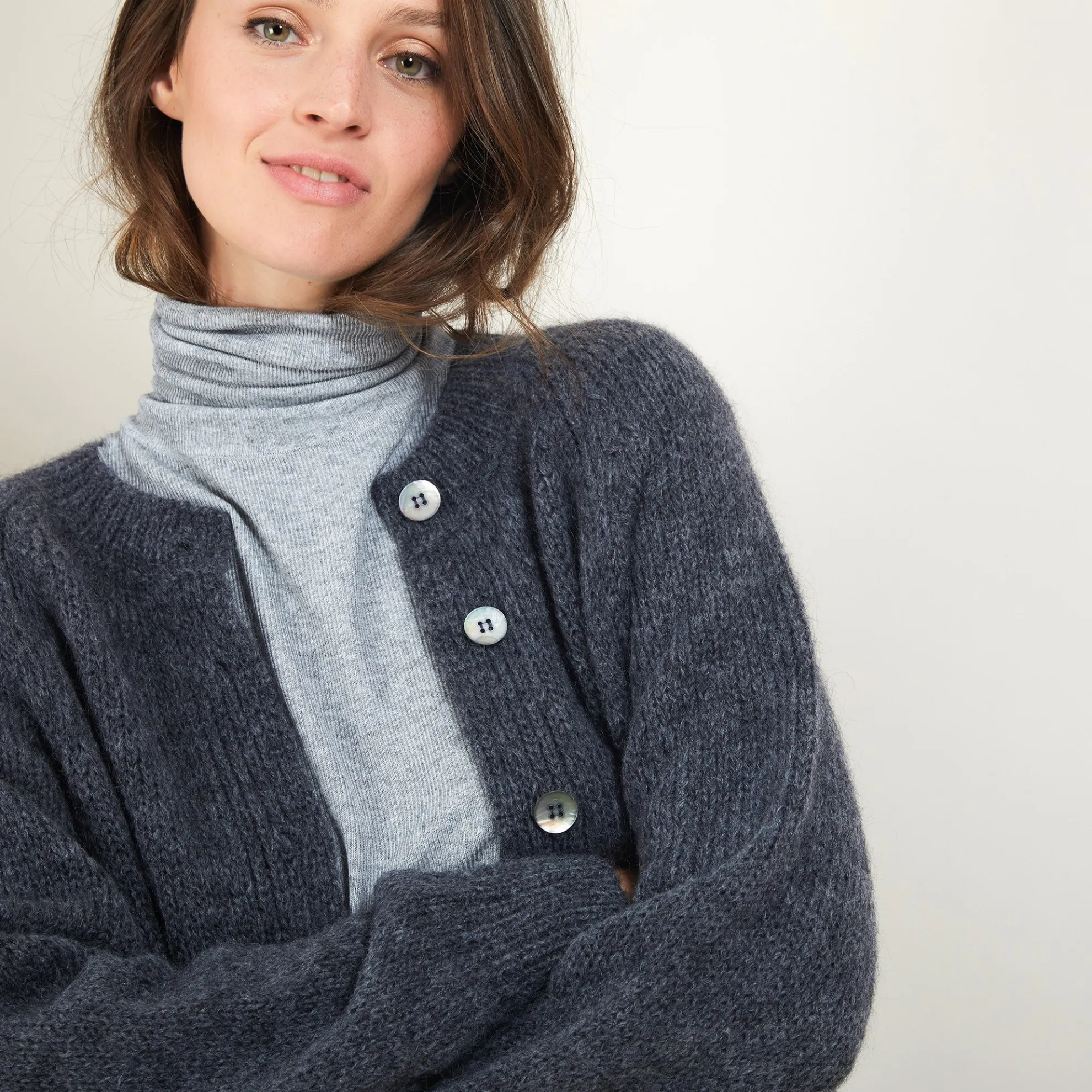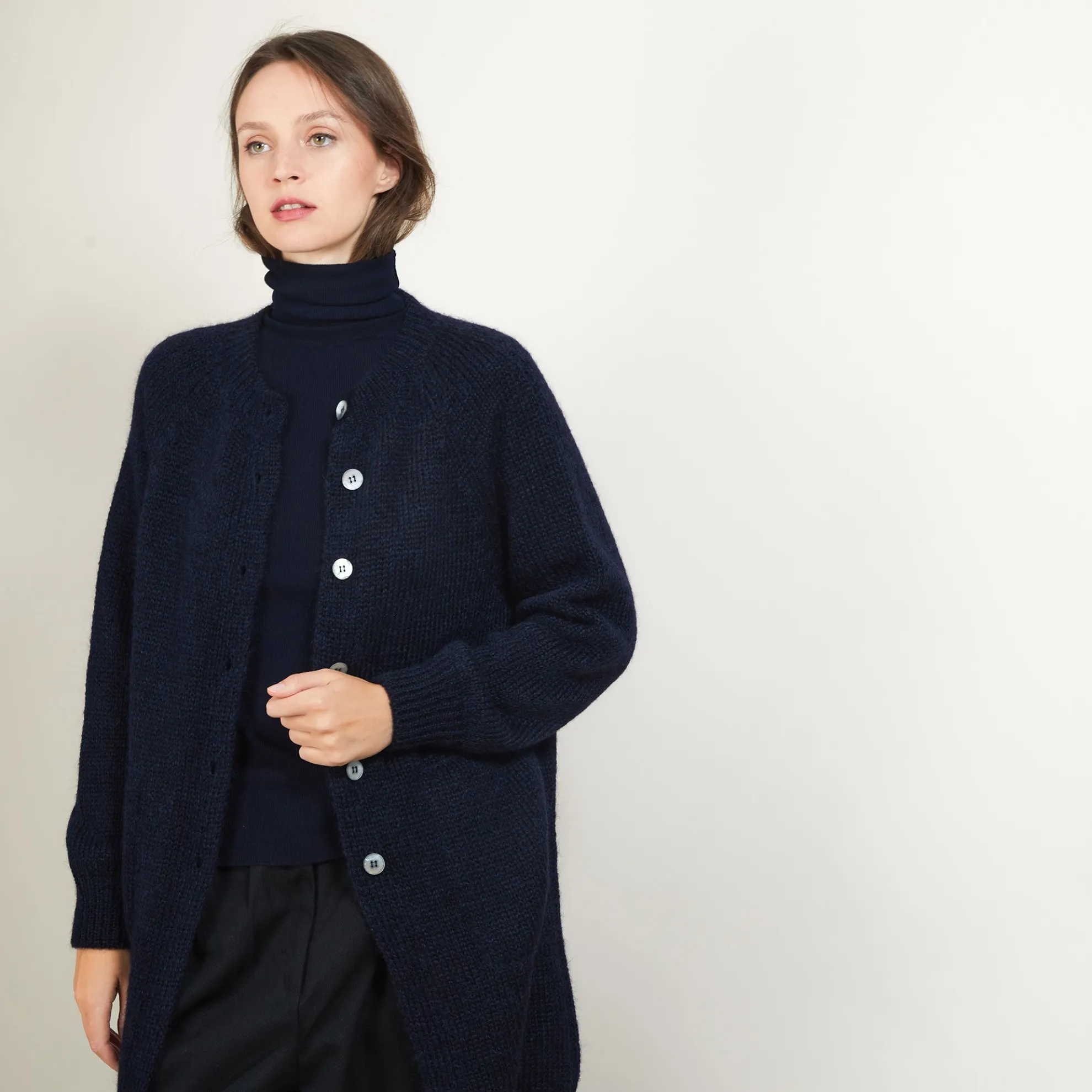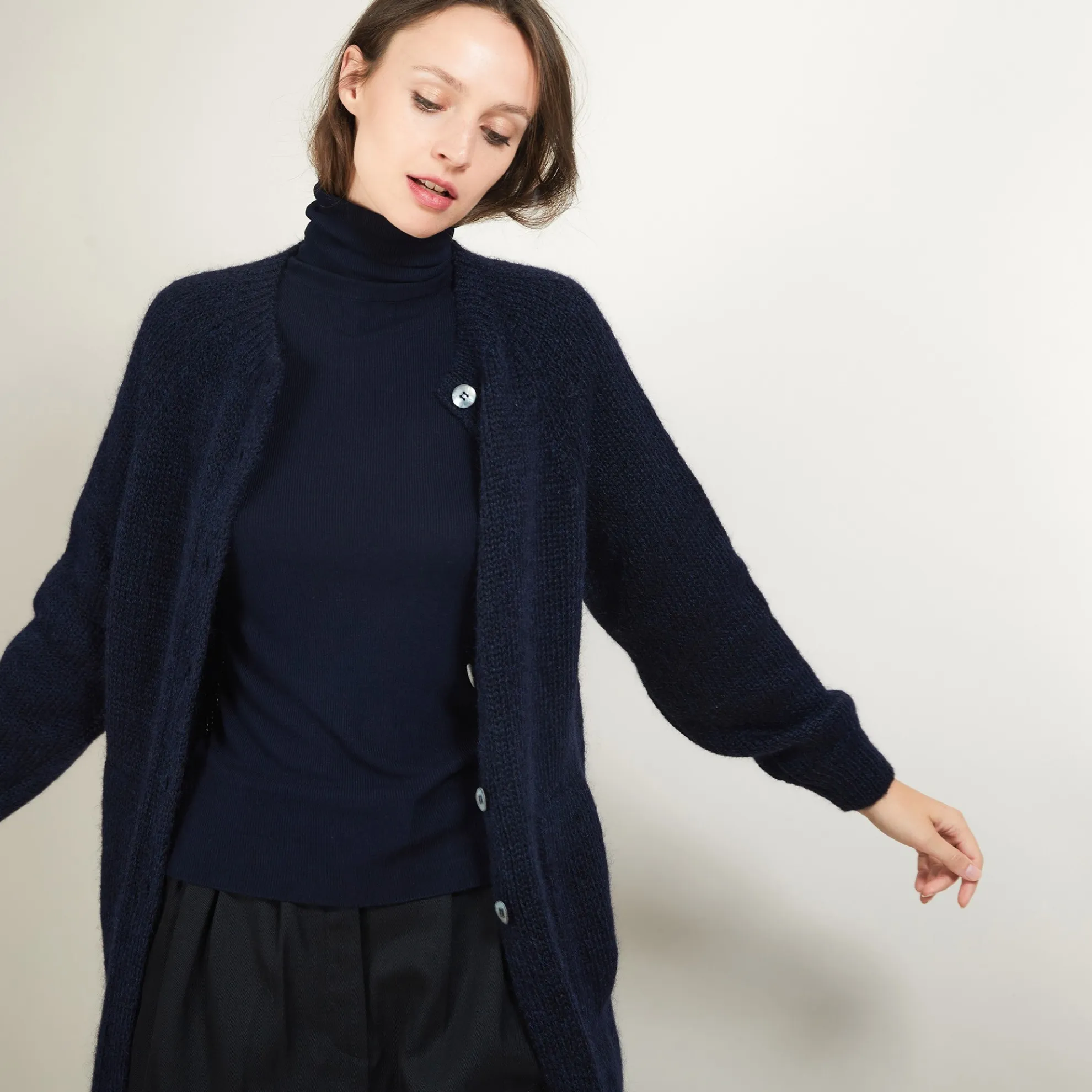 Long Gilet En Laines Melangees Se Presentant Avec 2 Poches A Ouverture Laterale. Son Melange De Mohair, Polyamide Et De Laine Vous Tiendrons Bien Au Chaud Toute La Journee.